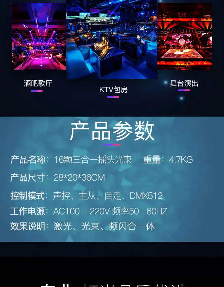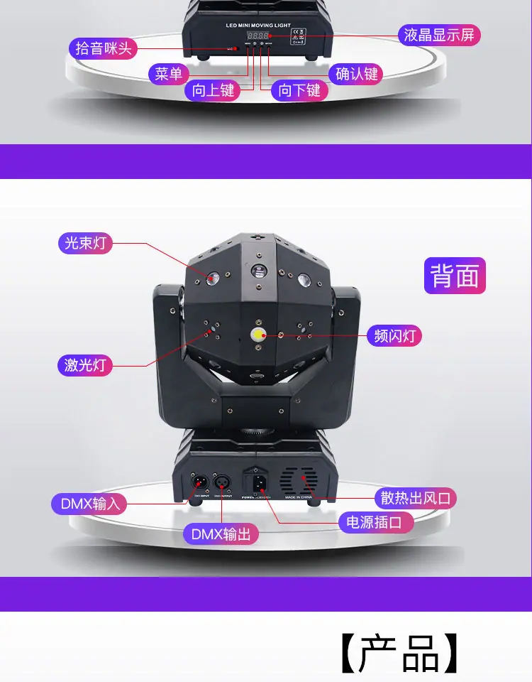 Minimum 2 units per box for wholesale (560/unit) 16 three-in-one moving head effect lights