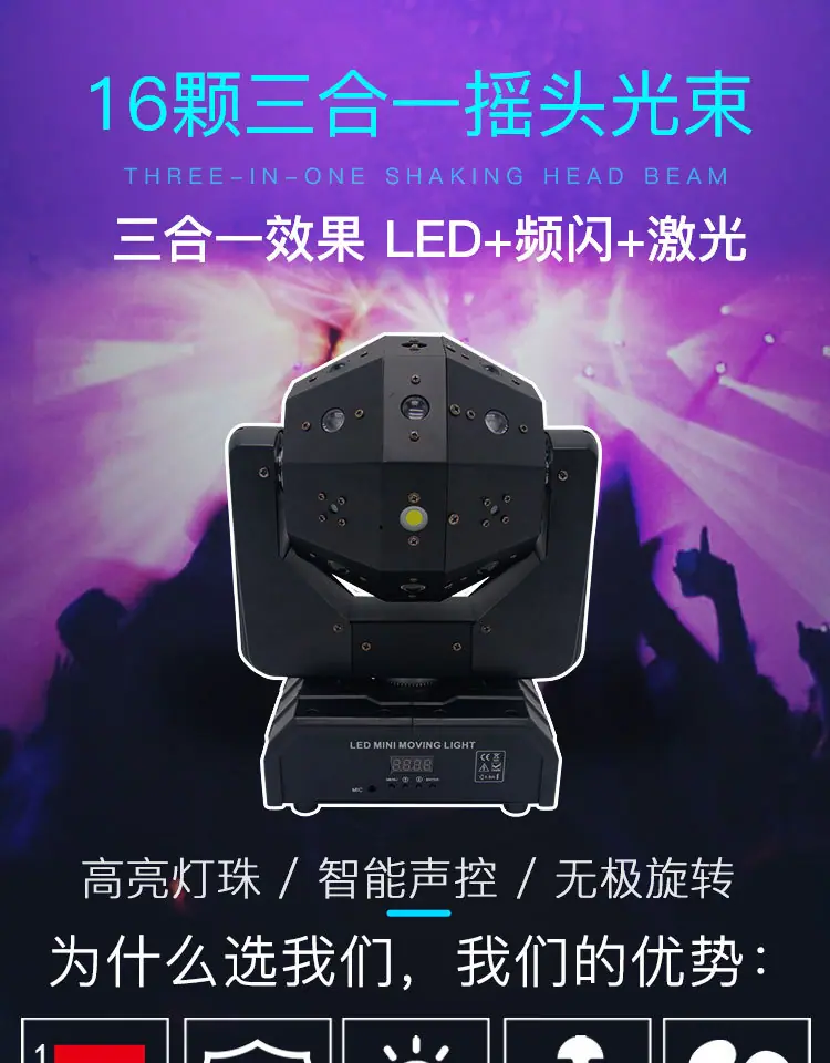 Luz LED de Cabeza Móvil 16 piezas 3 en 1 ktv Luz Estroboscópica Barra Láser Luz de Haz de Escenario Luz Giratoria de Cabina