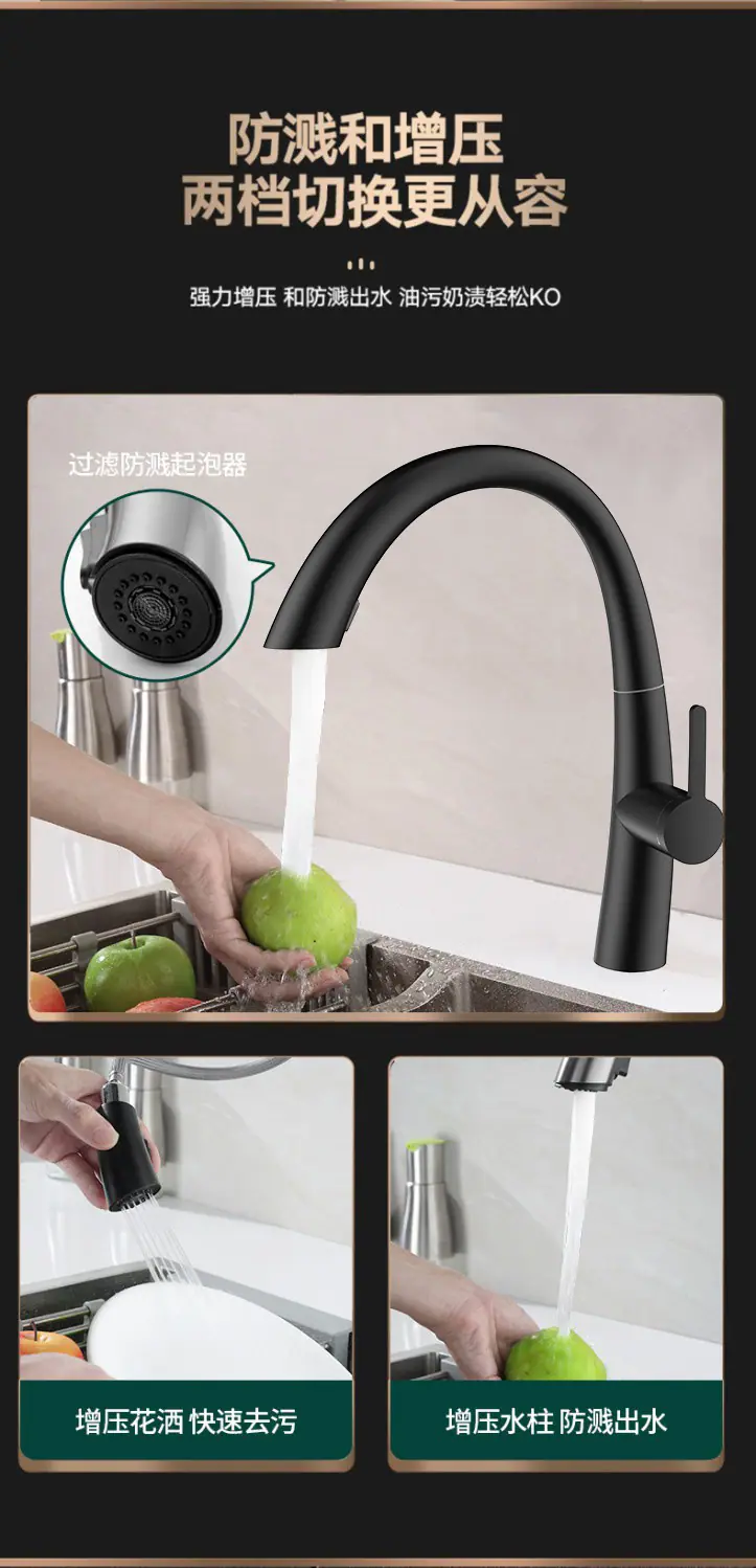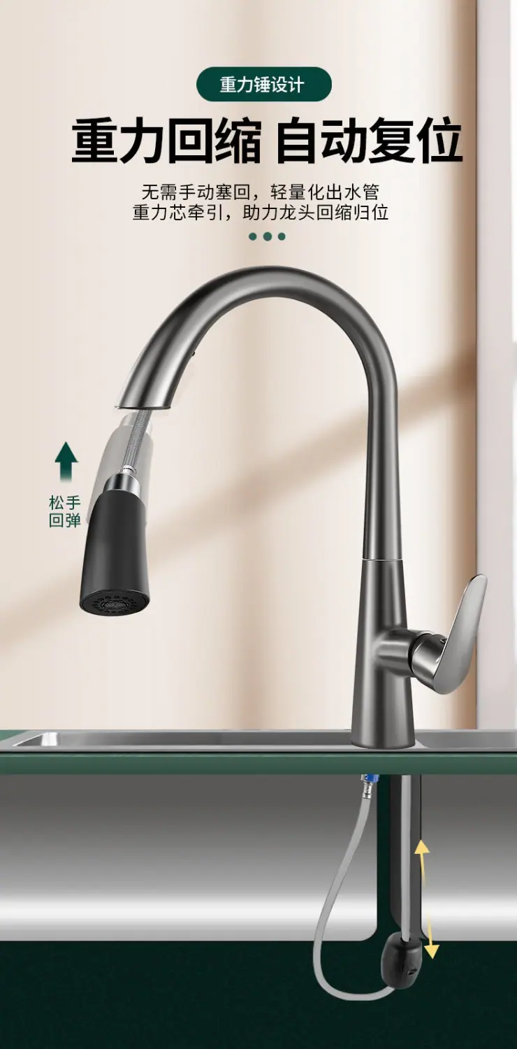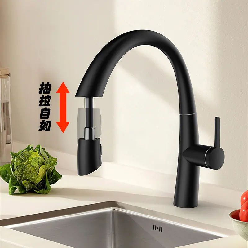 Grifo de extracción oculto de cobre puro cisne para agua fría y caliente, lavabo para verduras, fregadero para verduras, grifo giratorio universal telescópico