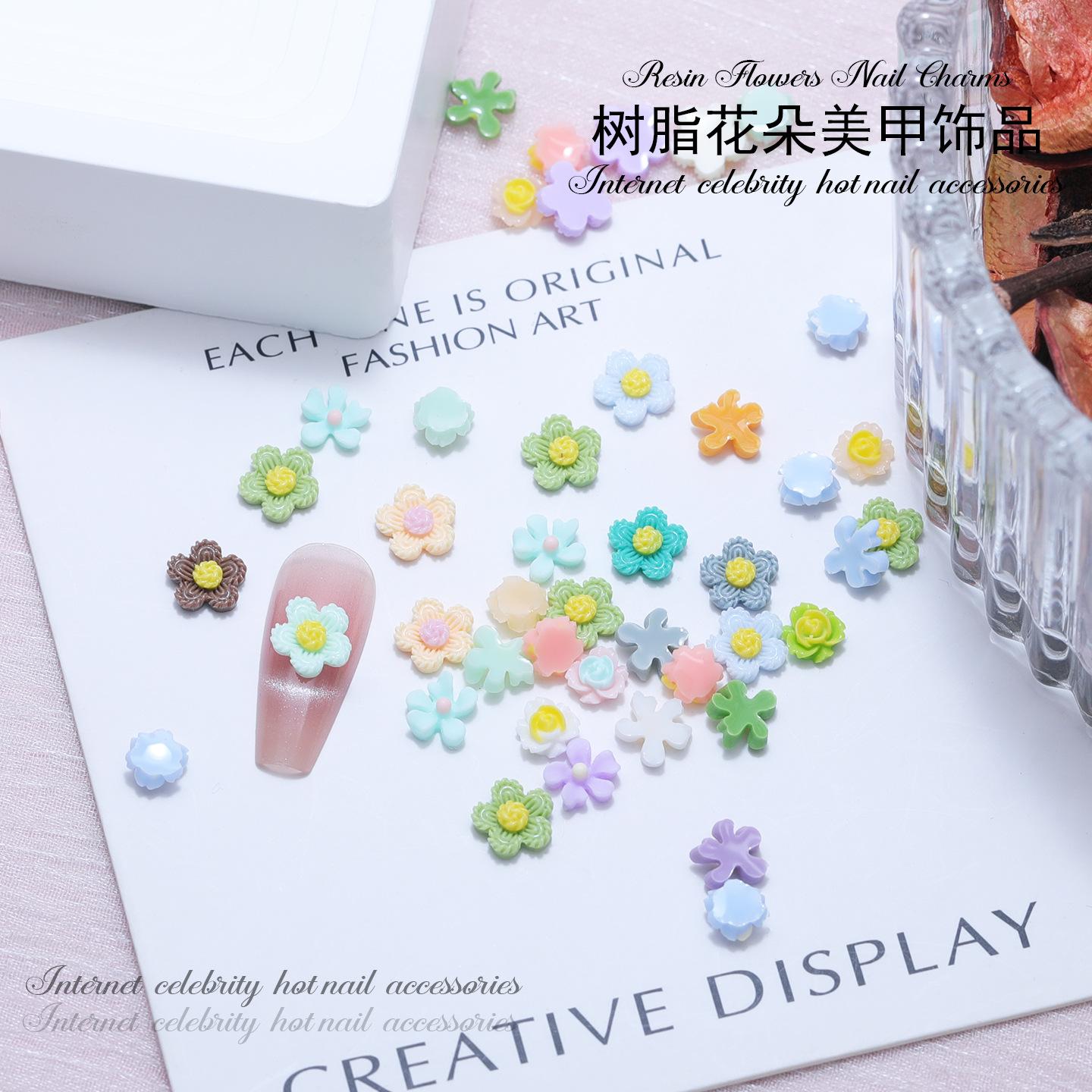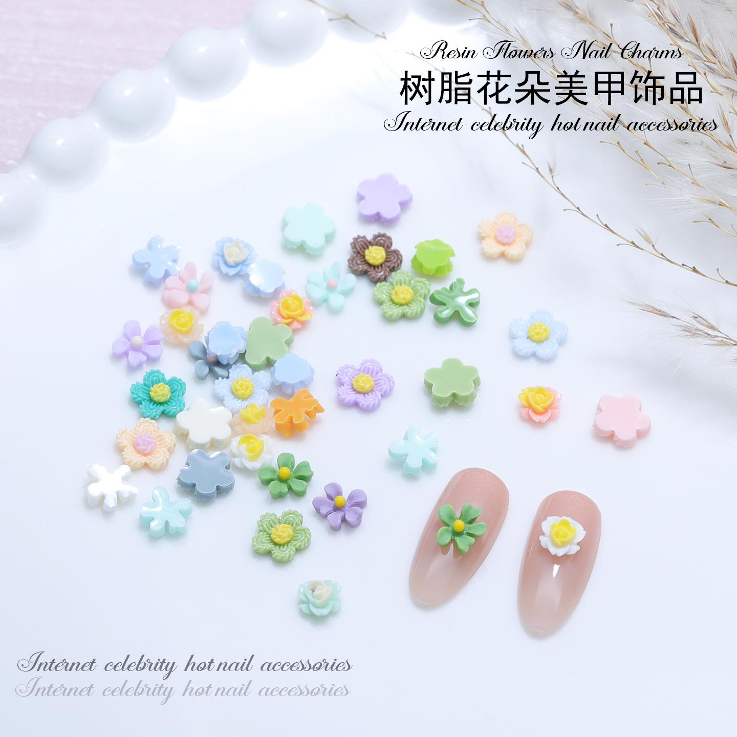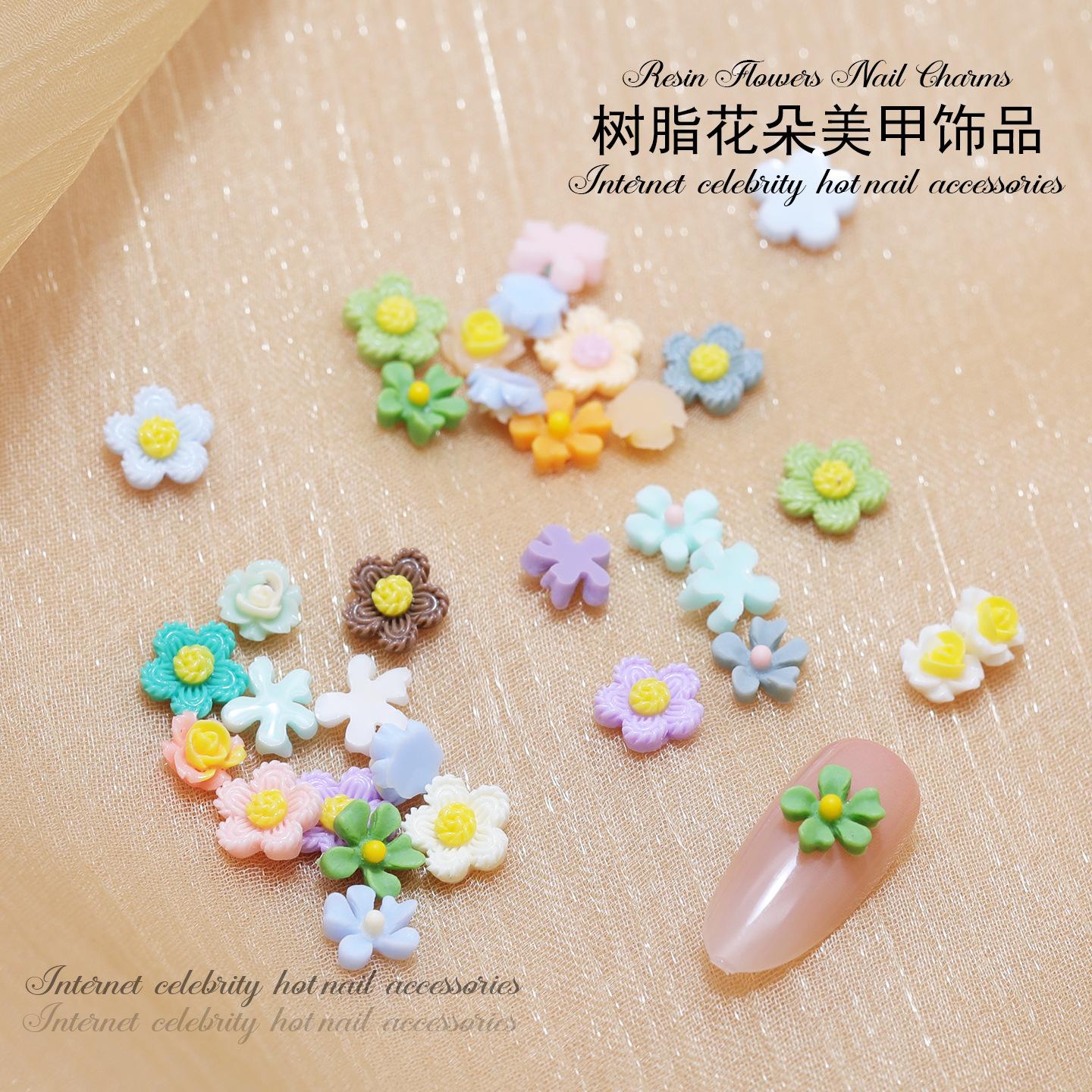 Venta al por mayor Mini Flores Dulces Decoraciones para Uñas Resina Colorida Tridimensional Flores Pequeñas DIY Accesorios para Uñas Postizas Fresco