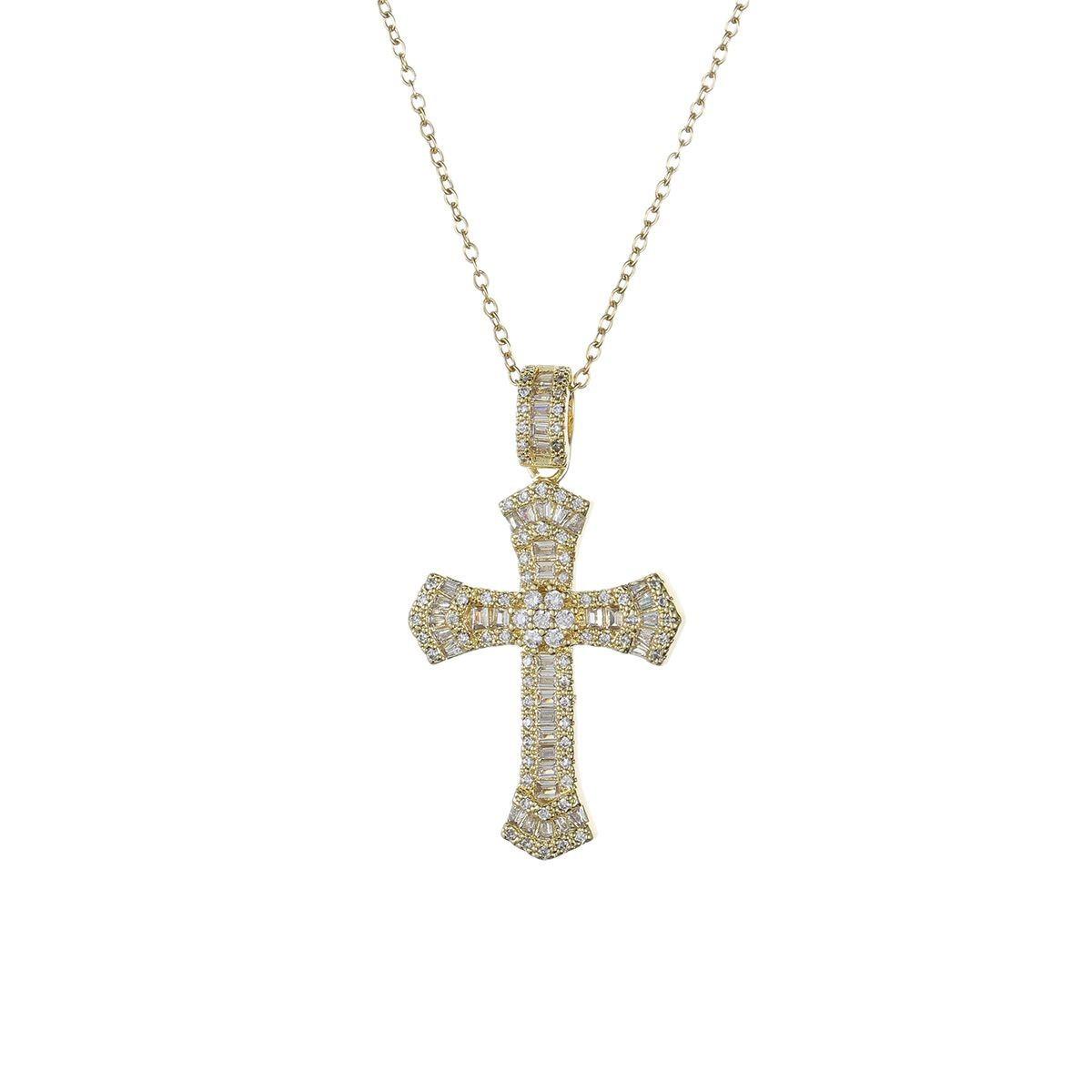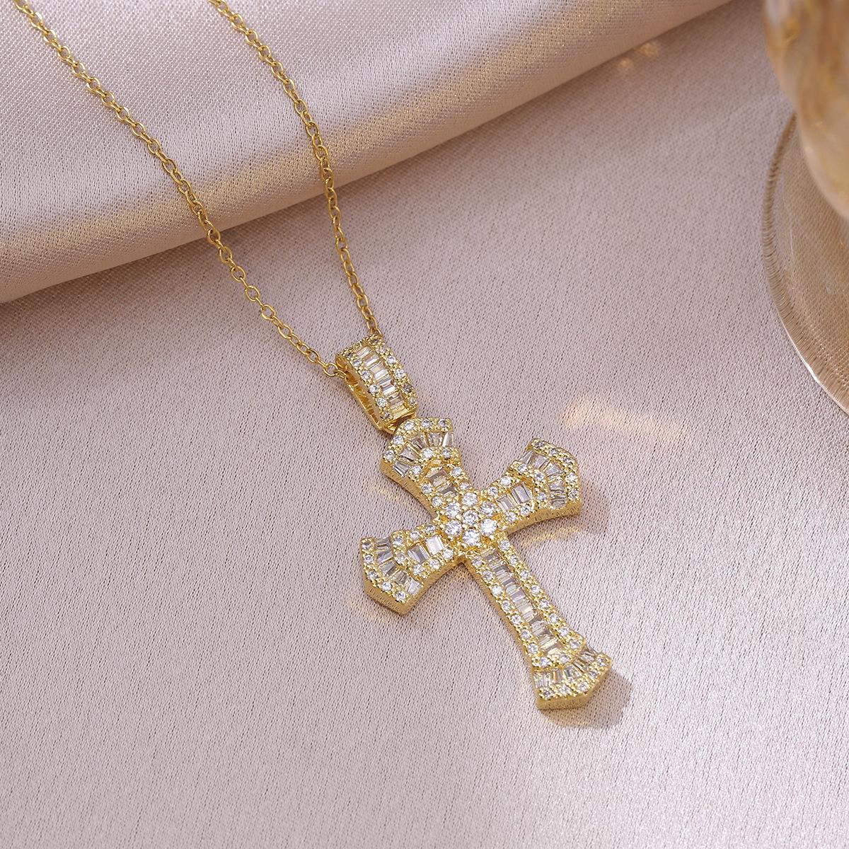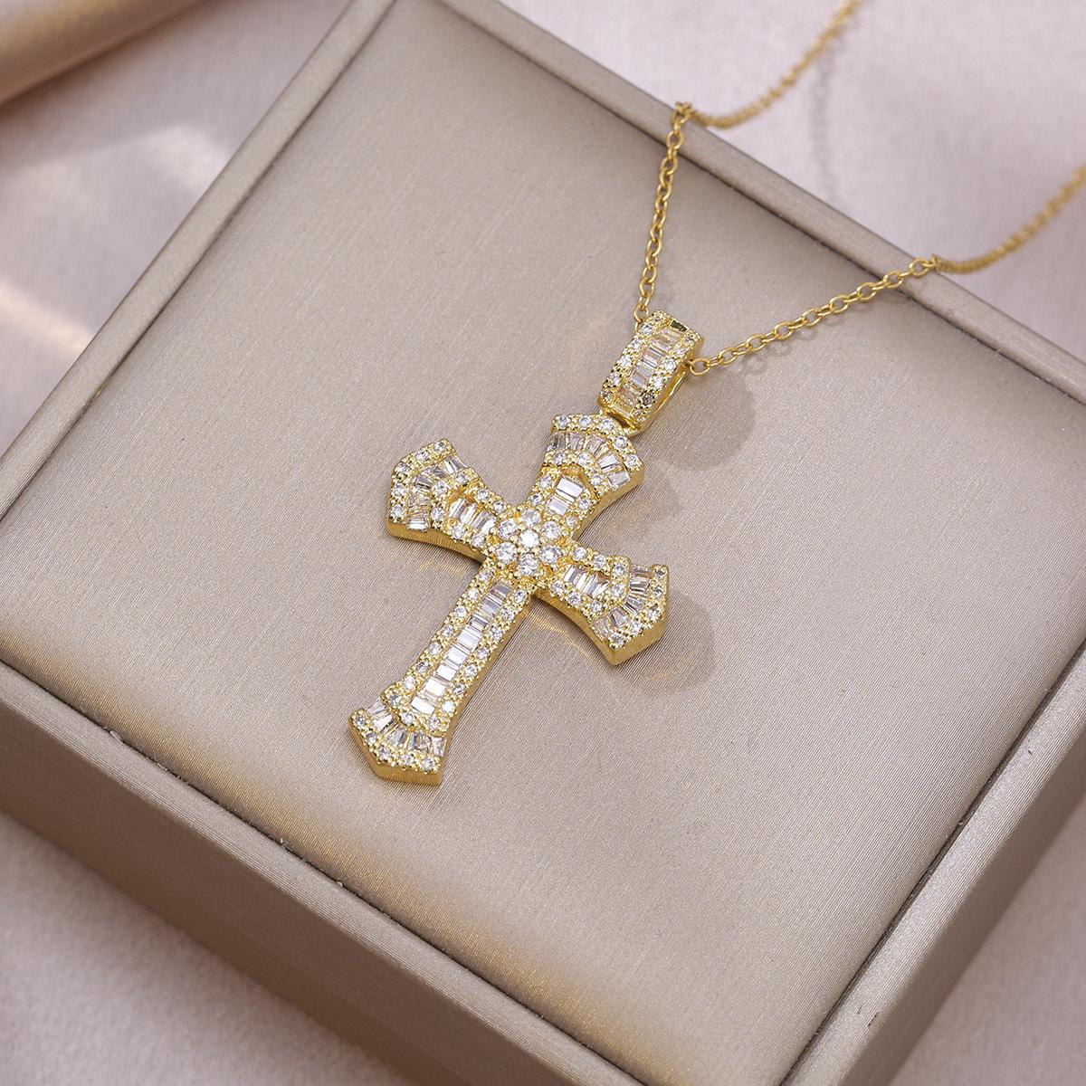 Collar para Mujer Transfronterizo Europeo y Americano Simple Personalidad Moda Cobre Micro-incrustado Zircón Colgante Joyería Cruz Collar Diamante Completo No