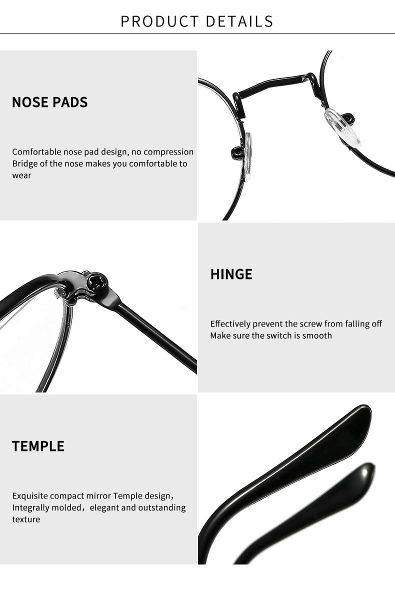 4. Cuando no use gafas, envuélvalas con un paño y guárdelas en su estuche. Si las guarda temporalmente, coloque la parte convexa de las gafas hacia arriba para evitar que las lentes se rayen fácilmente. Evite el contacto con productos corrosivos como repelentes de insectos, productos de limpieza para inodoros, cosméticos, laca para el cabello, medicamentos, etc., y evite la exposición prolongada a la luz solar directa y a altas temperaturas (superiores a 60 °C). Esto puede causar el deterioro, la decoloración, etc. de las lentes y la montura.