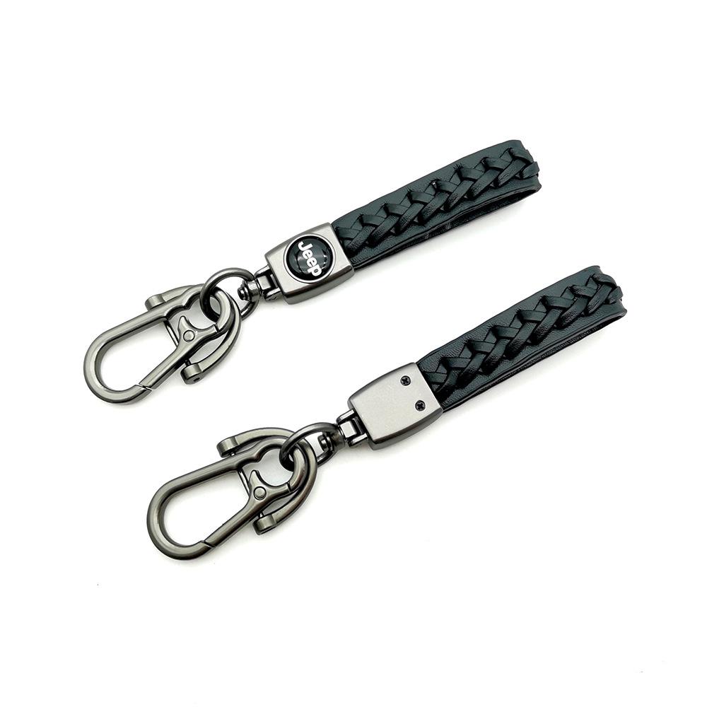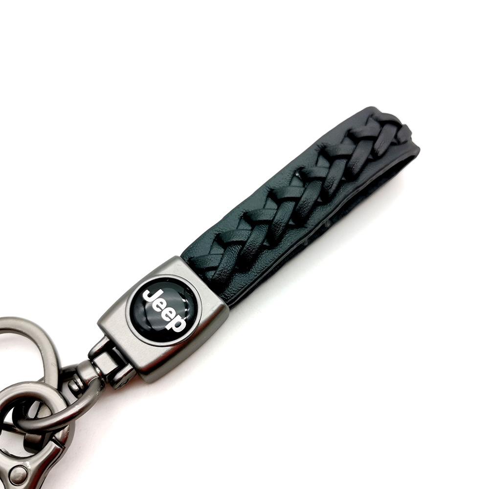 Llavero Metálico con Logo de Coche de Cuero Nappa Trenzado