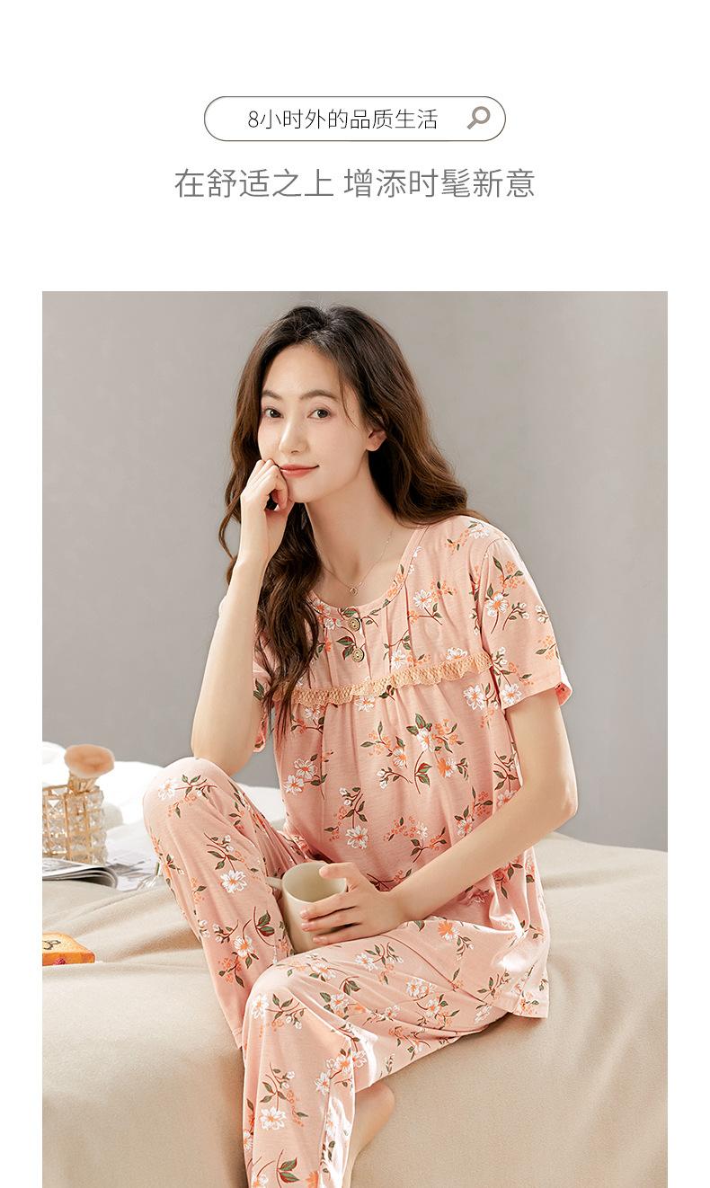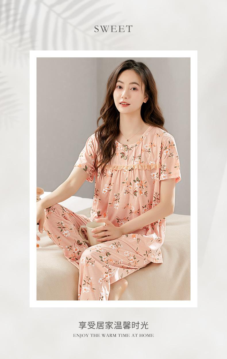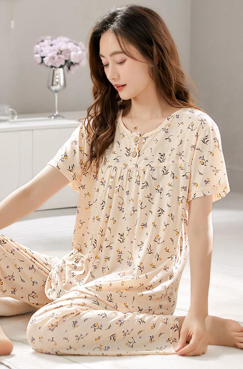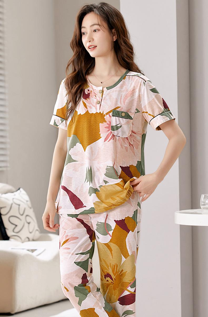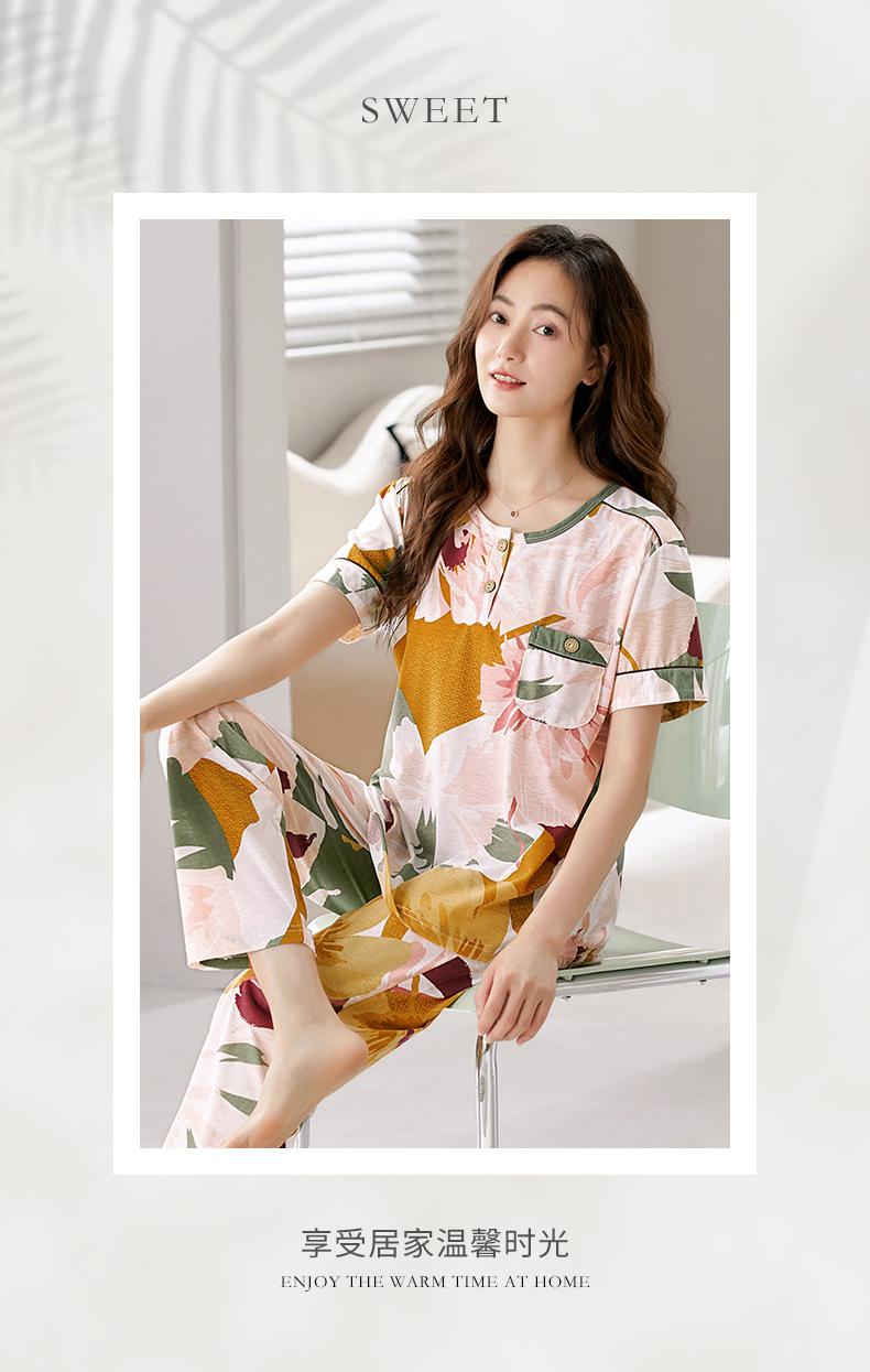 Pijama para Mujer Verano Manga Corta Pantalón Conjunto de Dos Piezas Verano Talla Grande Cuello Redondo Pulóver Madre de Mediana Edad y Anciana Ropa para el Hogar