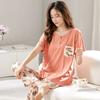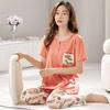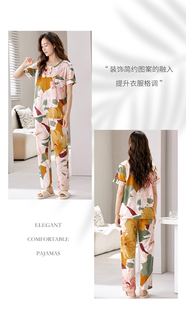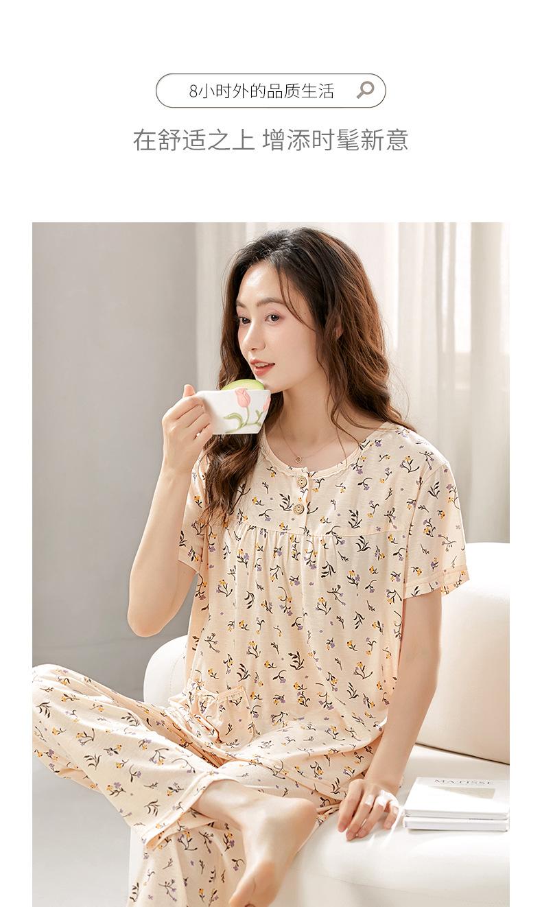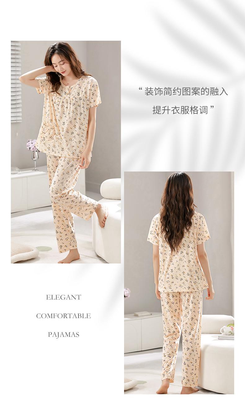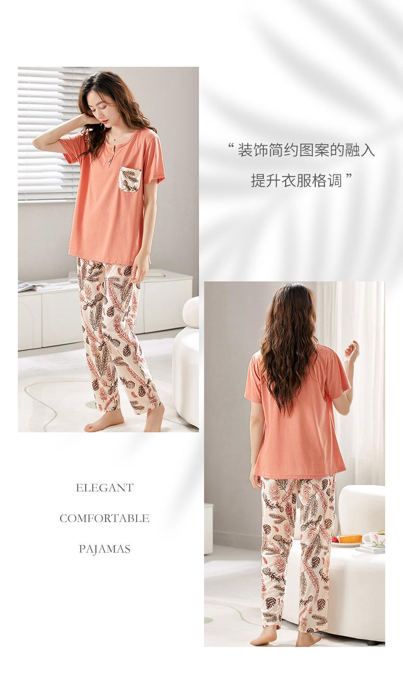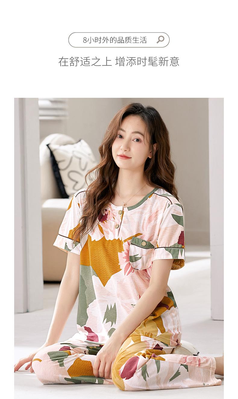Pijama para Mujer Verano Manga Corta Pantalón Conjunto de Dos Piezas Verano Talla Grande Cuello Redondo Pulóver Madre de Mediana Edad y Anciana Ropa para el Hogar