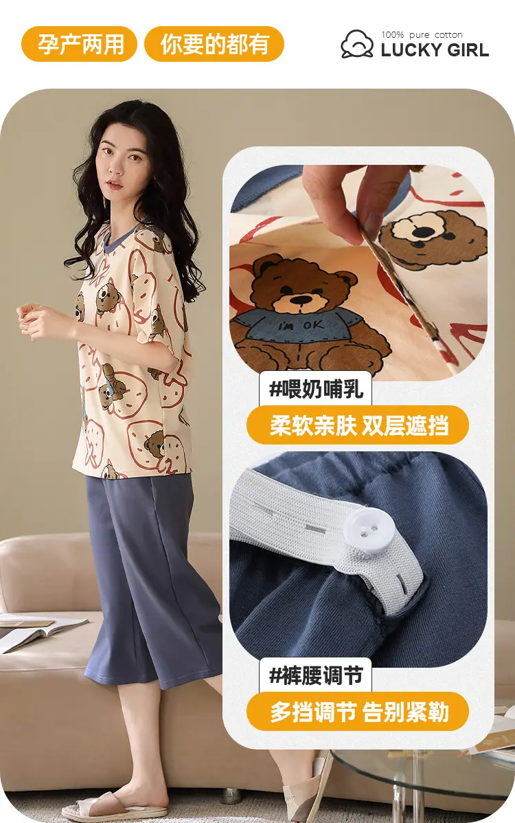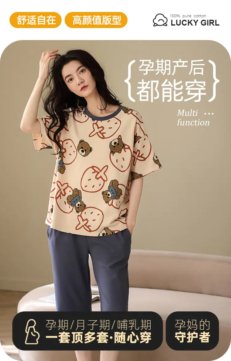 Pijama de Verano para Mujeres Embarazadas para Lactancia Materna, Delgado, de Manga Corta, para Alimentación, para el Hogar, Postparto, Embarazo, Verano, Ropa Mensual