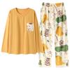 Pijama para Mujer con Almohadilla en el Pecho Primavera y Otoño Algodón Jersey Manga Larga Nuevo Antigolpes Delgado Traje de Ropa para Casa