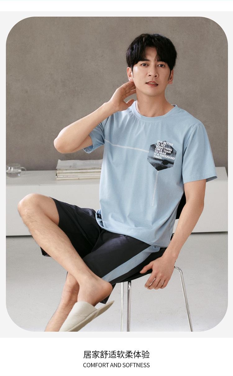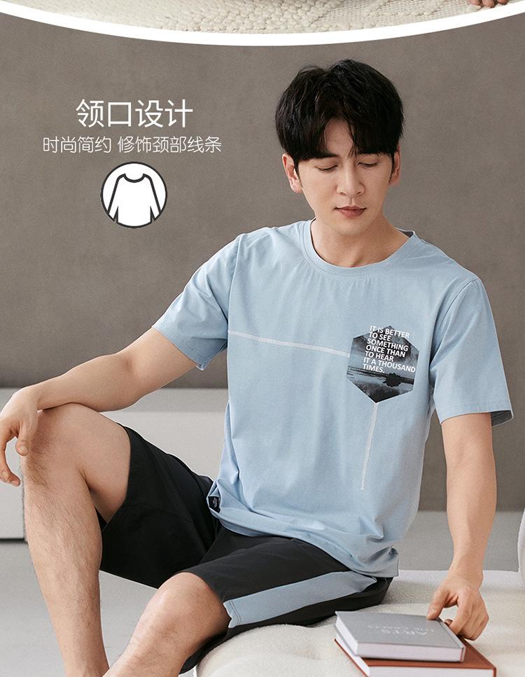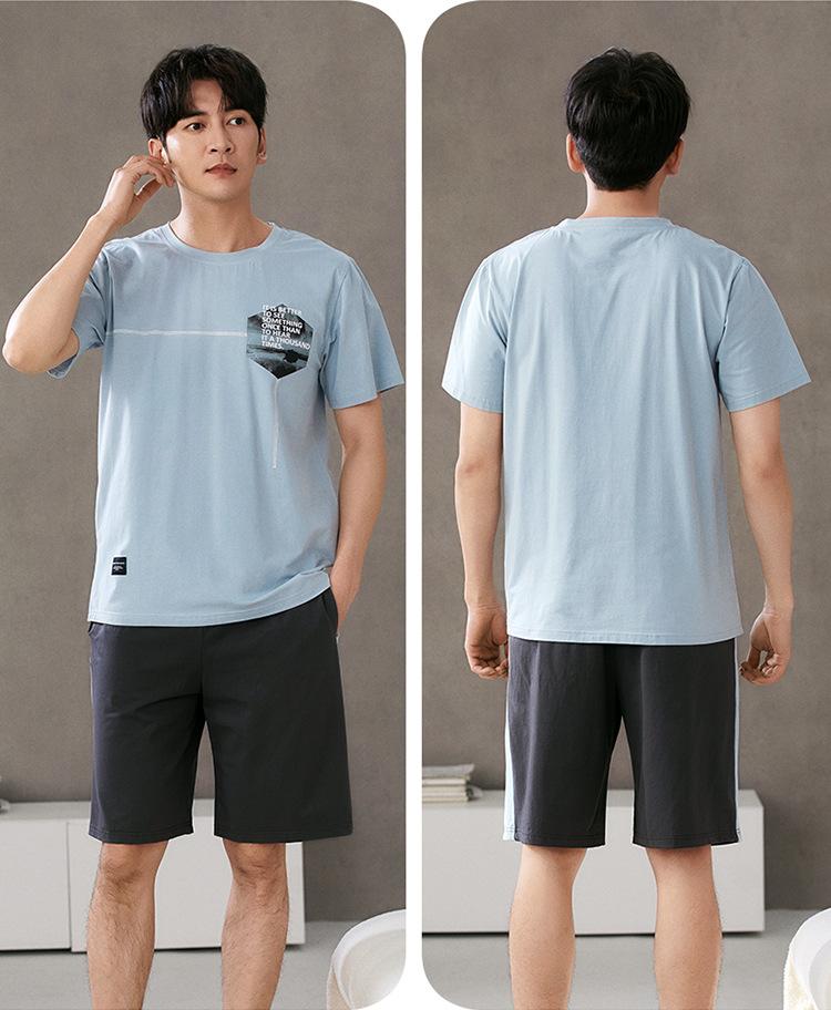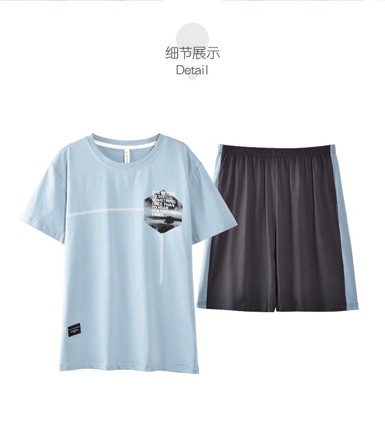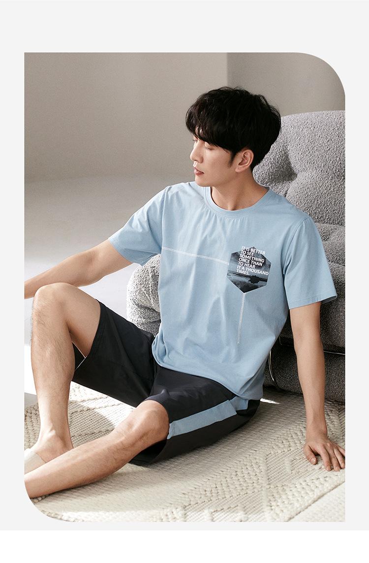 Pijama de Verano para Hombre de Manga Corta y Pantalón Corto Algodón Puro Verano Fino Nuevo Conjunto de Ropa para Casa de Hombre Se Puede Usar Afuera