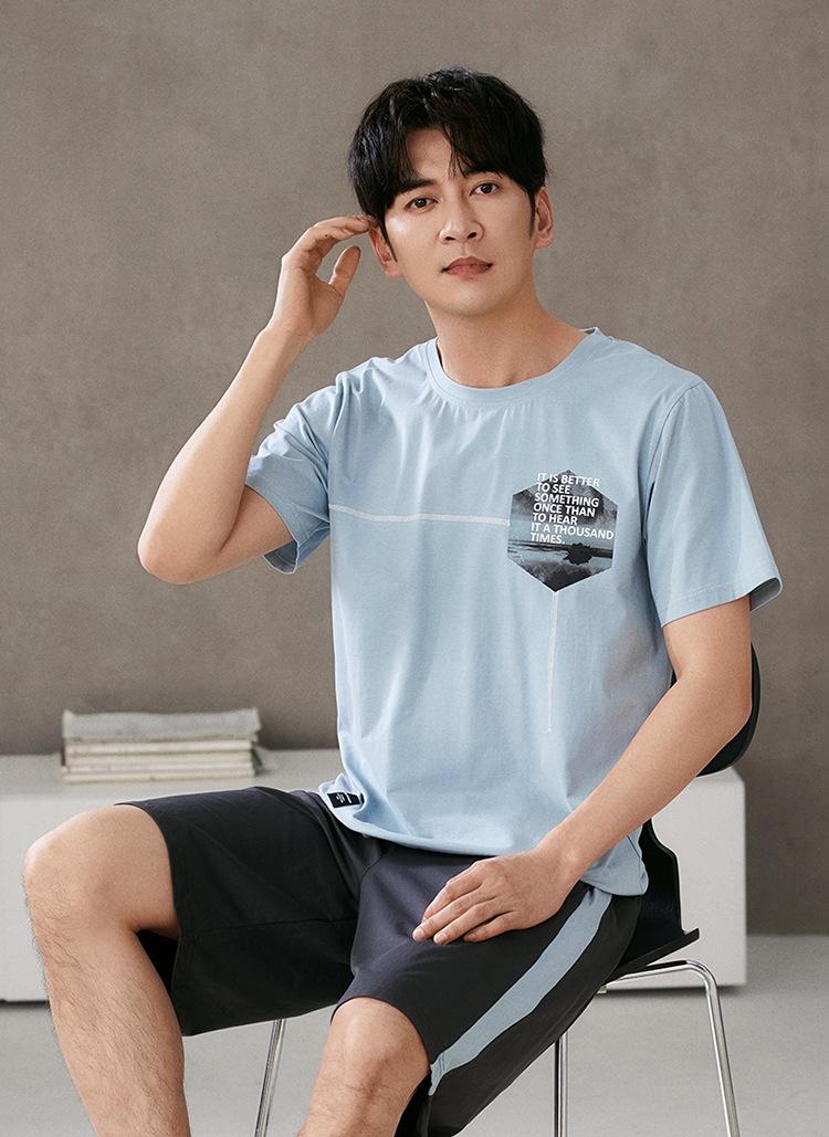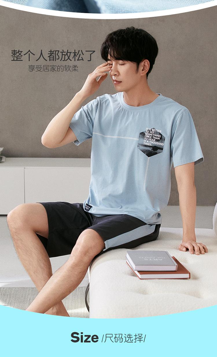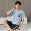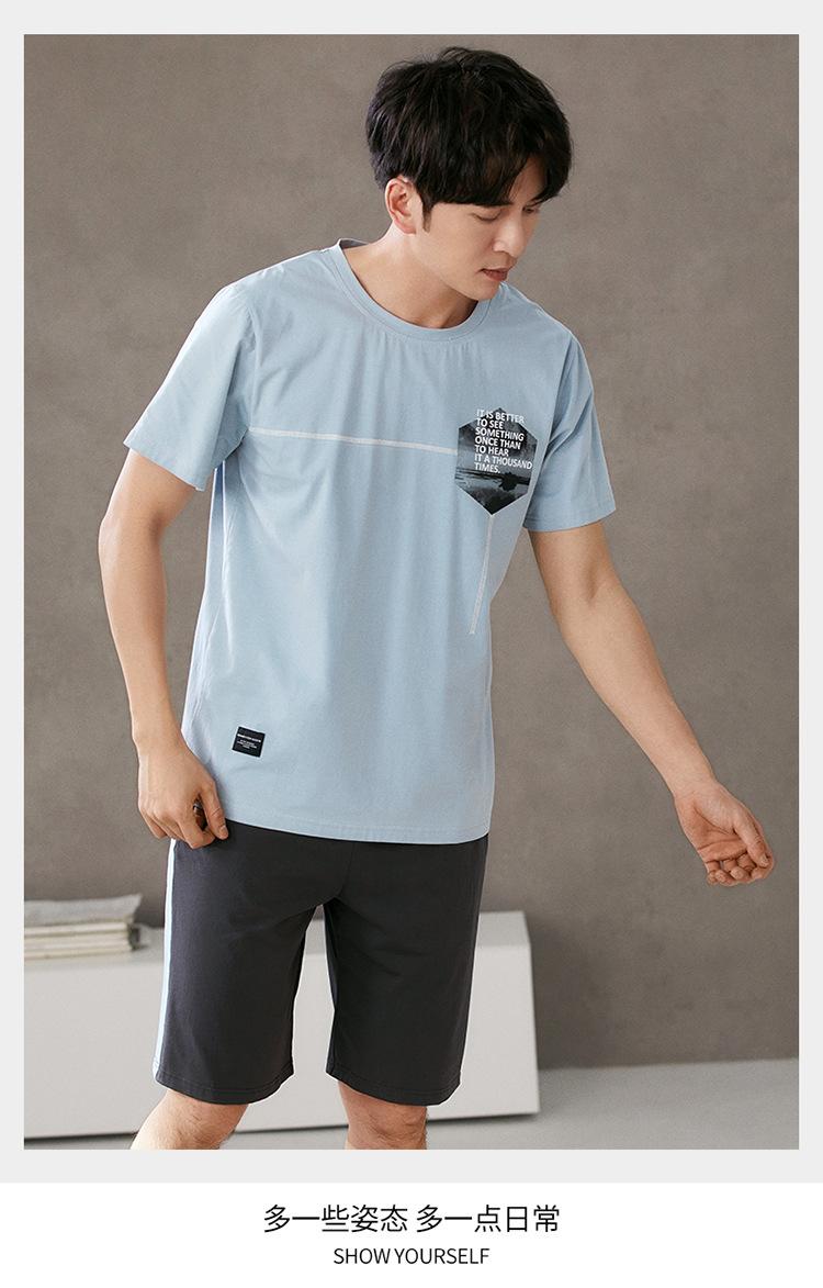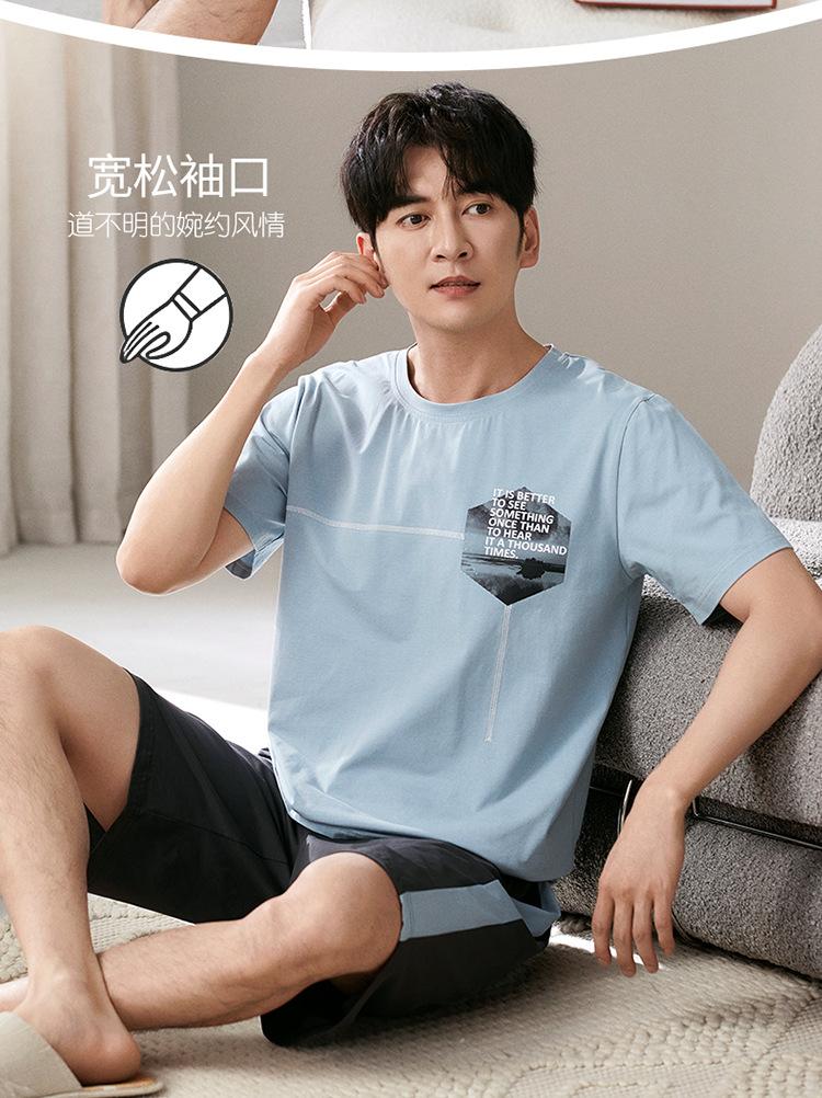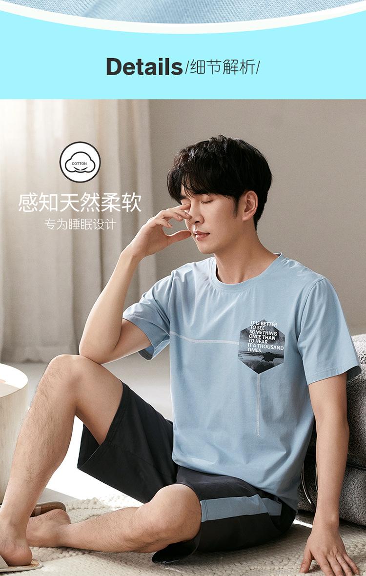 Pijama de Verano para Hombre de Manga Corta y Pantalón Corto Algodón Puro Verano Fino Nuevo Conjunto de Ropa para Casa de Hombre Se Puede Usar Afuera