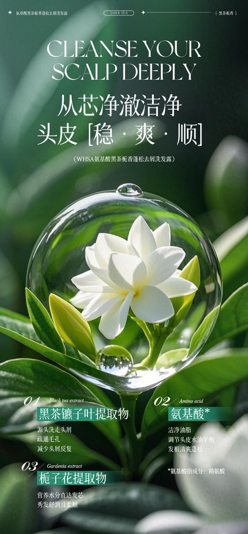 Whsa amino acid black tea gardenia fluffy anti-dandruff shampoo 500ml