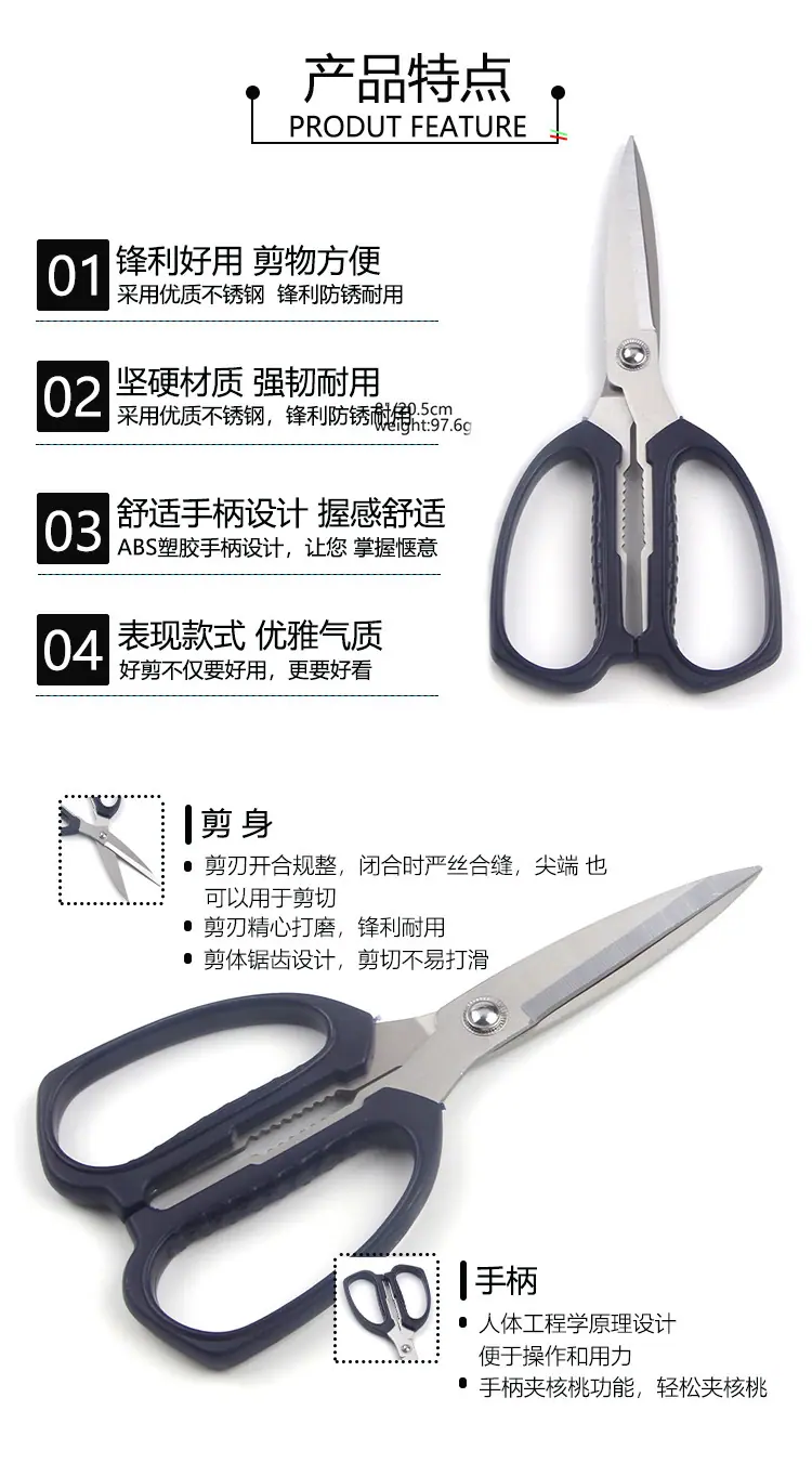 Tijeras de cocina prácticas afiladas oficina hogar acero inoxidable tijeras potentes uso multifuncional para cortar papel tijeras de sastre