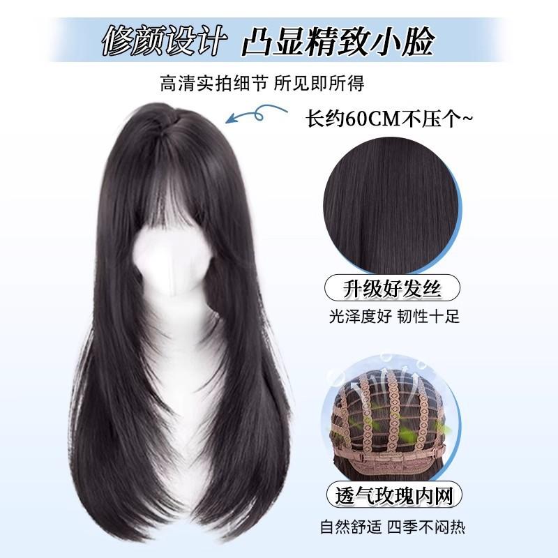 Peluca Cubierta de Cabeza Completa Mujeres Tendencia de Verano Clavícula Americana Ligera Muy Capas Moldeadora de Rostro Lolita Diaria Peluca de Cabeza Completa