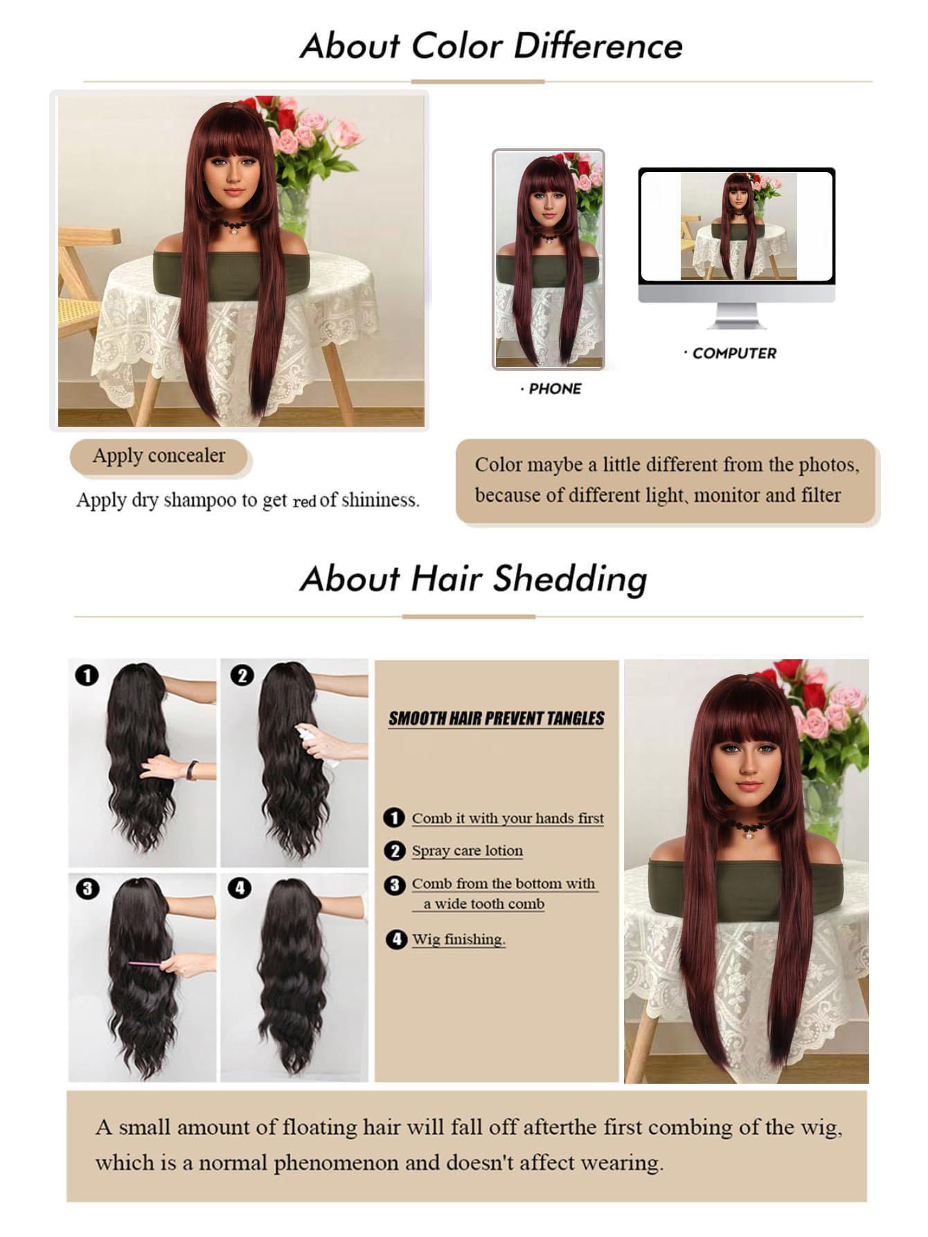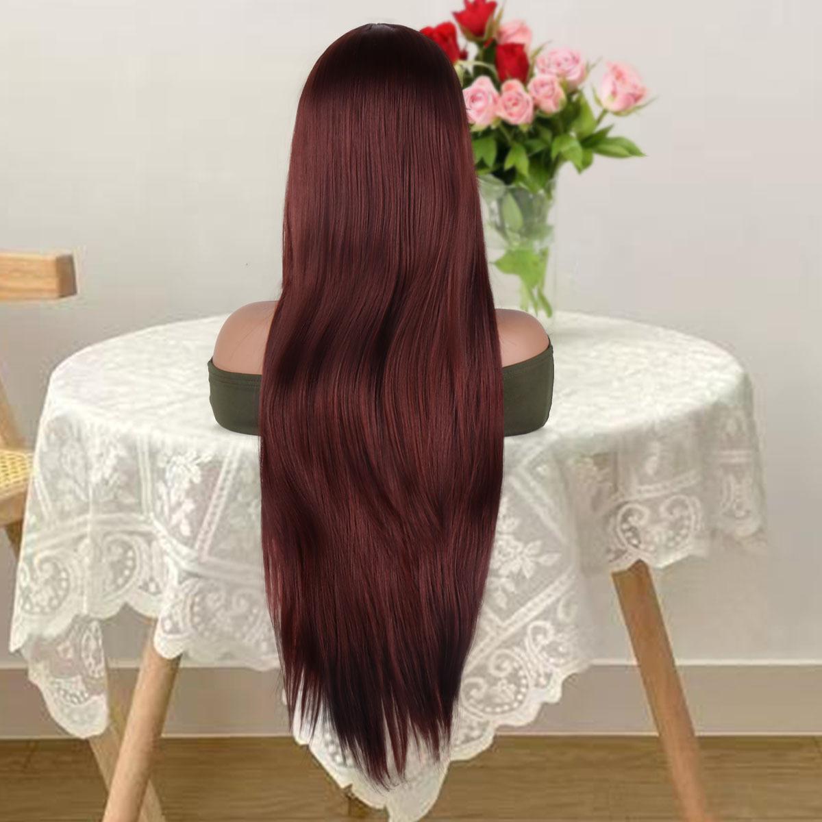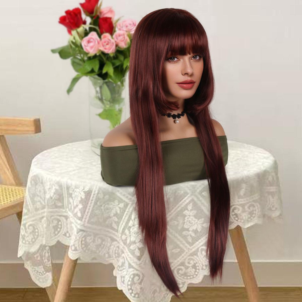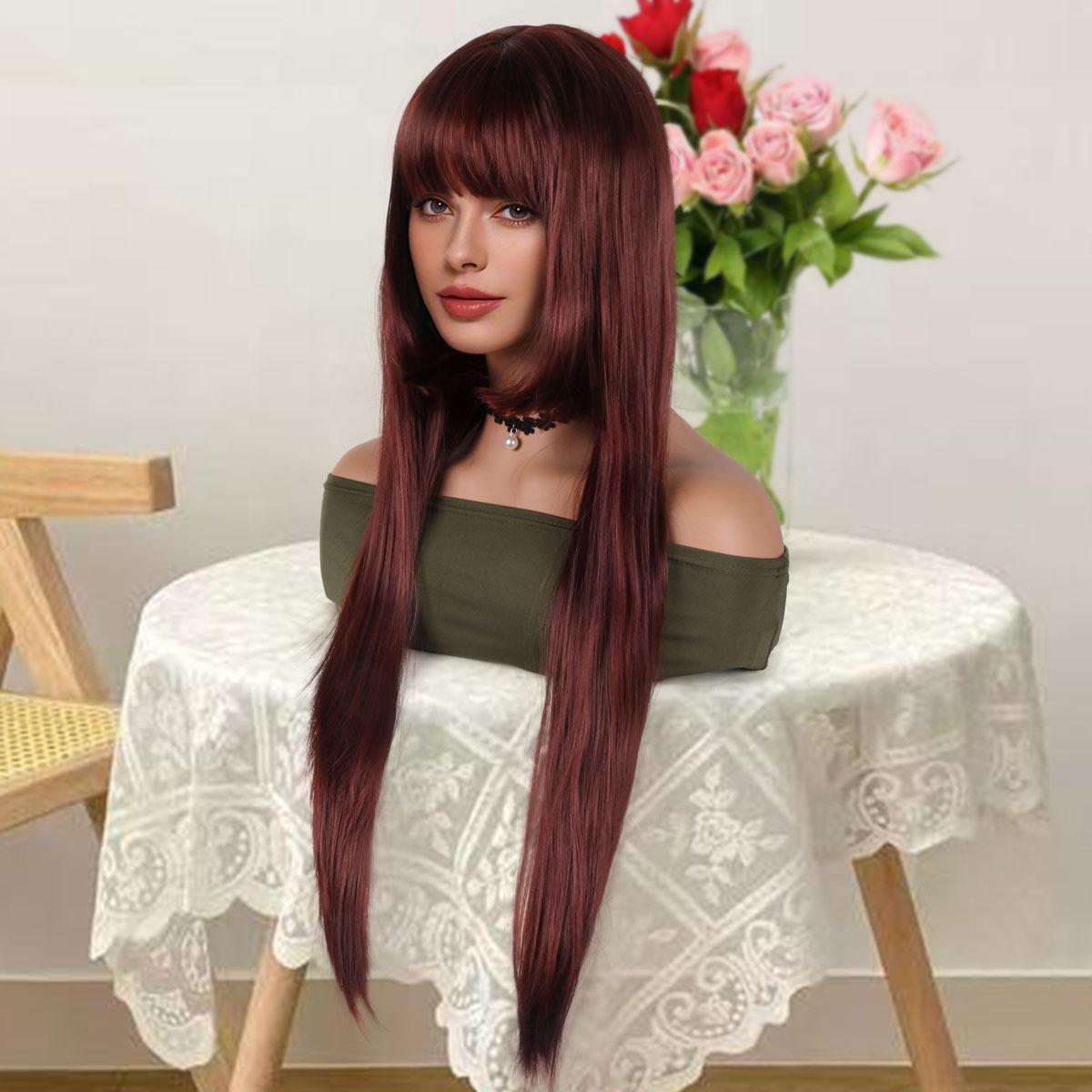 Peluca Estilo Coreano Corte Princesa Cabello Largo Liso Peluca para Mujer Venta al por Mayor Flequillo Moderno Cabello Largo Liso Peluca de Fibra Sintética