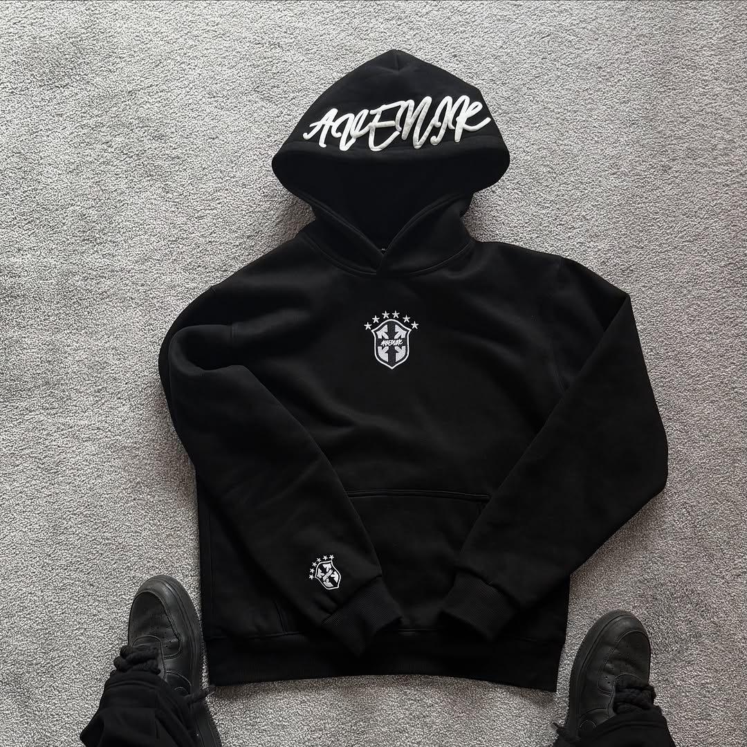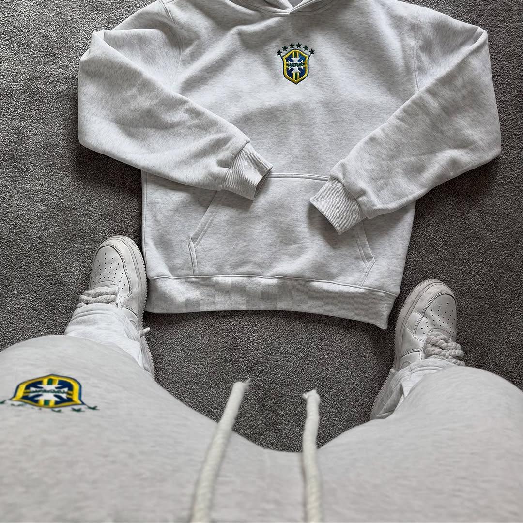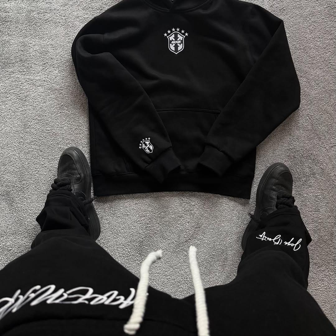 Tendencia de Moda Europea y Americana Otoño e Invierno Sudadera con Capucha Pulóver Bordado de Letras Conjunto Chaqueta Casual Unisex
