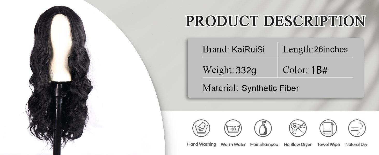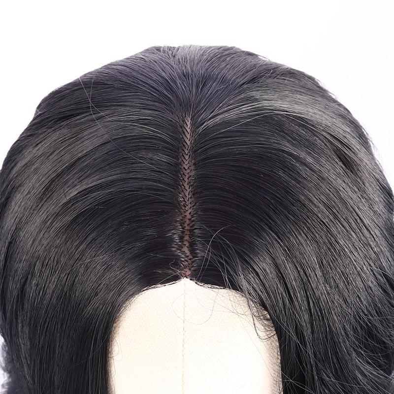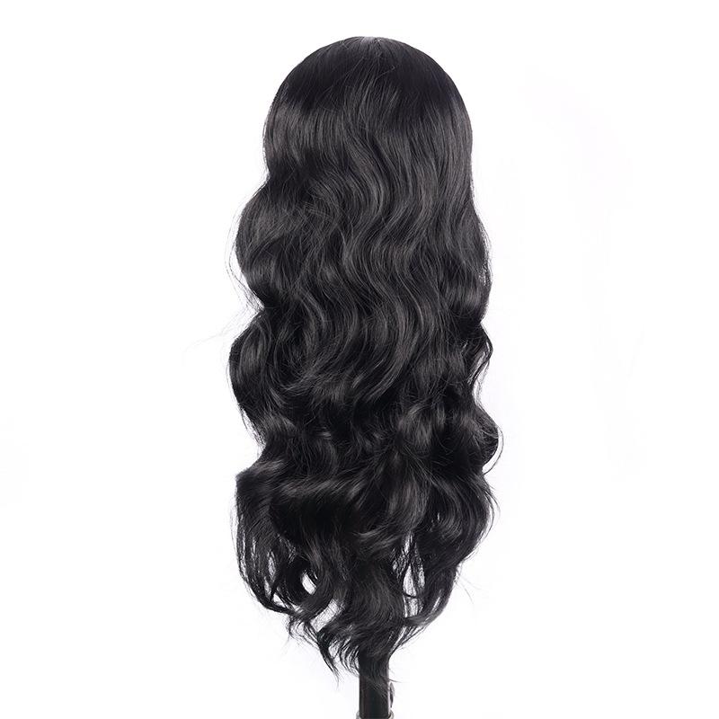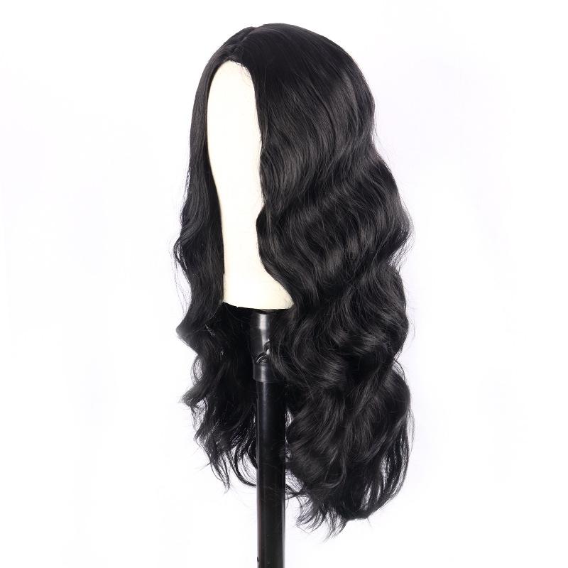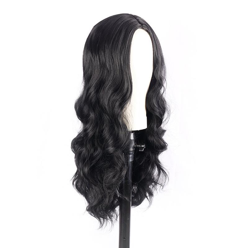 Peluca Ventas Calientes Transfronterizas Peluca para Mujer Negra con Raya Media Cabello Largo Rizado Onda Grande Hecha a Máquina Tocado Cuero Cabelludo Simulado