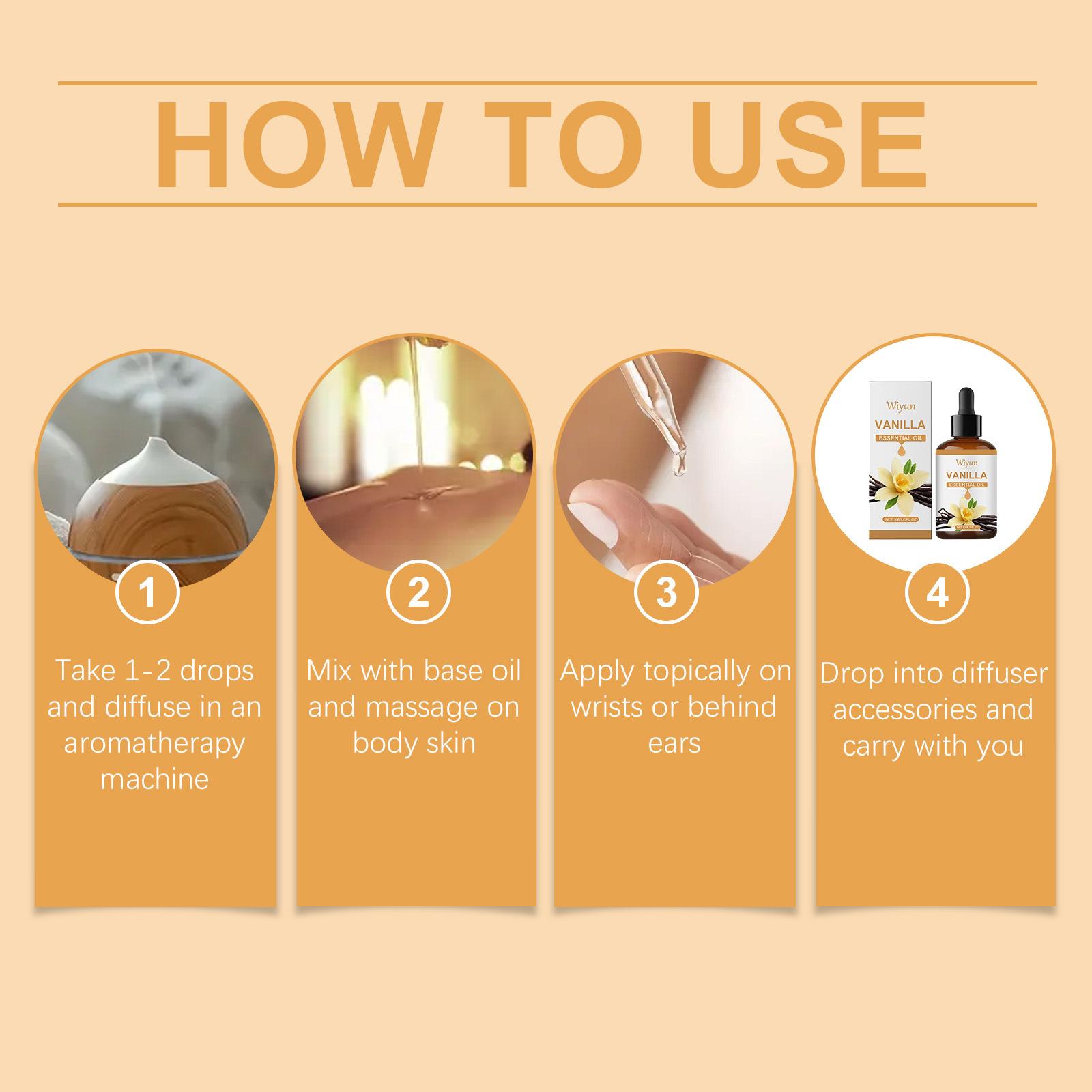 Wiyun Aceite Esencial Sabor Vainilla Hidratante y Suavizante Cuidado Aceite Cuidado para el Sueño Portátil y Seguro Aromaterapia Fragancia Natural