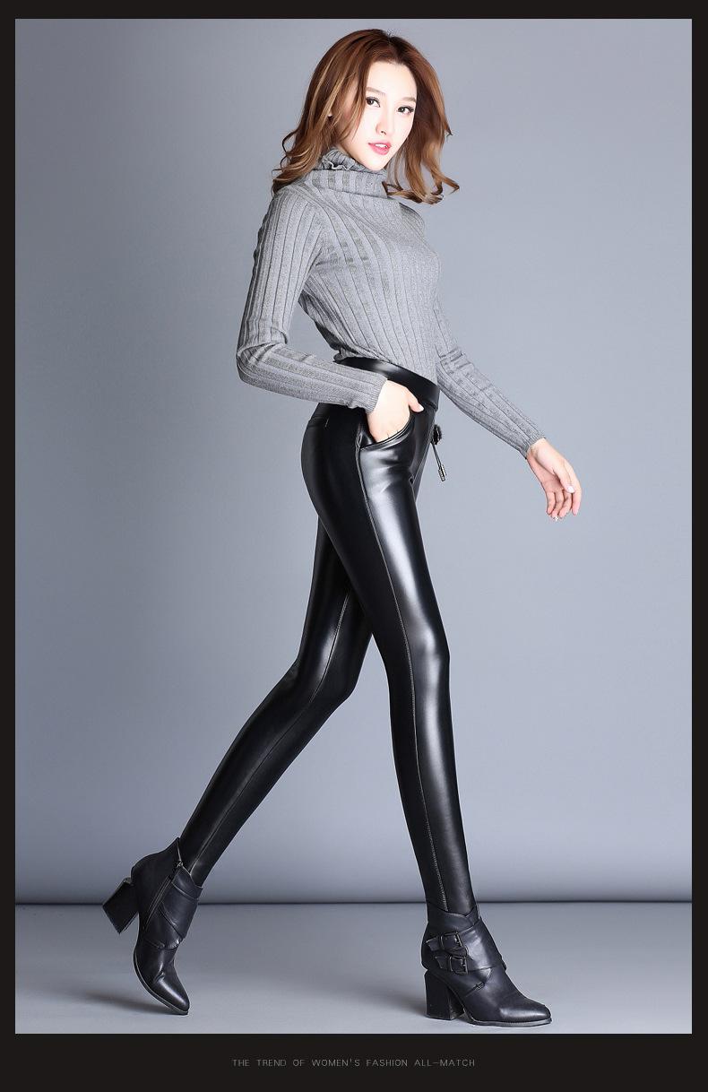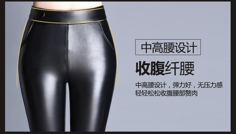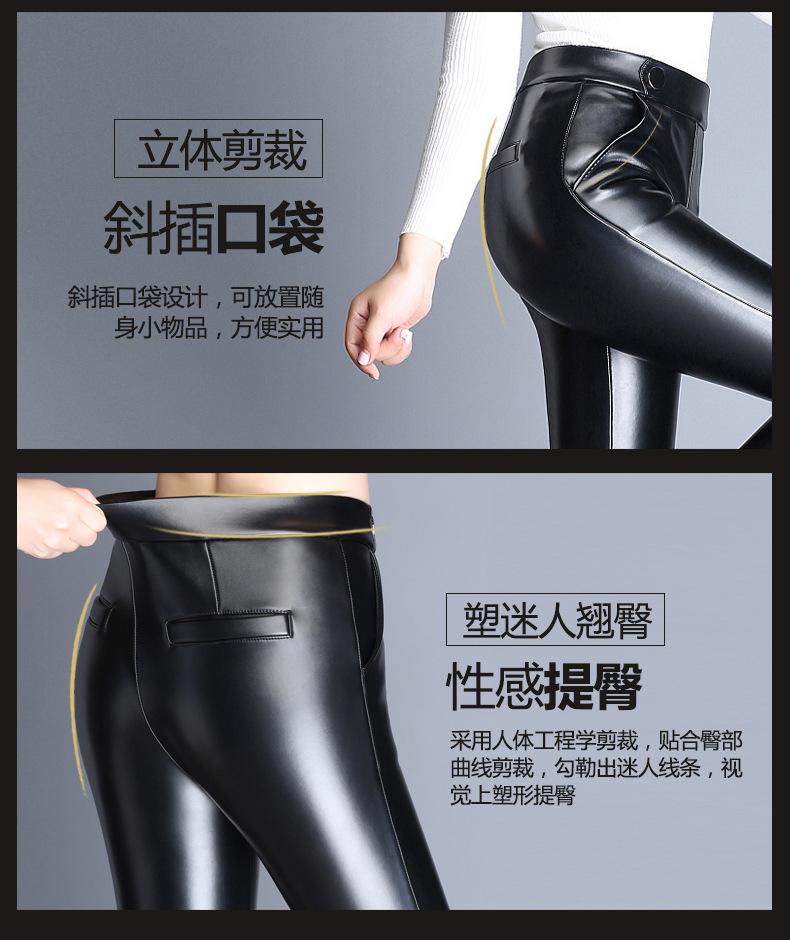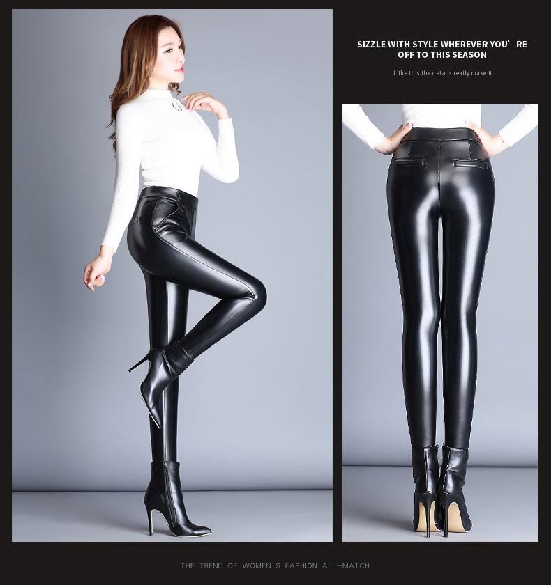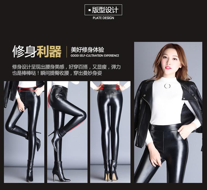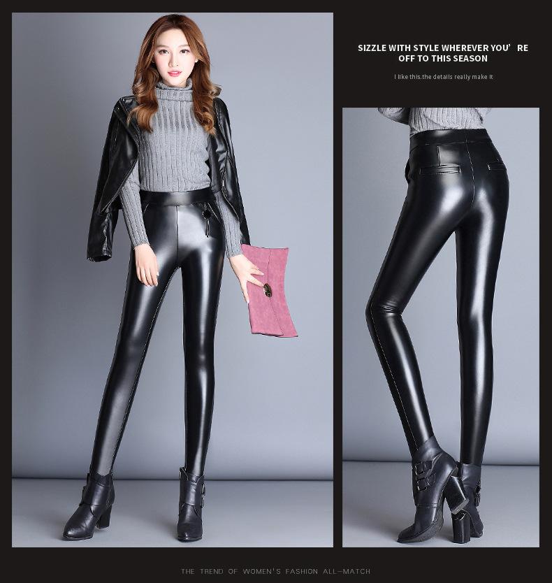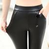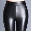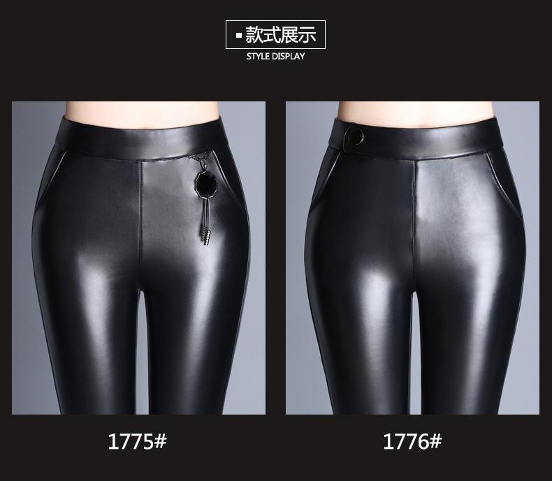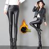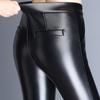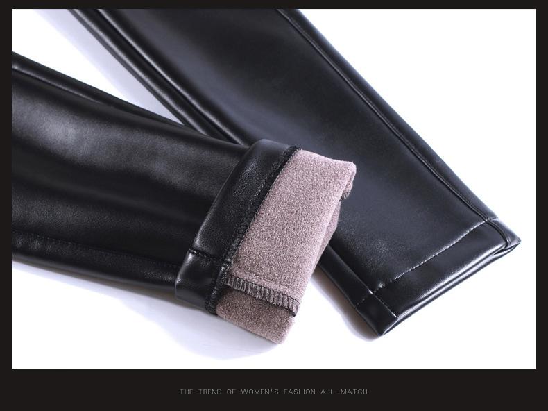 2025 Pantalones de Cuero con Forro Polar Nueve Puntos Otoño e Invierno Ropa Exterior Cintura Alta Lápiz Adelgazantes Ajustados Cuero PU Talla Grande Pie Pequeño Fondo Pantalones de Mujer