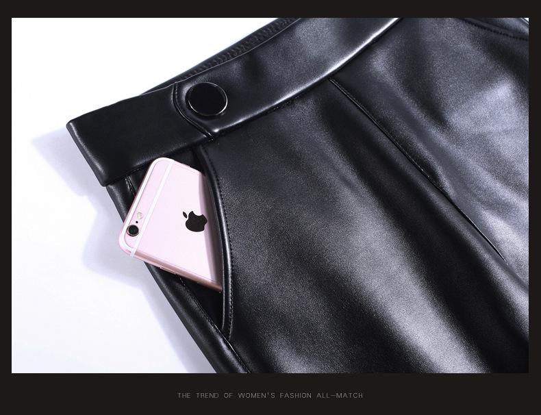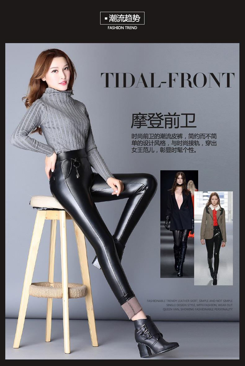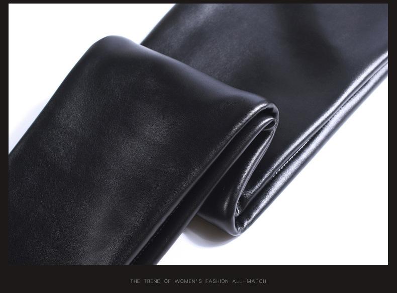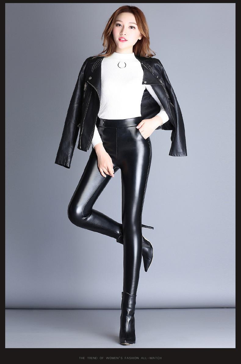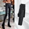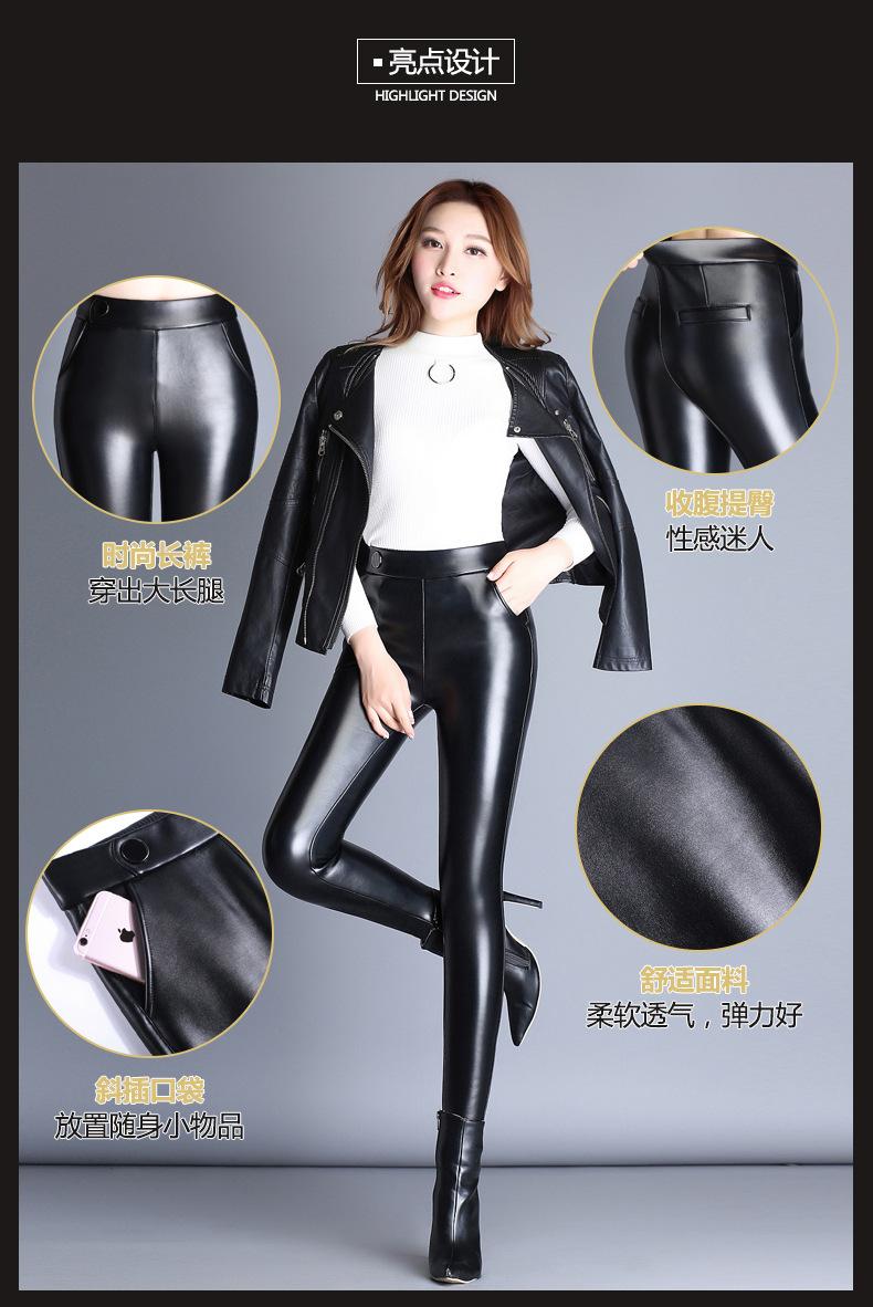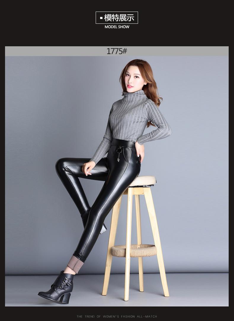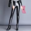 2025 Pantalones de Cuero con Forro Polar Nueve Puntos Otoño e Invierno Ropa Exterior Cintura Alta Lápiz Adelgazantes Ajustados Cuero PU Talla Grande Pie Pequeño Fondo Pantalones de Mujer