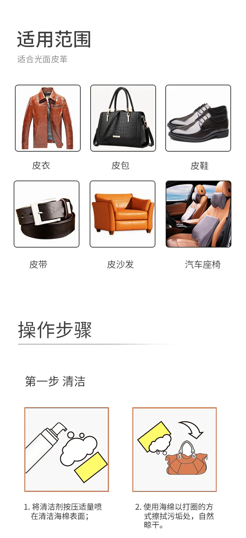 Glossy leather cleaning care