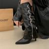 2025 Nuevas Botas de Pantalón de Tacón Alto Stiletto con Cremallera Lateral para Mujer Botas con Hebilla de Cinturón Botas de Moda Europeas y Americanas Moda para Mujer
