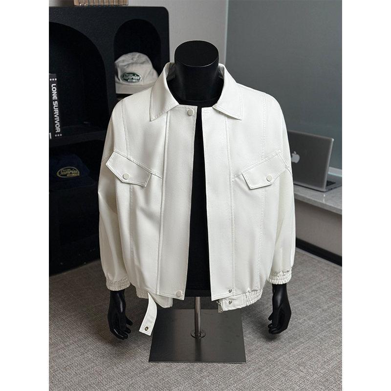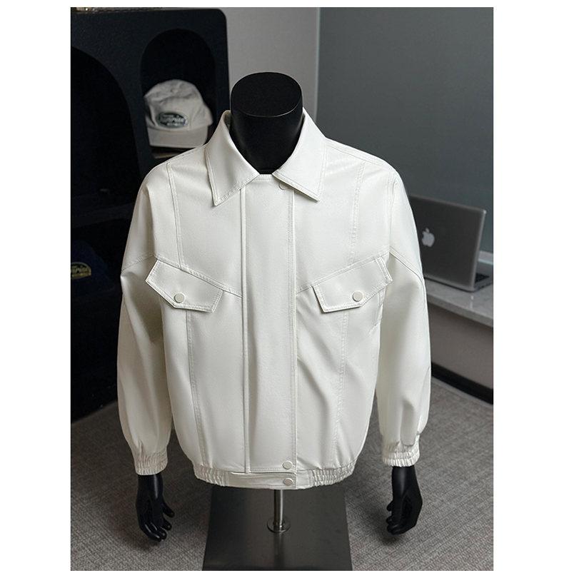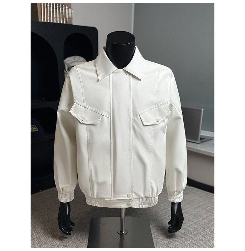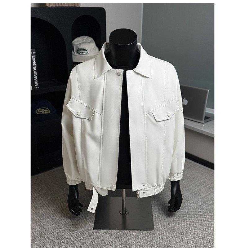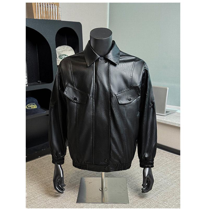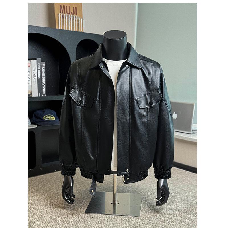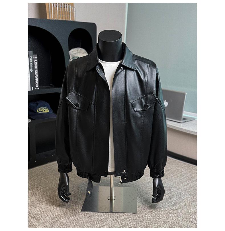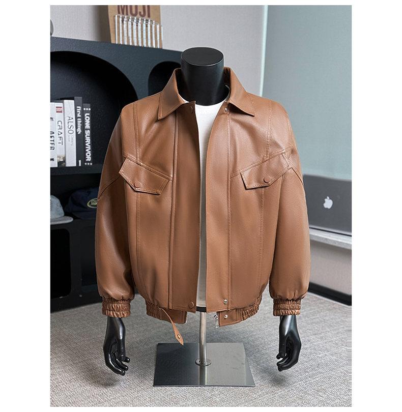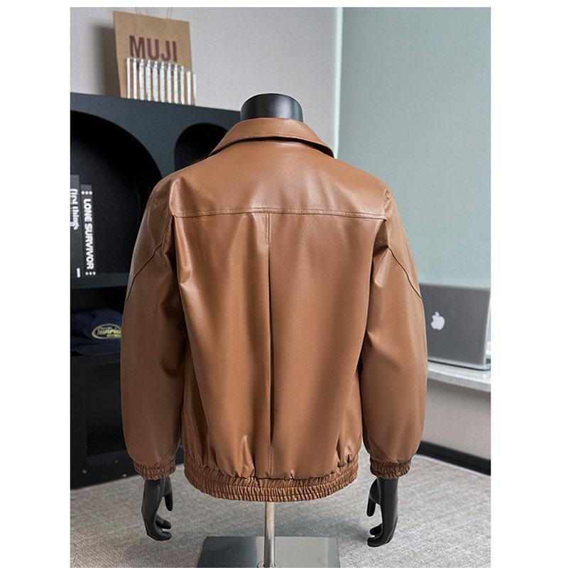 2025 Otoño Nuevo Chaqueta Retro Americana de Cuero PU para Hombre Holgada Motocicleta Pareja Chaqueta de Cuero Solapa Cortavientos Top