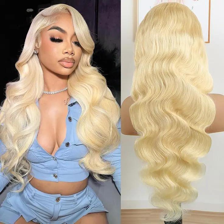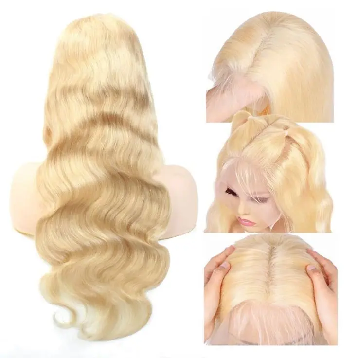 Peluca de Cabello Humano Real 613 Onda Corporal 13*4 Peluca de Cabello Humano Dorado Encaje Grande Dorado