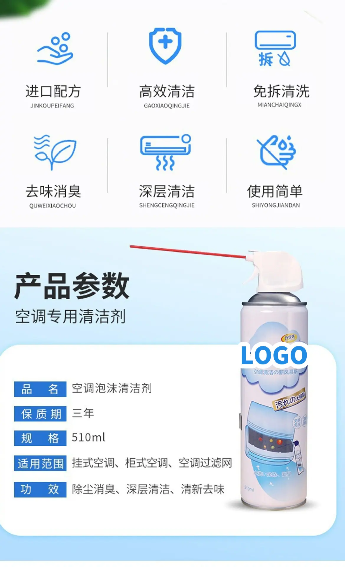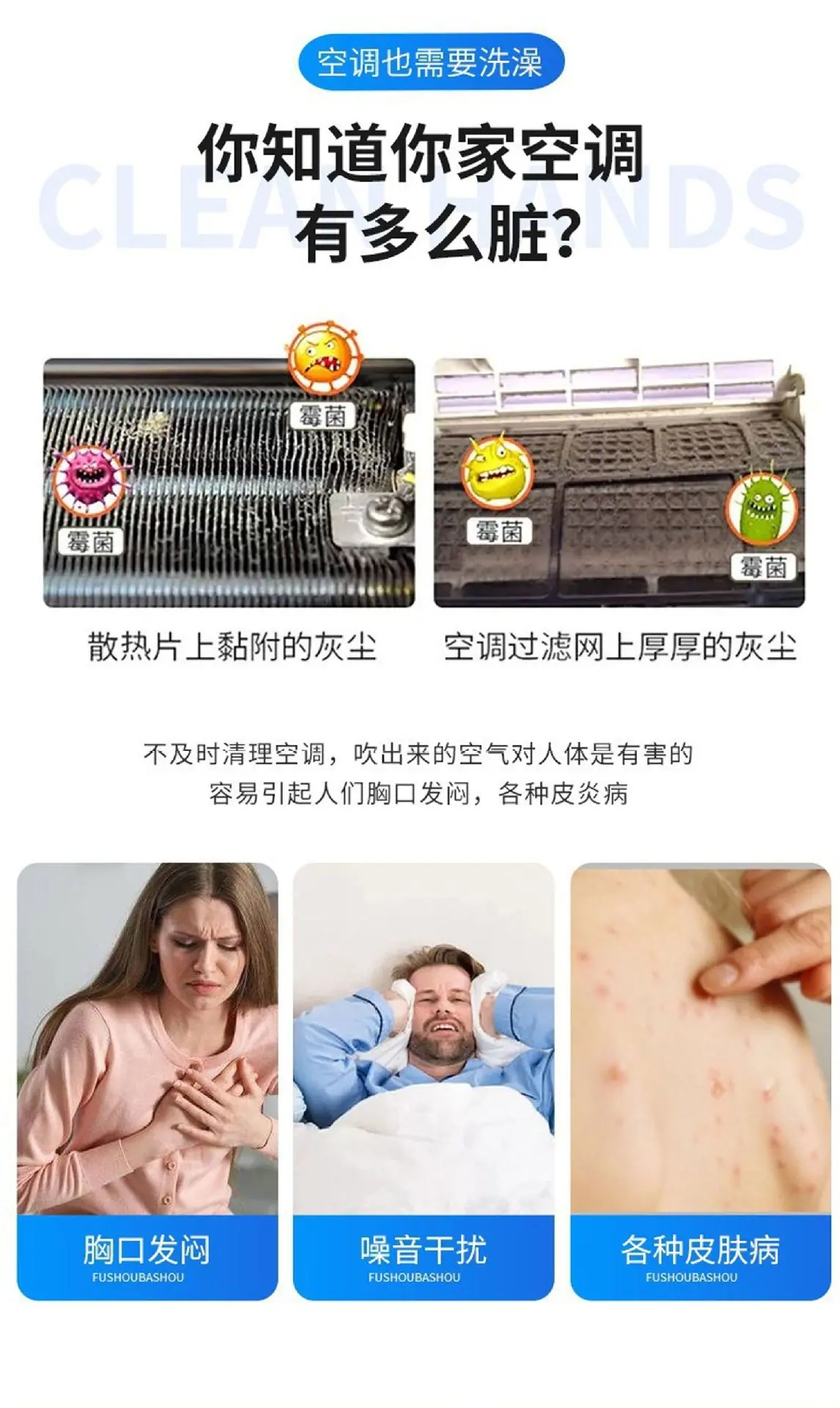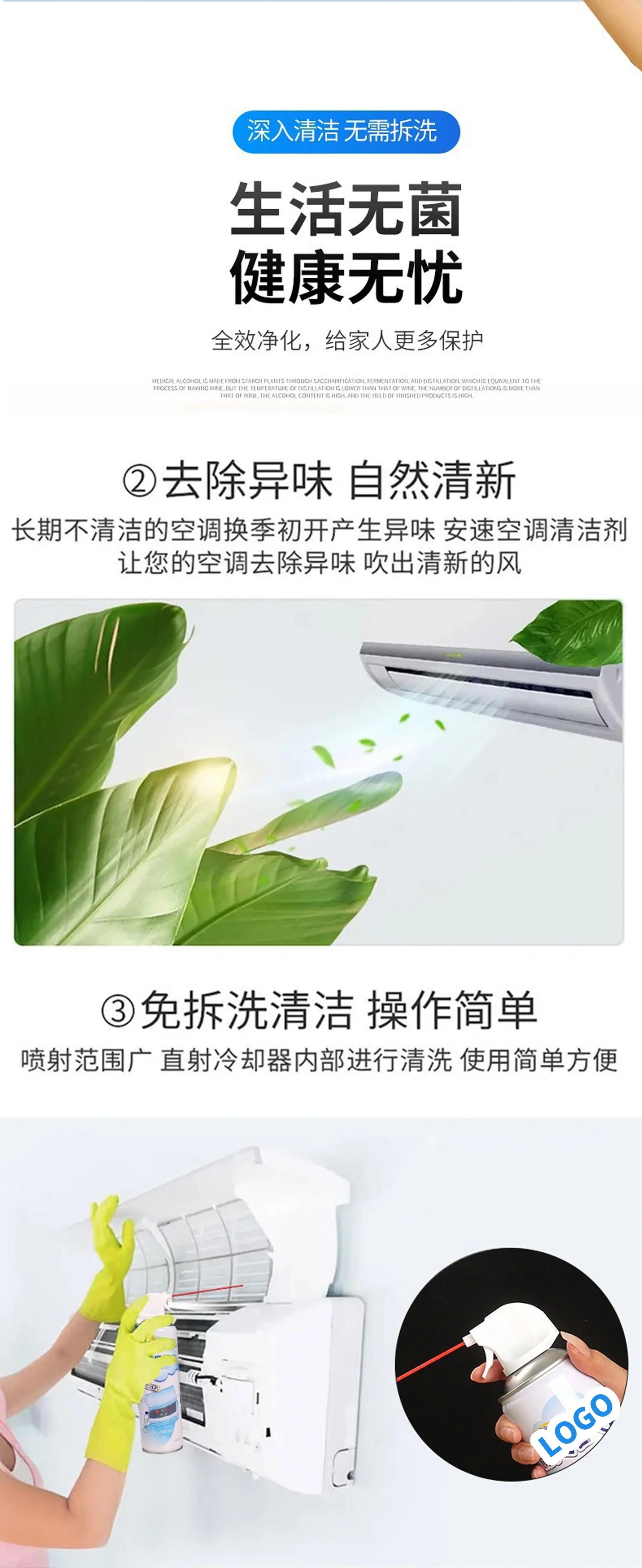 Agente Limpiador de Aire Acondicionado para Limpiar Unidades Internas Sin Desmontaje, Eliminación de Polvo, Limpieza de Aletas, Espuma Quitamanchas, Limpieza con Espuma Desinfectante