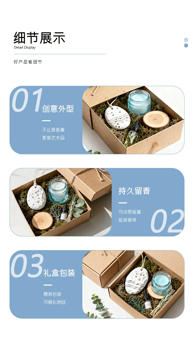 Caja de Regalo de Aromaterapia Natural Nórdica Personalizada Estilo Mori Aroma Fresco de Yeso Adorno Colgante Perfumado Vela Perfumada Aceite Esencial de Planta Regalo ins