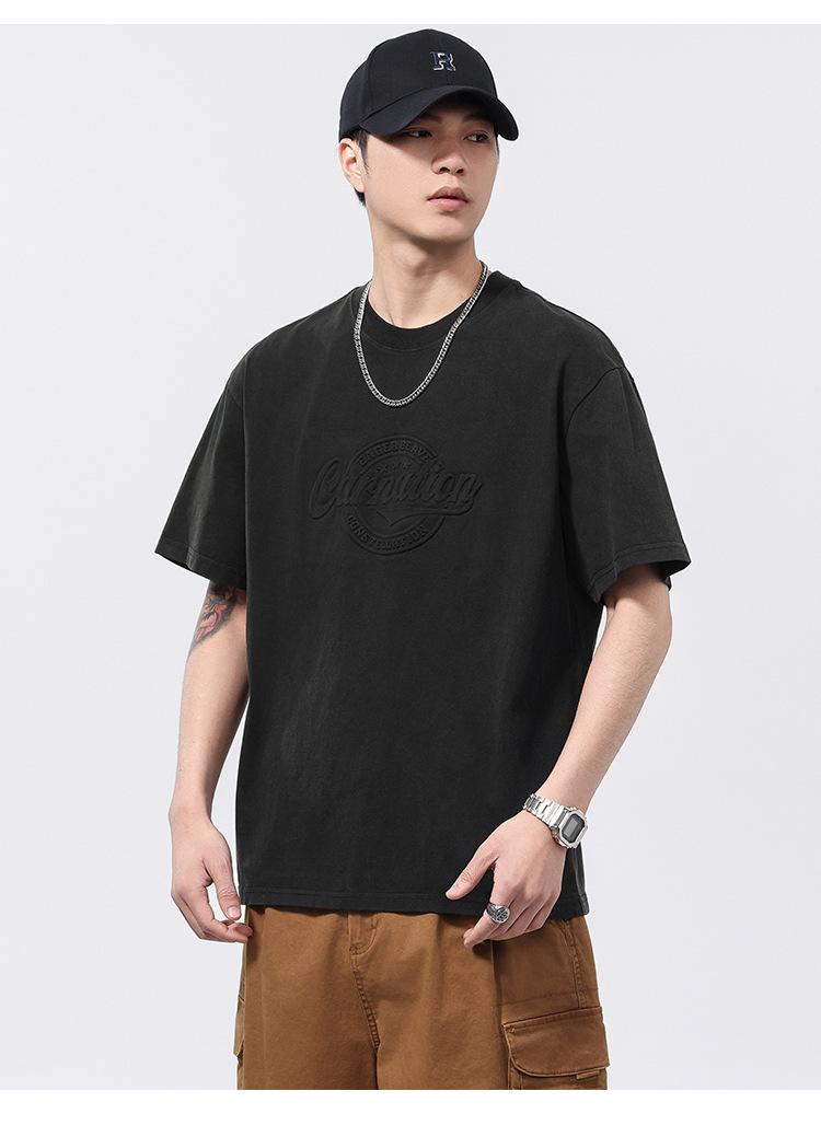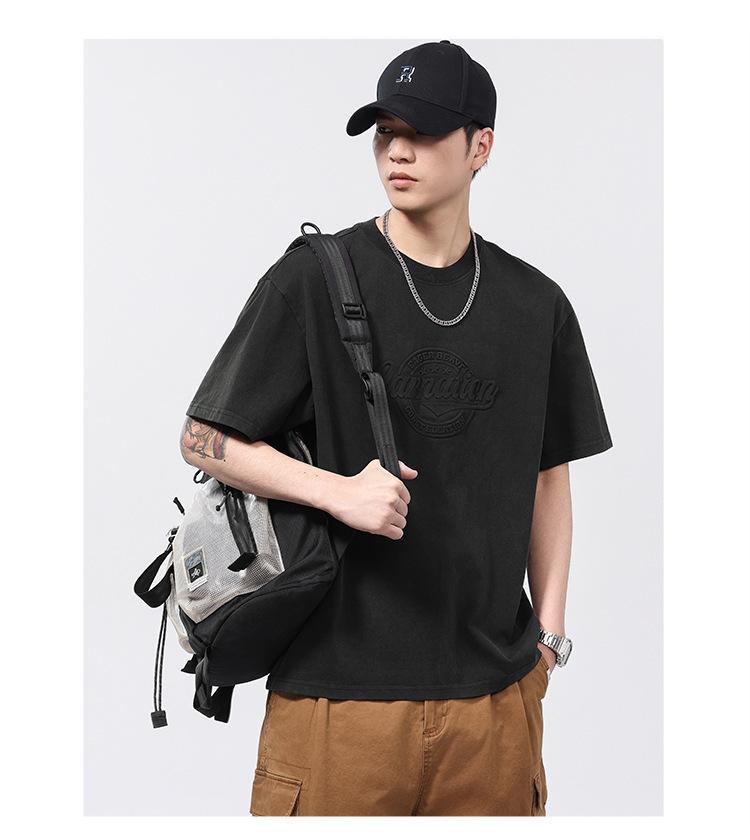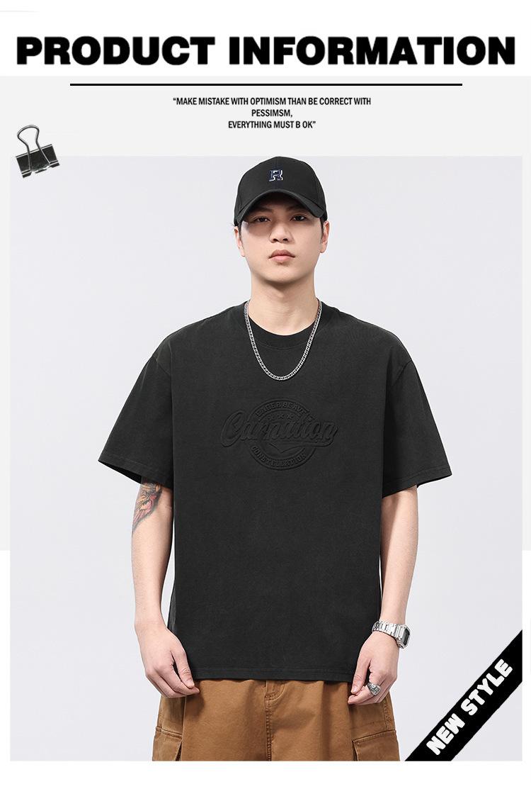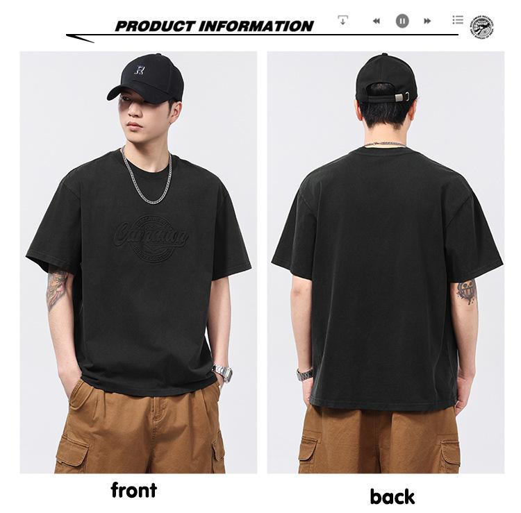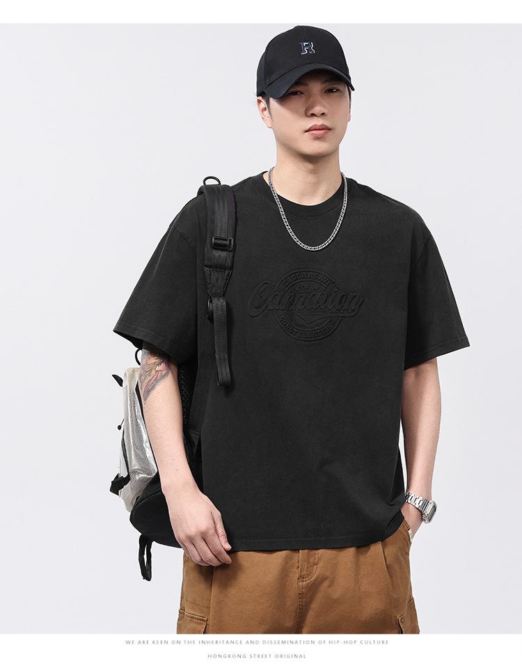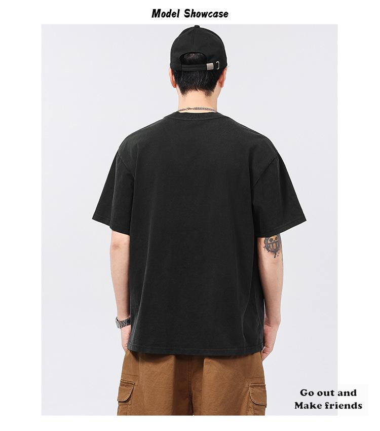 Compra Verano Nuevo Estilo Americano Retro Camiseta de Manga Corta para Hombre Suelta Talla Grande Negro Cuello Redondo Camiseta Manga Media Top para Hombre Marca de Moda al por mayor en Joom.pro
