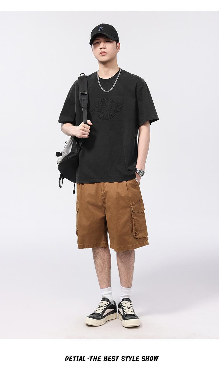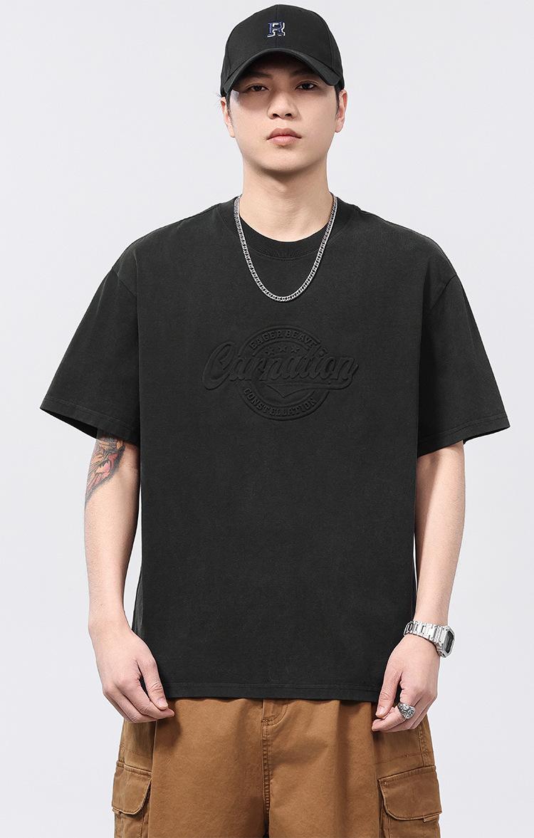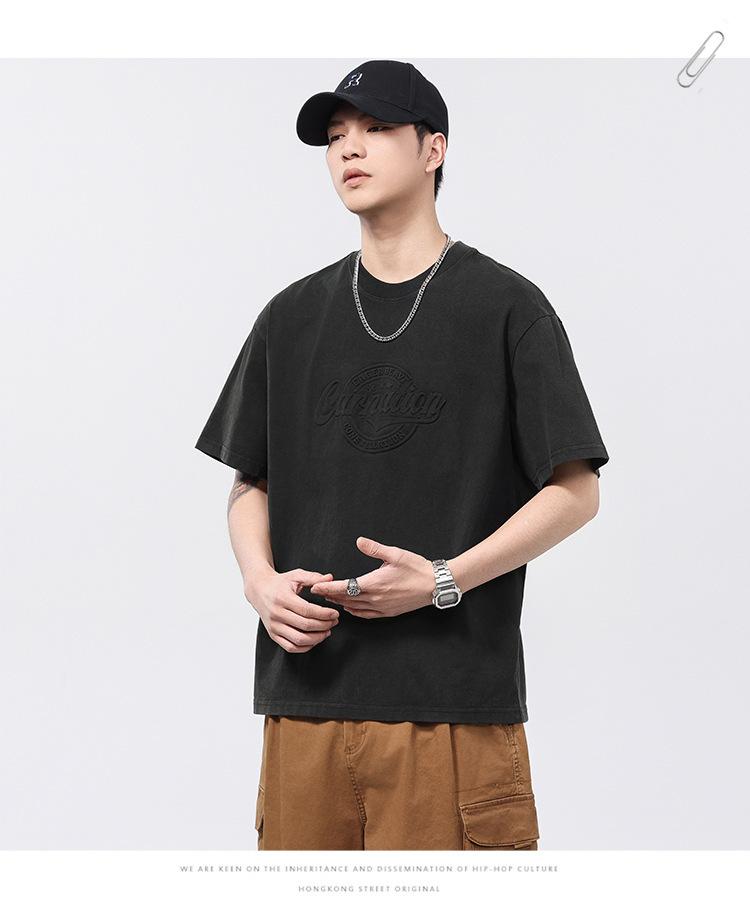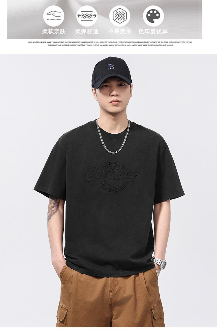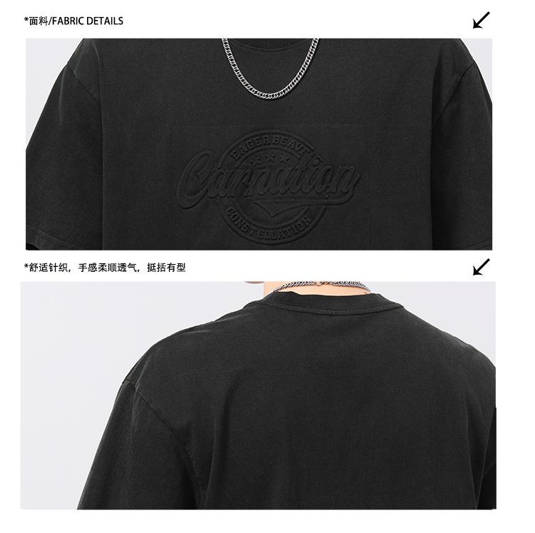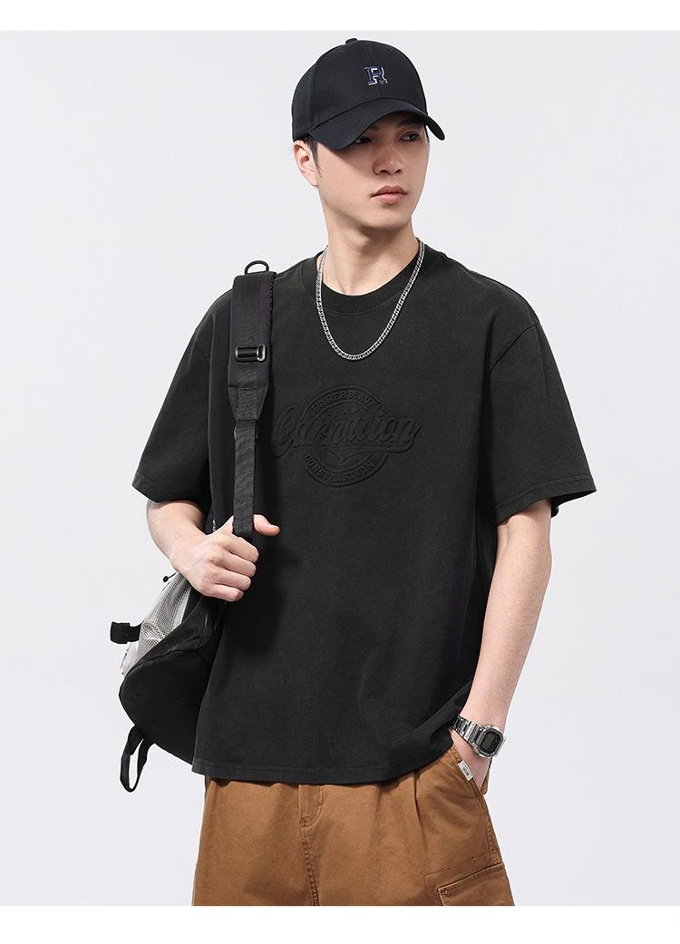 Compra Verano Nuevo Estilo Americano Retro Camiseta de Manga Corta para Hombre Suelta Talla Grande Negro Cuello Redondo Camiseta Manga Media Top para Hombre Marca de Moda al por mayor en Joom.pro