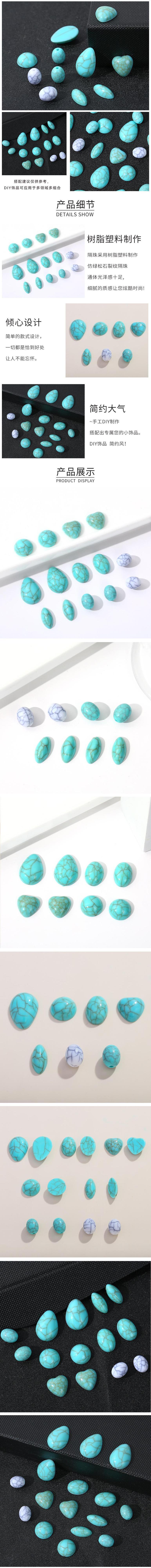 Fondo Plano Brillante Resina Imitación Turquesa Craquelado Cuentas Sueltas Anillo Pulsera Collar Aretes Incrustación DIY Accesorios de Joyería