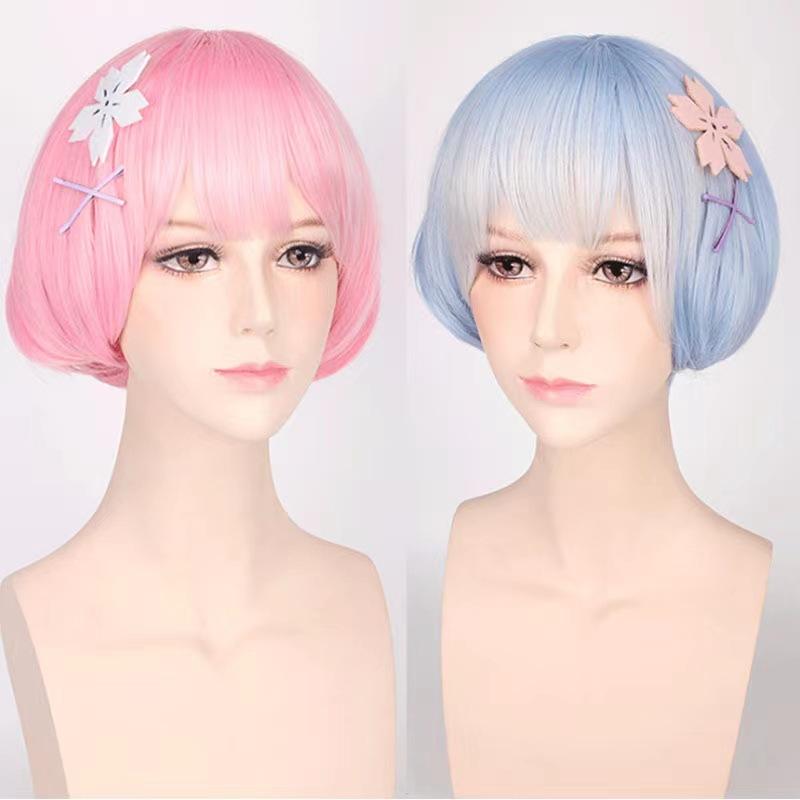Peluca de anime cosplay vida en otro mundo desde cero ramrem cos peluca en stock cabello de generación