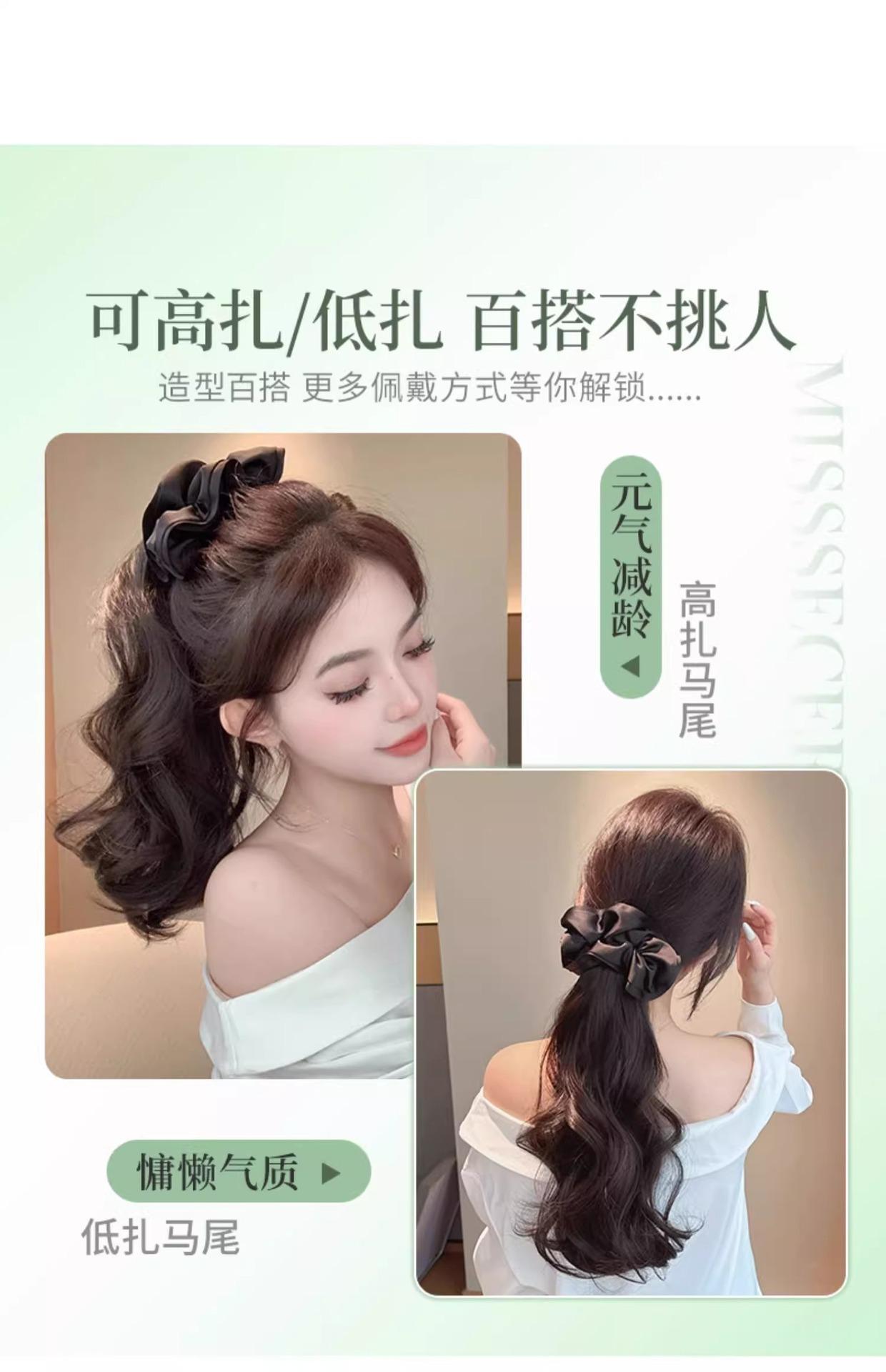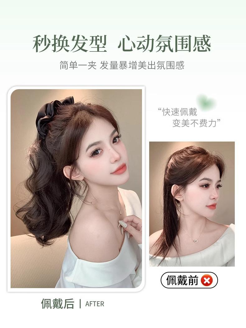 Peluca Cola de Caballo Horquilla para el Cabello Diadema Estilo Coreano Perezoso Natural Esponjoso Onda Grande Cabello Artificial Cola de Caballo Lateral Baja