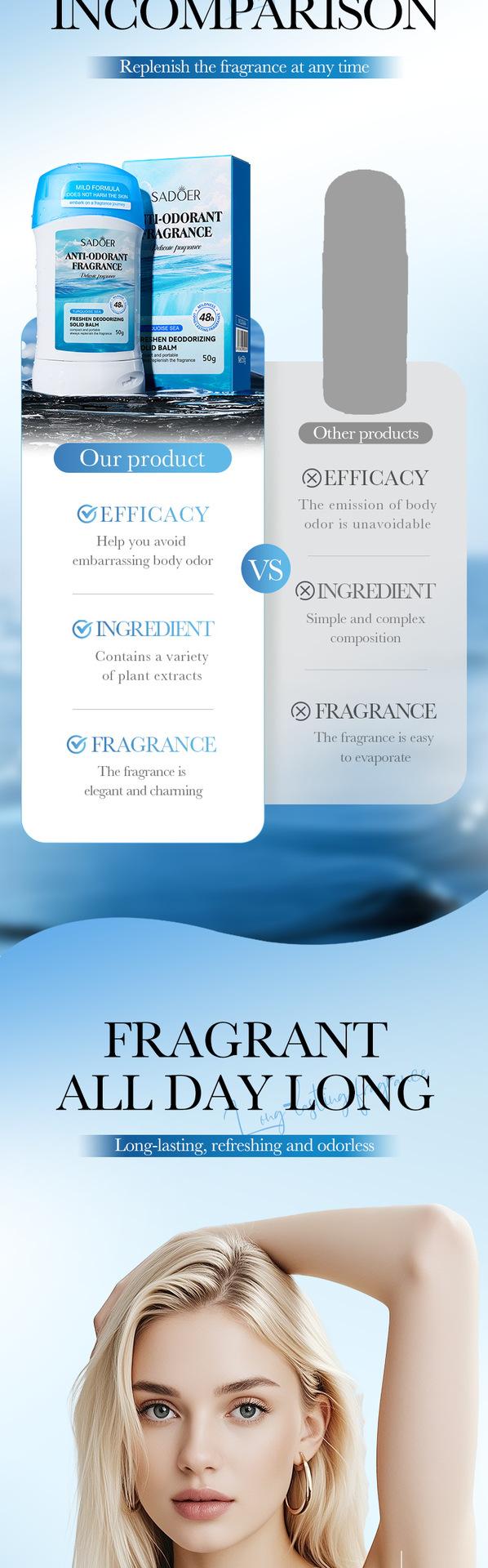 Todos los Perfumes Sólidos Frescos SADOER en Inglés Sudor de Verano Axilas Refrescante Perfume Sólido Comercio Exterior Transfronterizo Venta al por Mayor