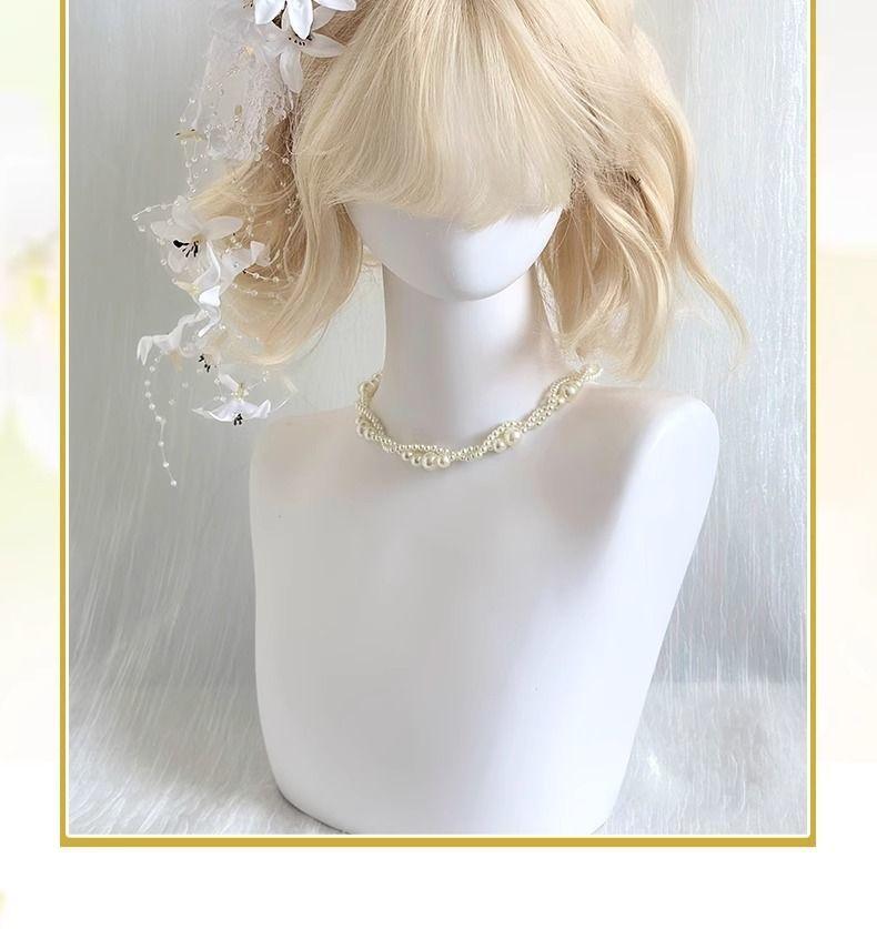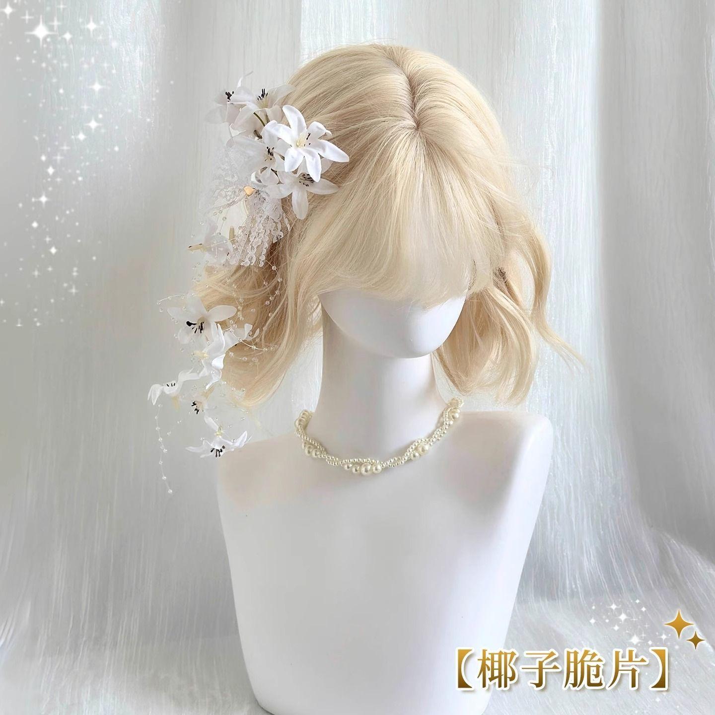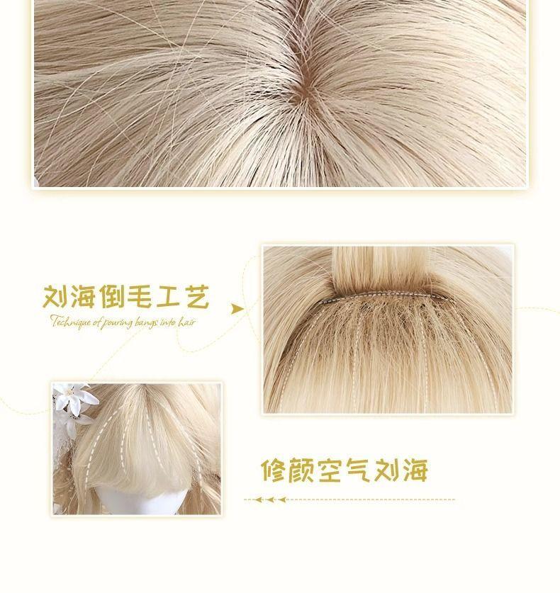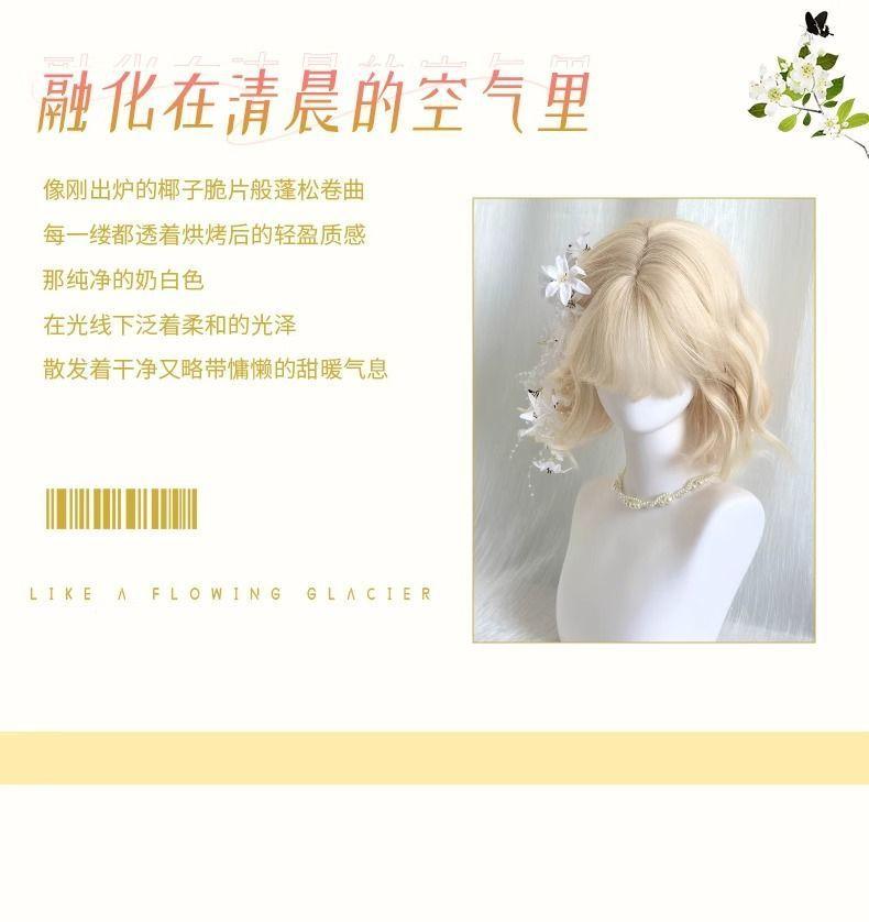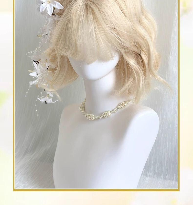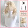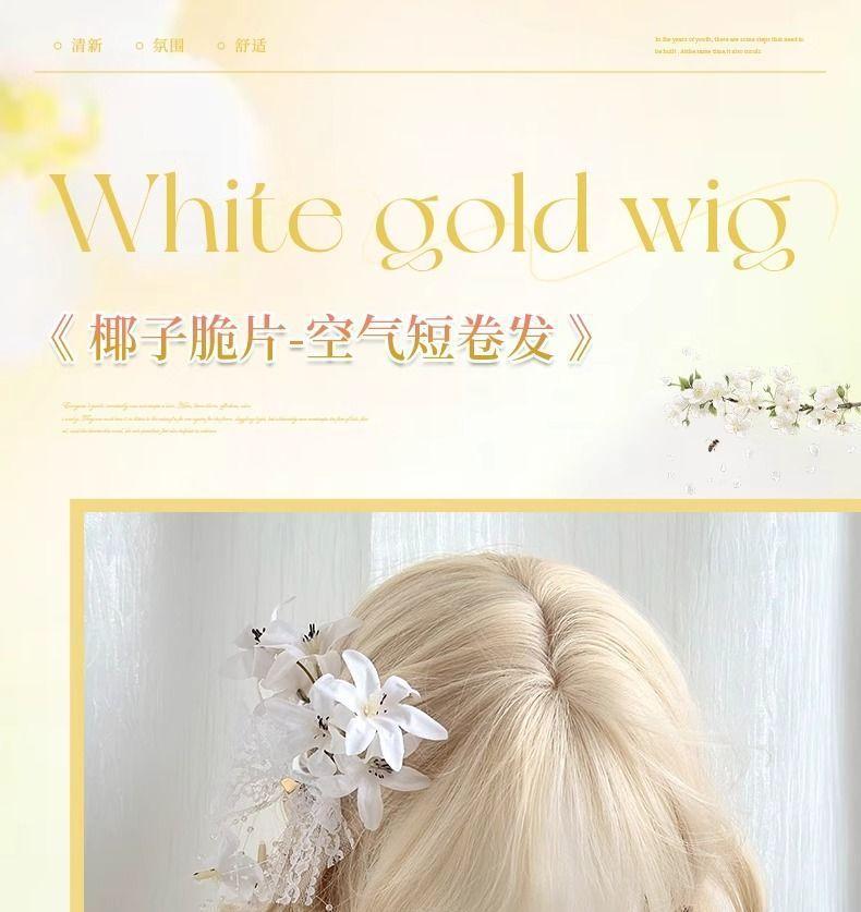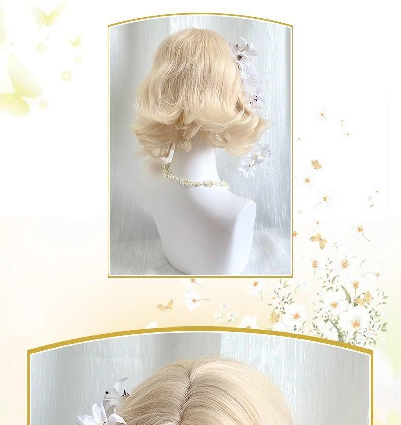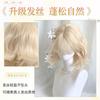 Peluca para Mujer Flequillo de Aire Cabello Corto Rizado Peluca Rubio Platino Moda Esponjosa Cabello de Simulación Natural Estilo Gorra de Cabeza Completa