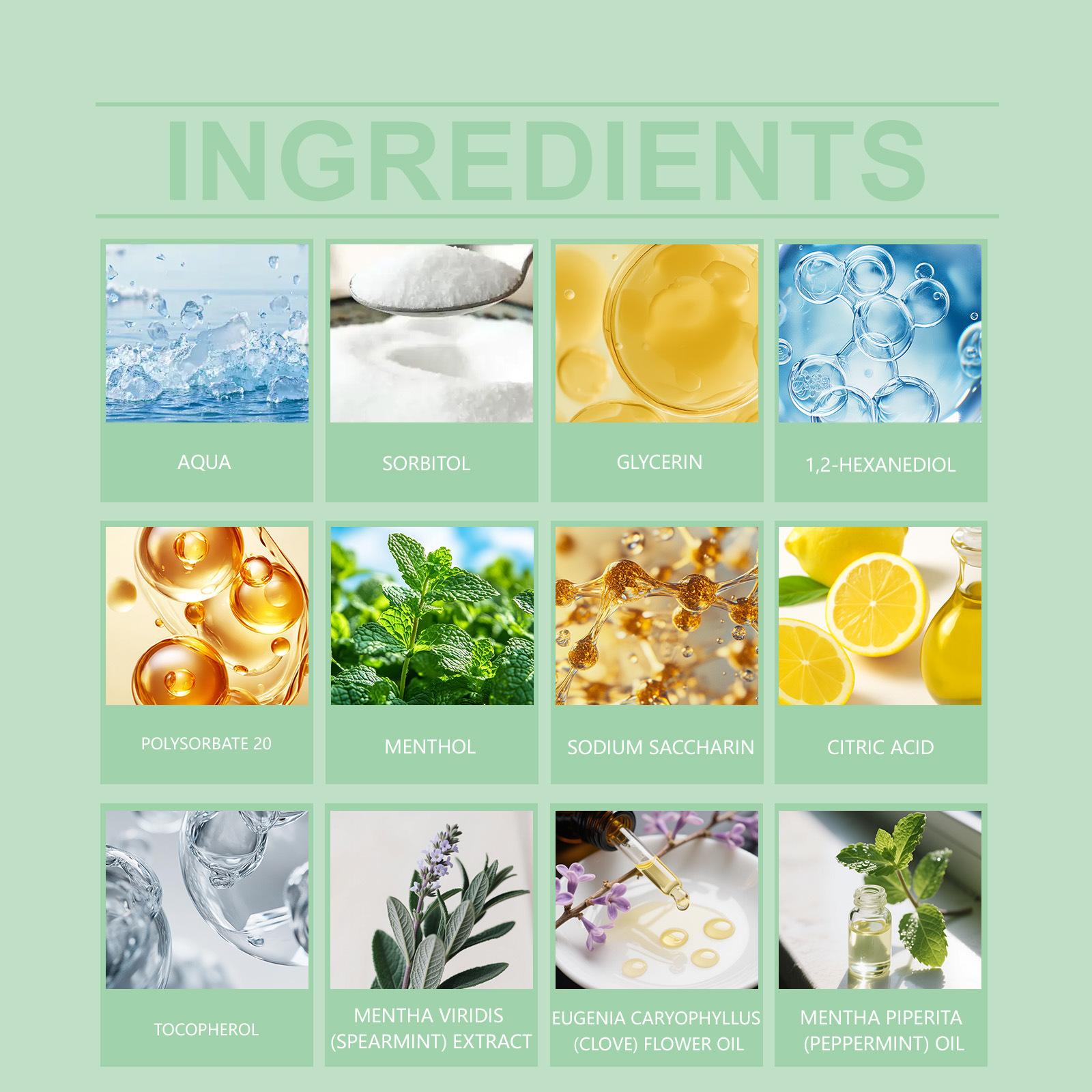 Compra Enjuague Bucal Hierbabuena Aliento Fresco Fragancia Natural Limpieza Suave Dientes Familia Desplazamiento Empaque Portátil al por mayor en Joom.pro