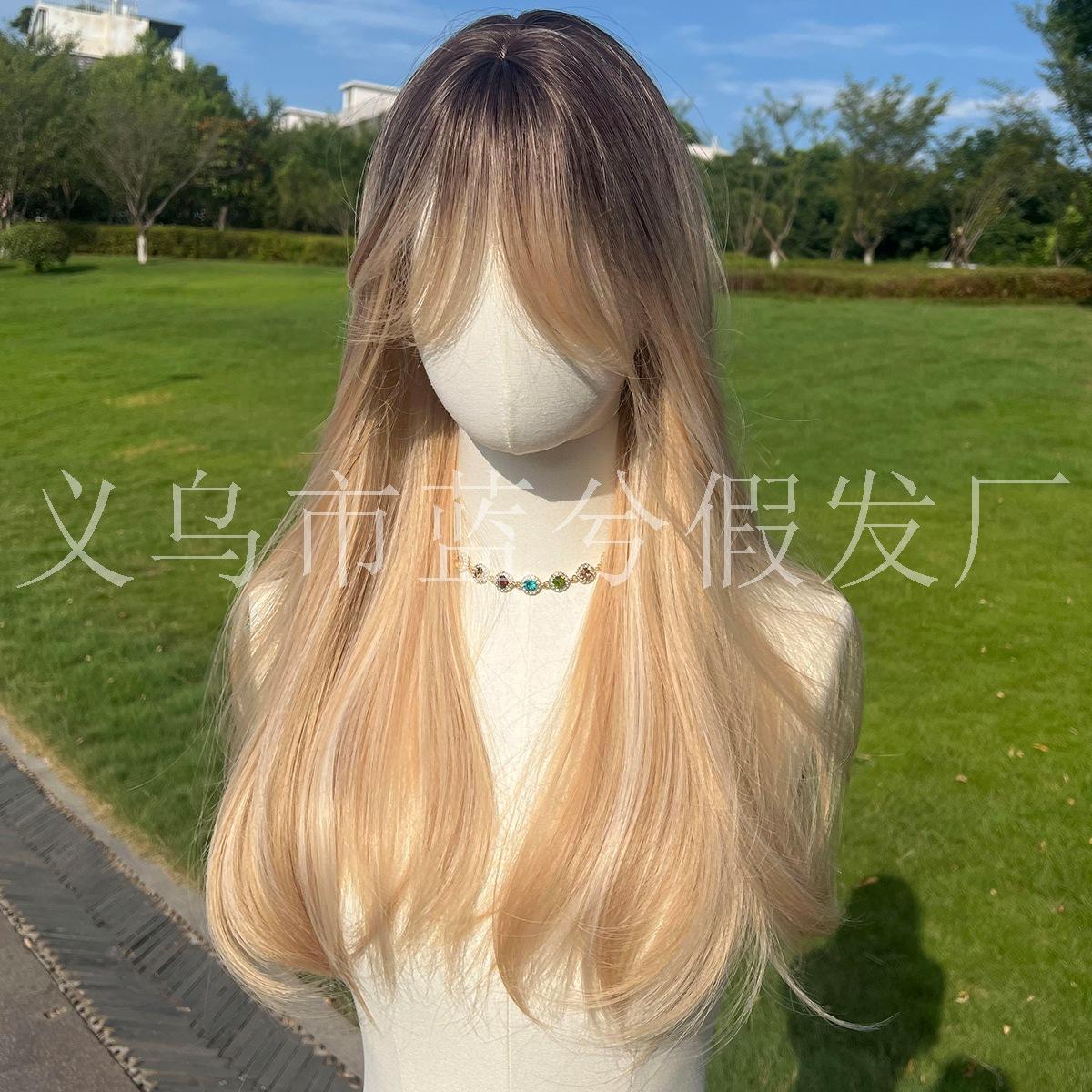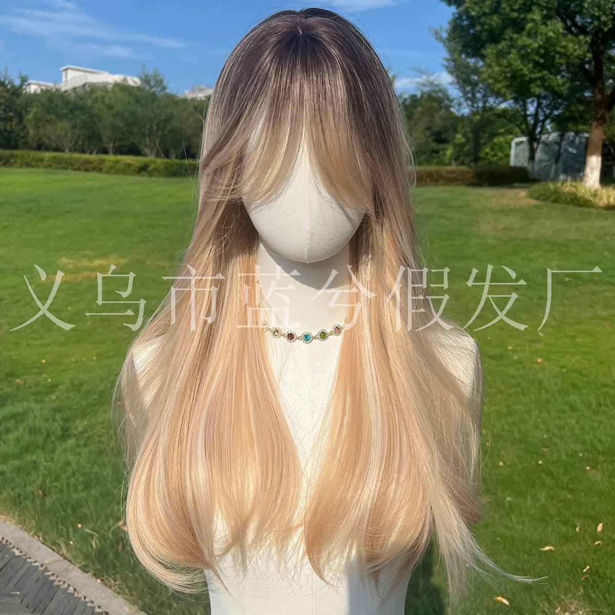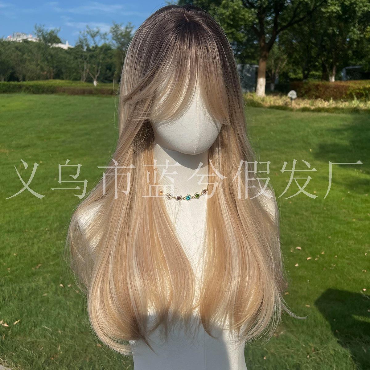 Comercio electrónico transfronterizo Peluca popular europea y americana Castaño Dorado Degradado con flequillo rizado TikTok Amazon peluca popular