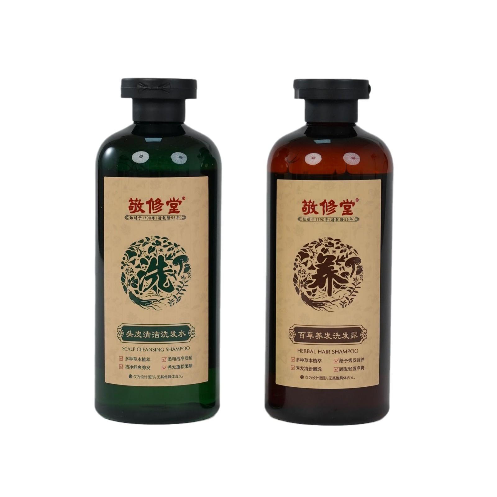 Al usar, primero use el champú limpiador de la botella verde para lavar el cuero cabelludo, luego use el champú nutritivo de la botella marrón para lavar de nuevo. Ambas botellas son champús.