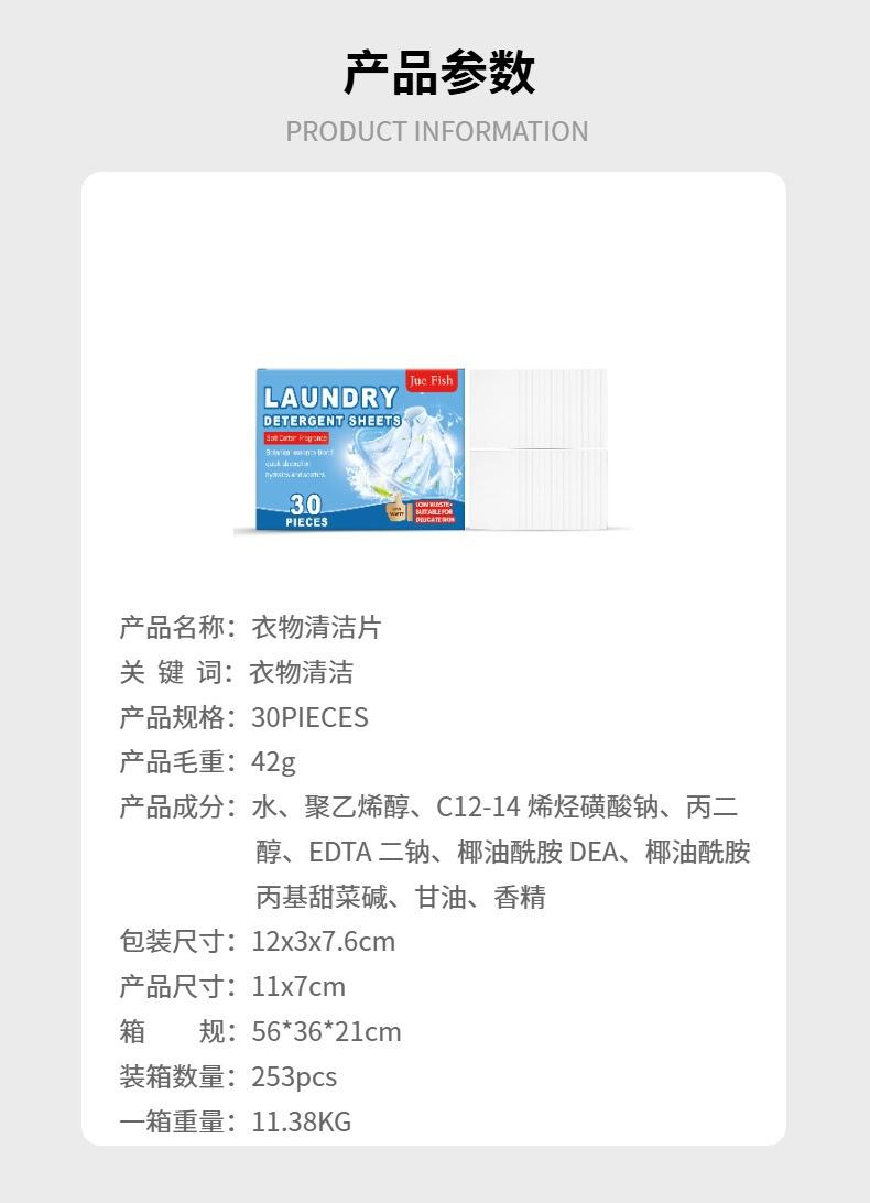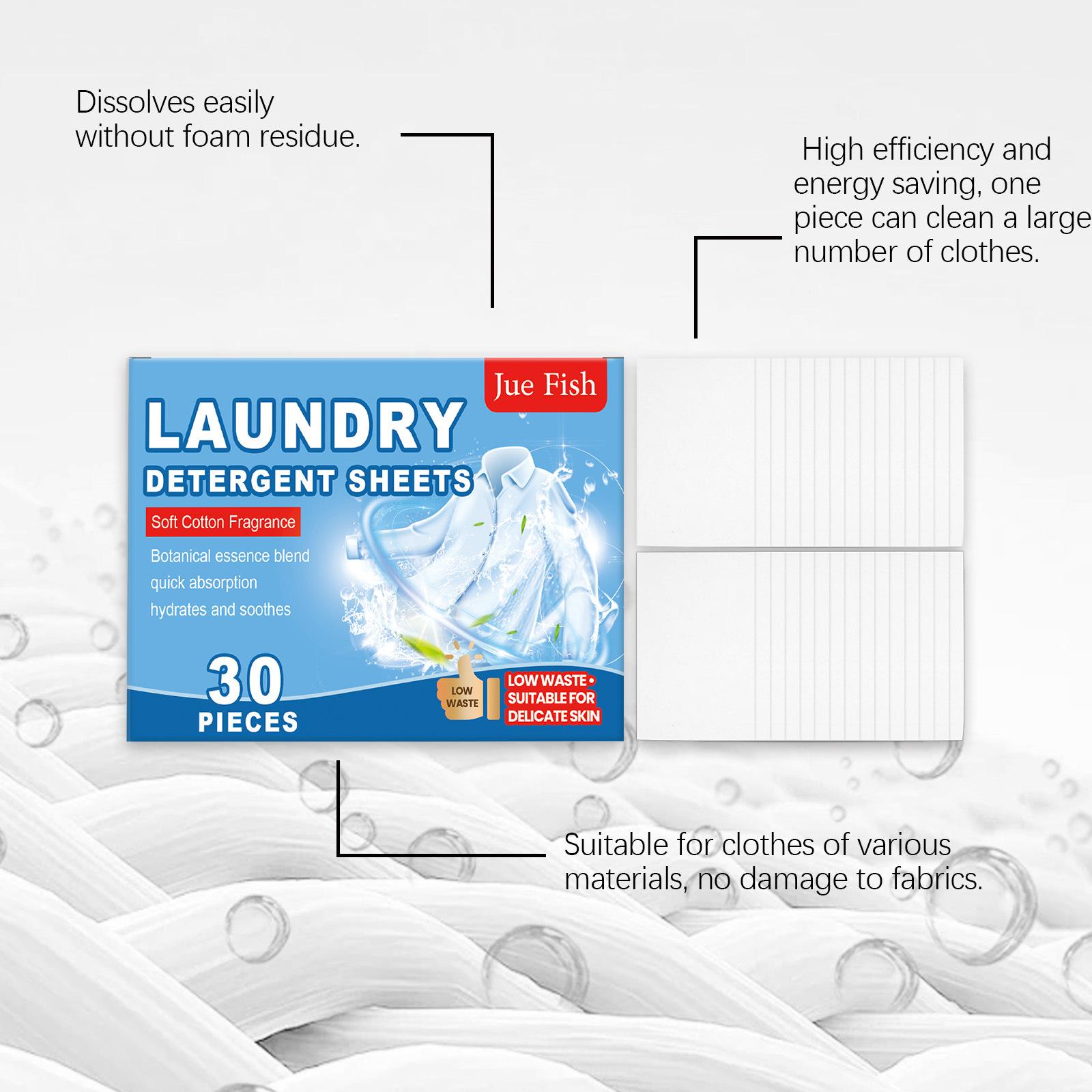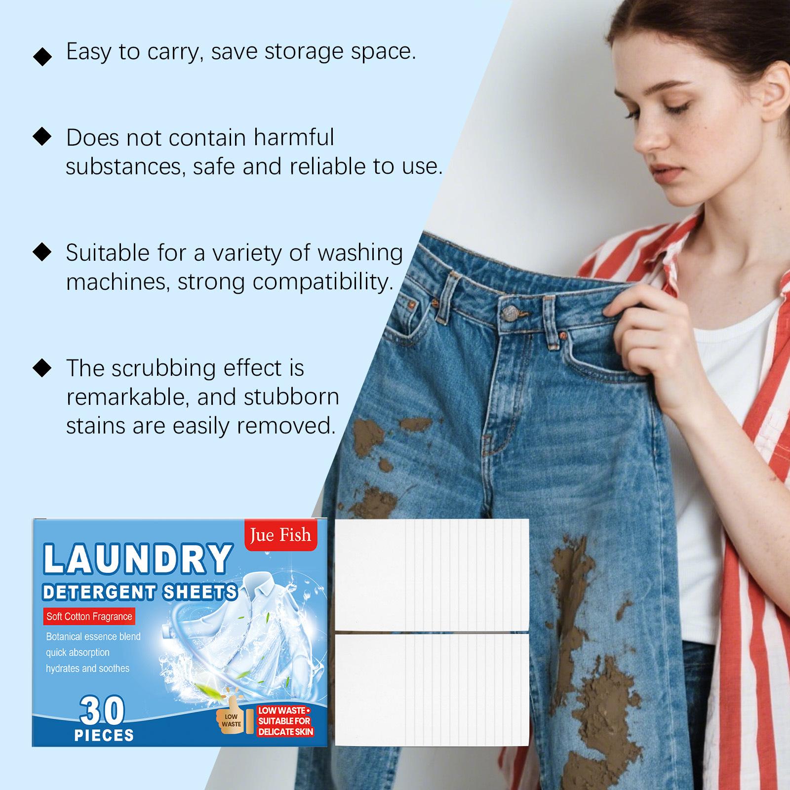 JUE FISH Hojas de Detergente para Lavandería Limpieza Suave Manchas de Aceite Manchas Suavizante Fragante Conveniente Cuidado para la Ropa Limpio