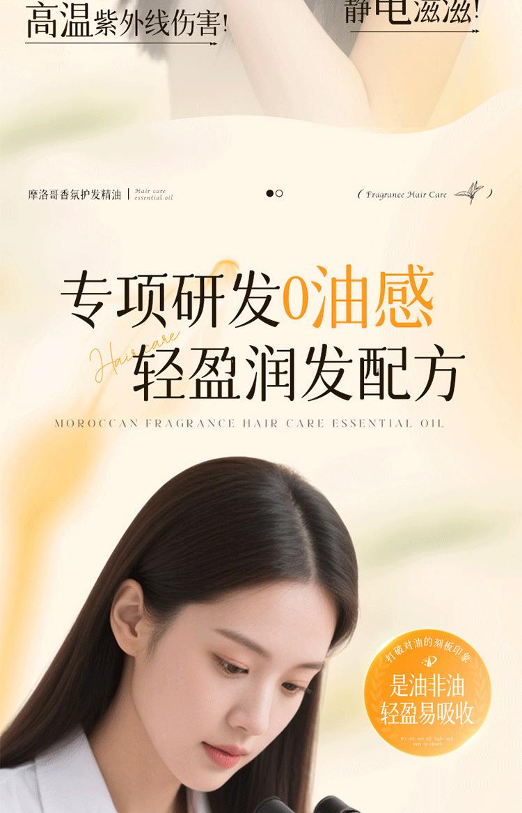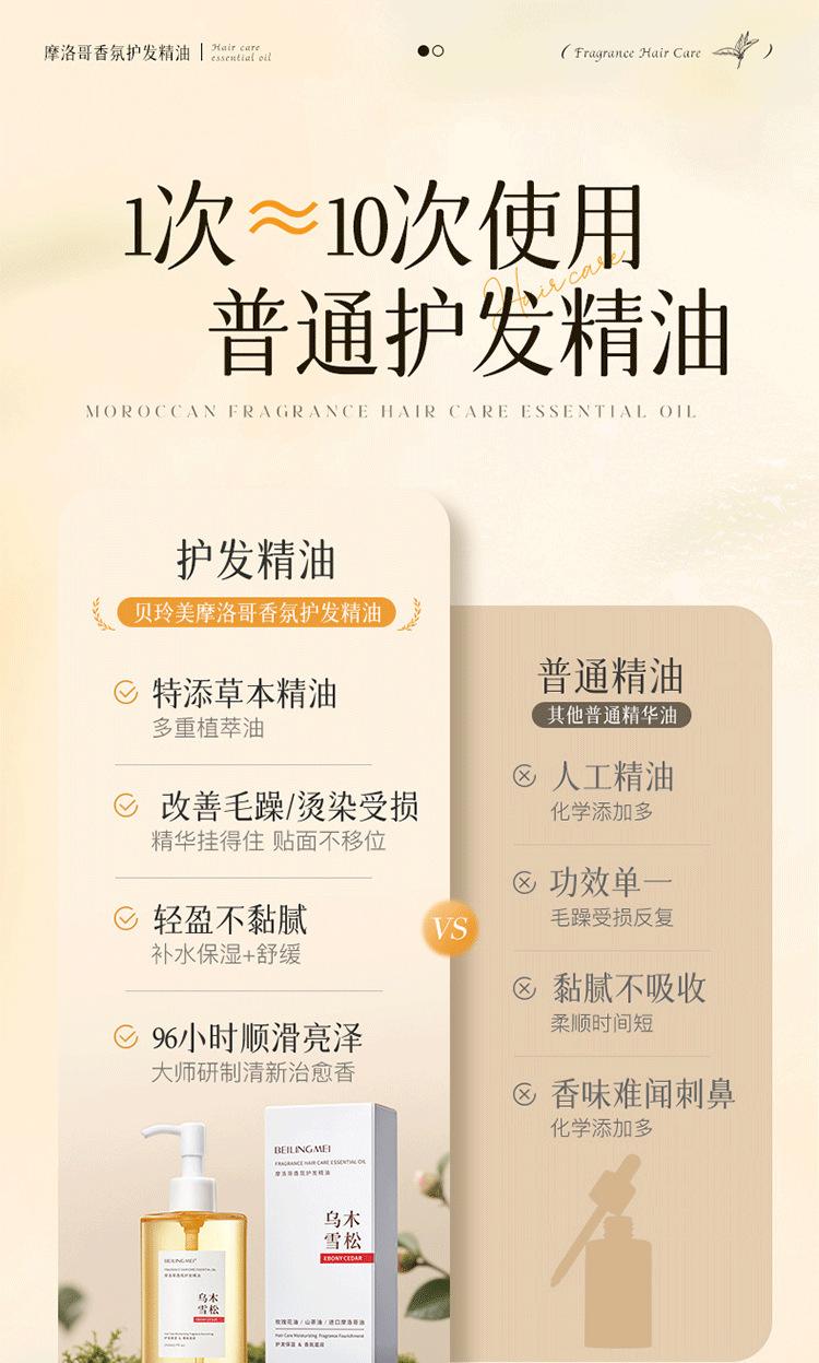Aceite para el Cabello para Mujeres Anti-Sequedad Frizz Suavidad Fragancia Duradera Mejora y Repara Cabello Rizado Permamentado y Teñido Puntas Abiertas Cabello Dañado