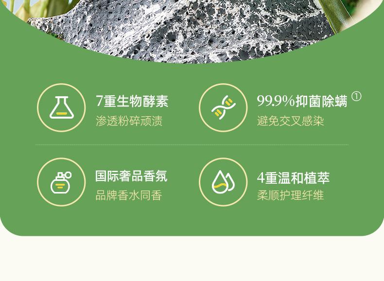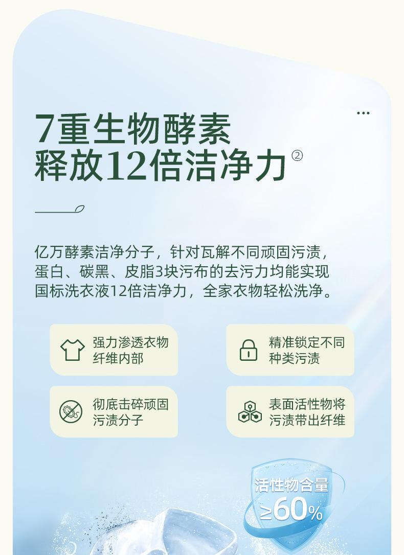 Deep cleaning, Color protection, Low foam and easy to bleach, Low viscosity and instant