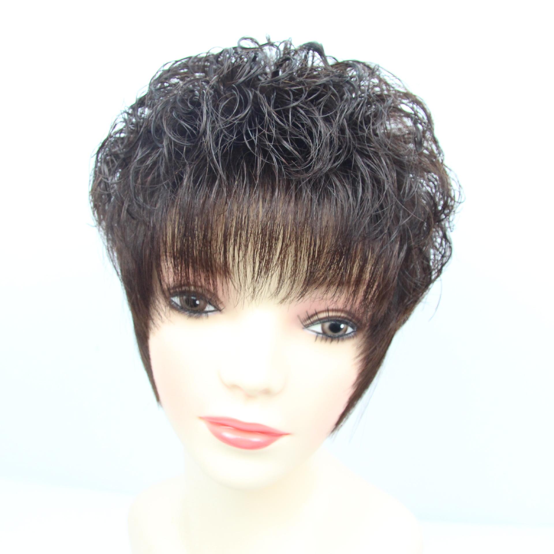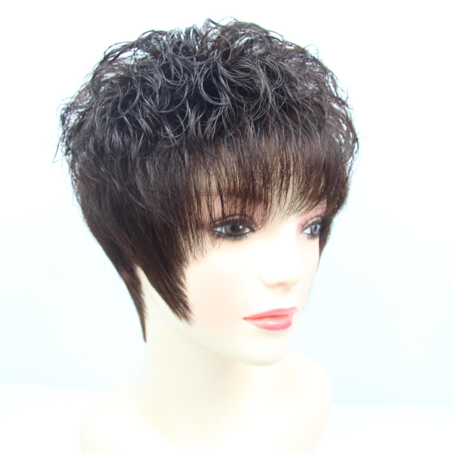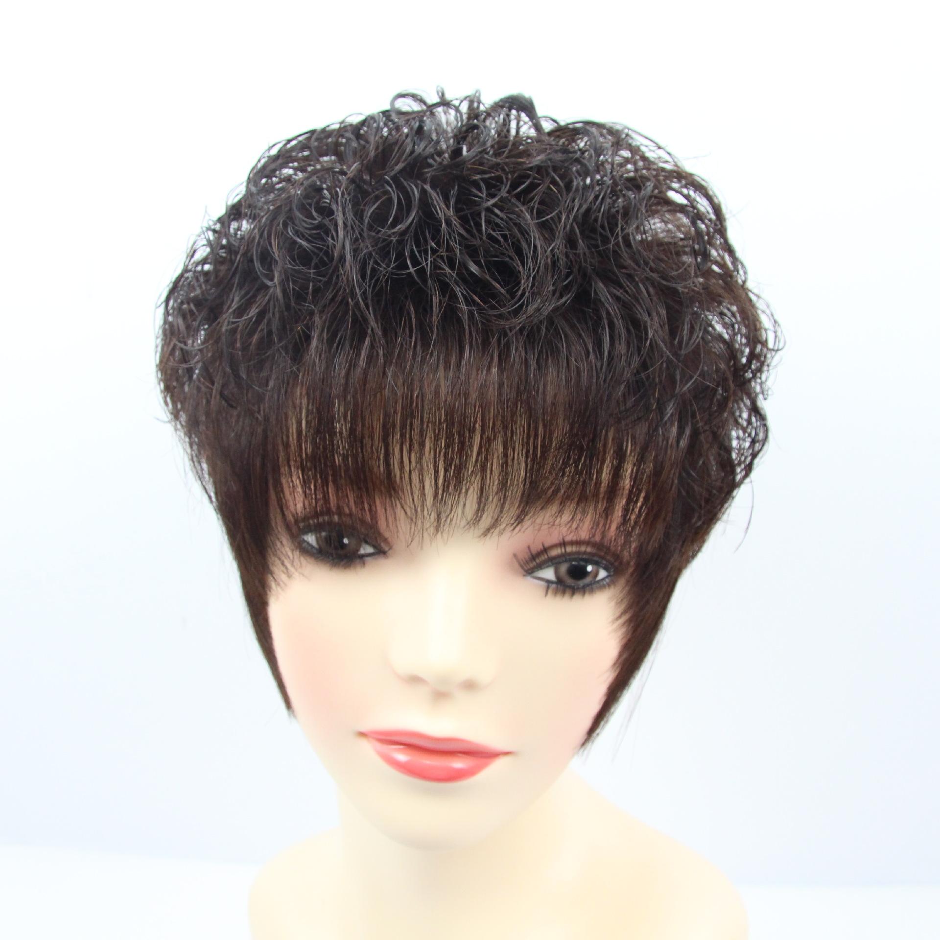 Compra Nuevo Estilo Cabello Corto Rizado Desgarrado a Mano Cobertura Completa Peluca de Persona Real Cobertura para la Cabeza Peluca de Cabello Real Refinada para Señora Cabello Corto de Madre al por mayor en Joom.pro