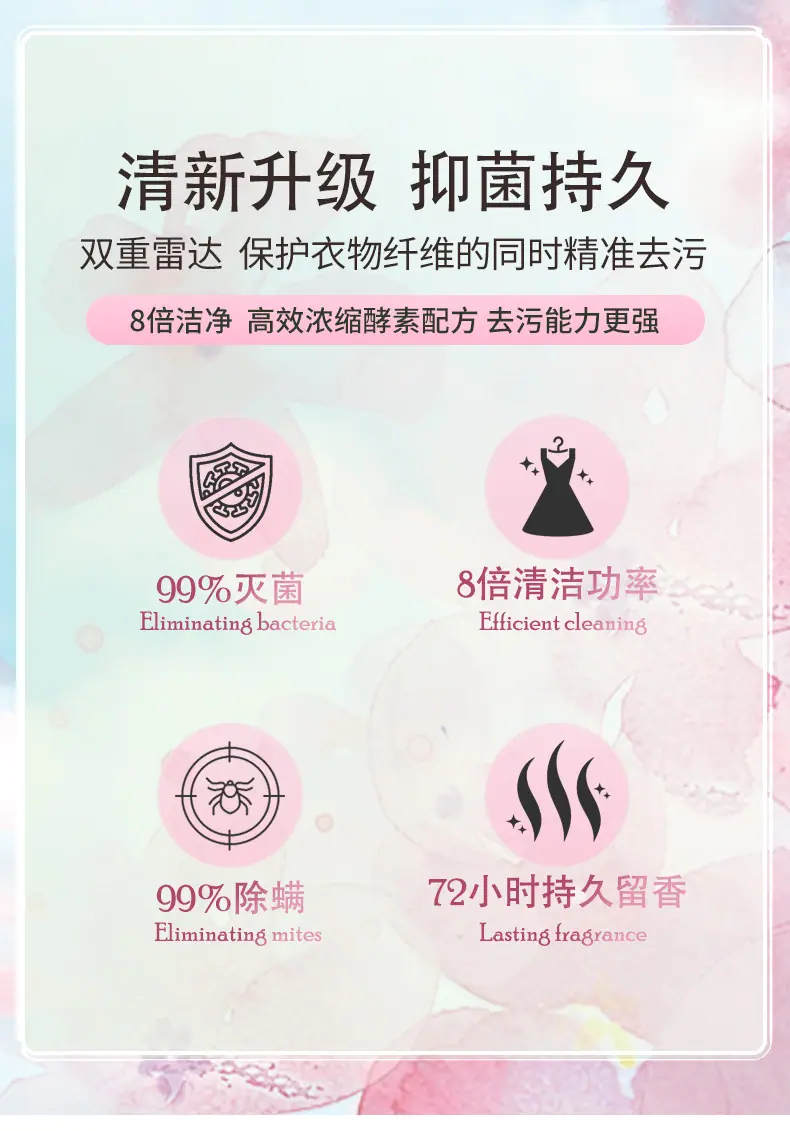 Washappy Perlas Concentradas Esterilizantes para Lavandería con Fragancia Duradera Plantas Concentradas Remoción de Manchas y Esterilización Limpieza de Ropa Hogar