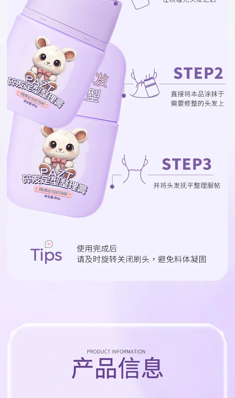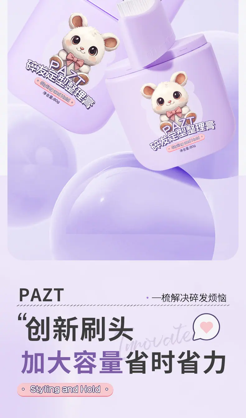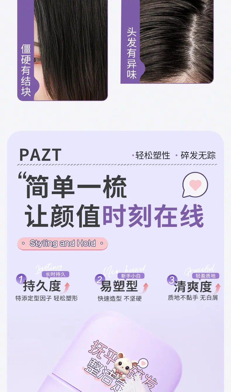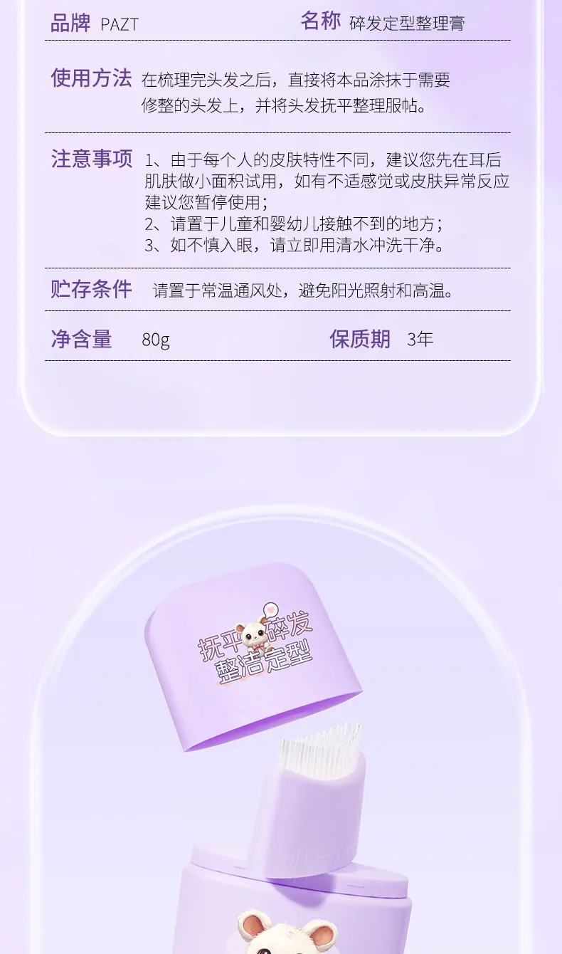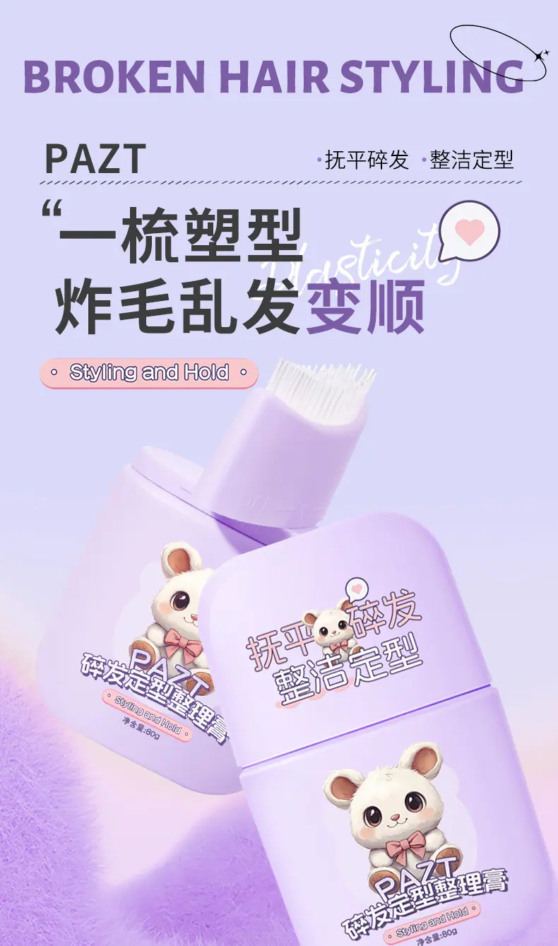 PAZT crema fijadora para cabello suelto artefacto sin enjuague anti-frizz para niños y adultos peinado flequillo gel para cabello bebé