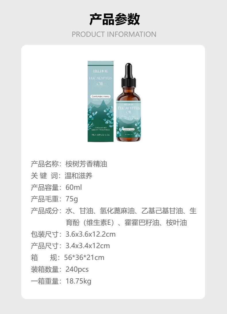 EELHOE Aceite Esencial Aromático de Eucalipto Natural Aromático Baño Diario Masaje Suave Nutritivo Cómodo Fragancia Duradera Aceite Esencial