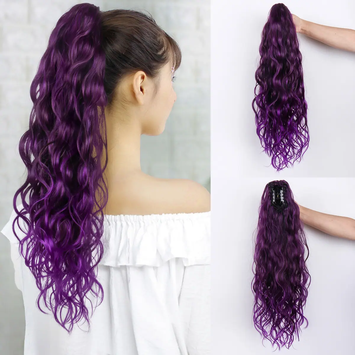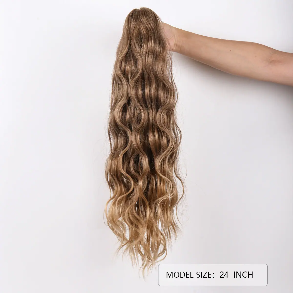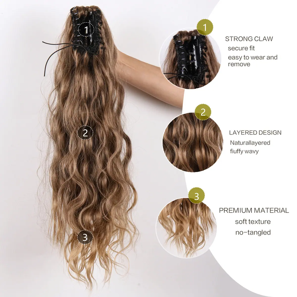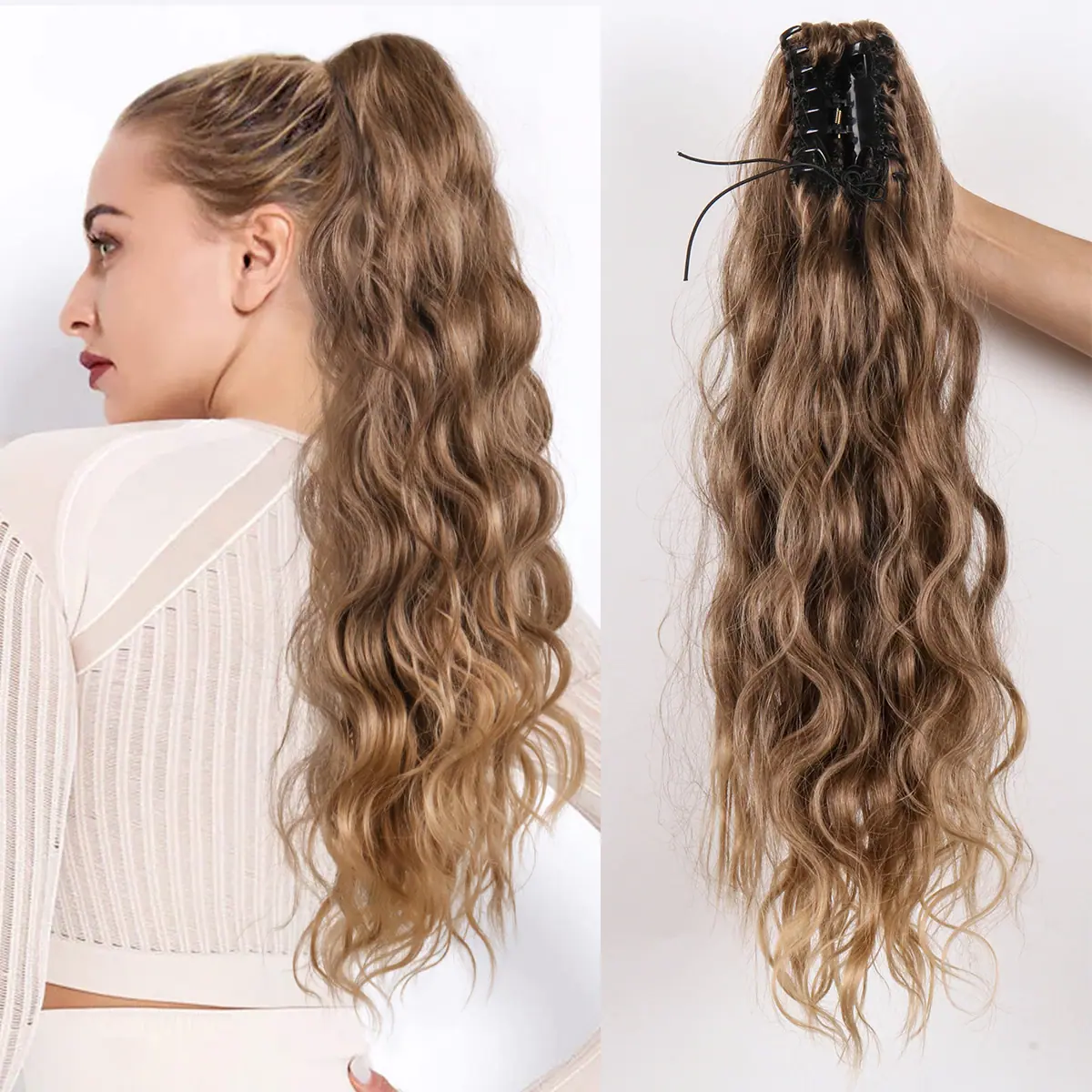 Fabricante Venta al por Mayor Peluca Cola de Caballo Perm de Maíz Multicolor Pinza de Garra Cola de Caballo Alta Esponjosa Fibra de Alta Temperatura Cola de Caballo de Cabello Largo y Rizado
