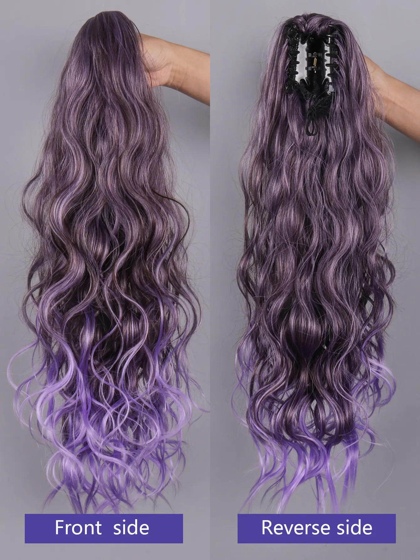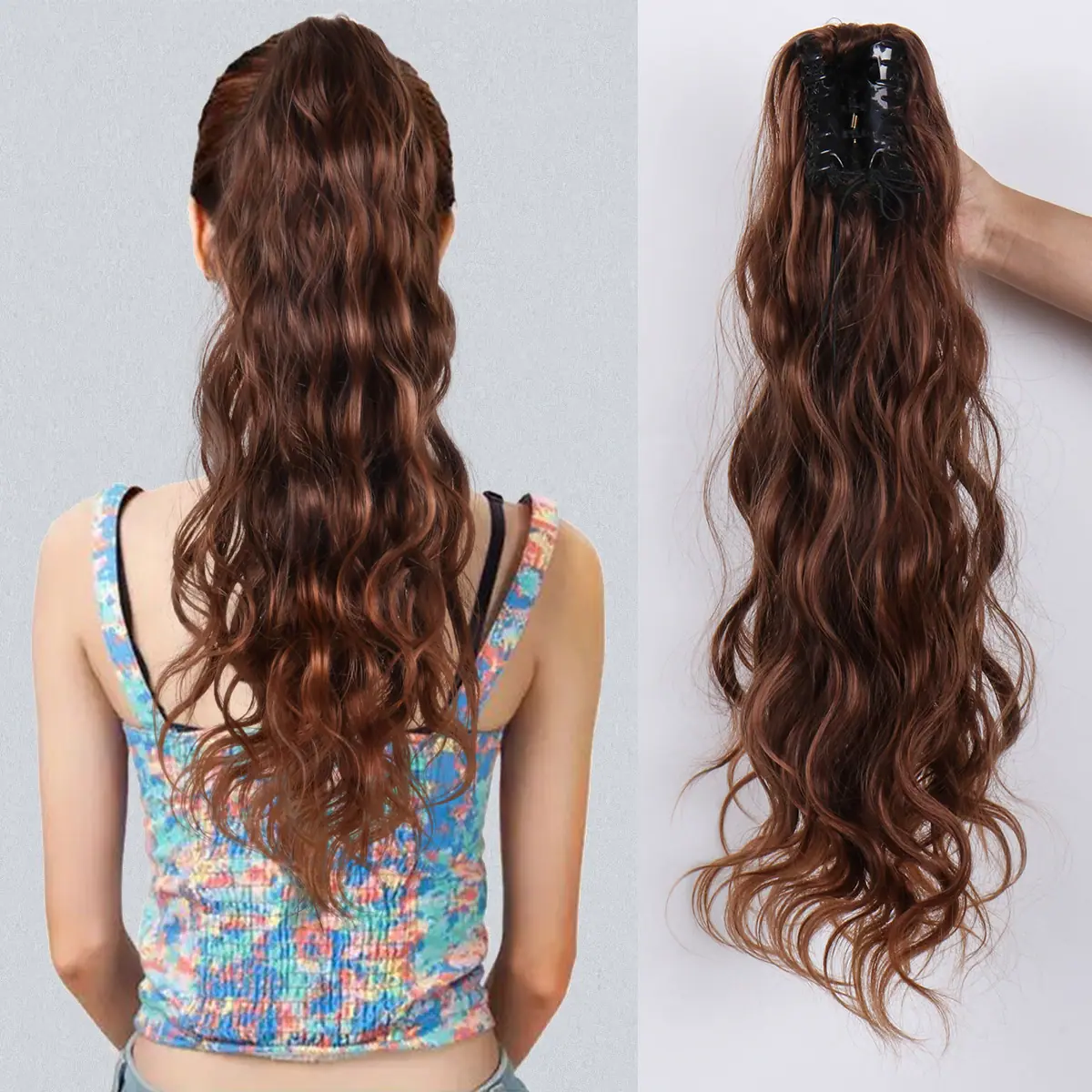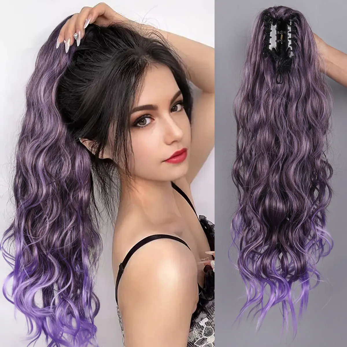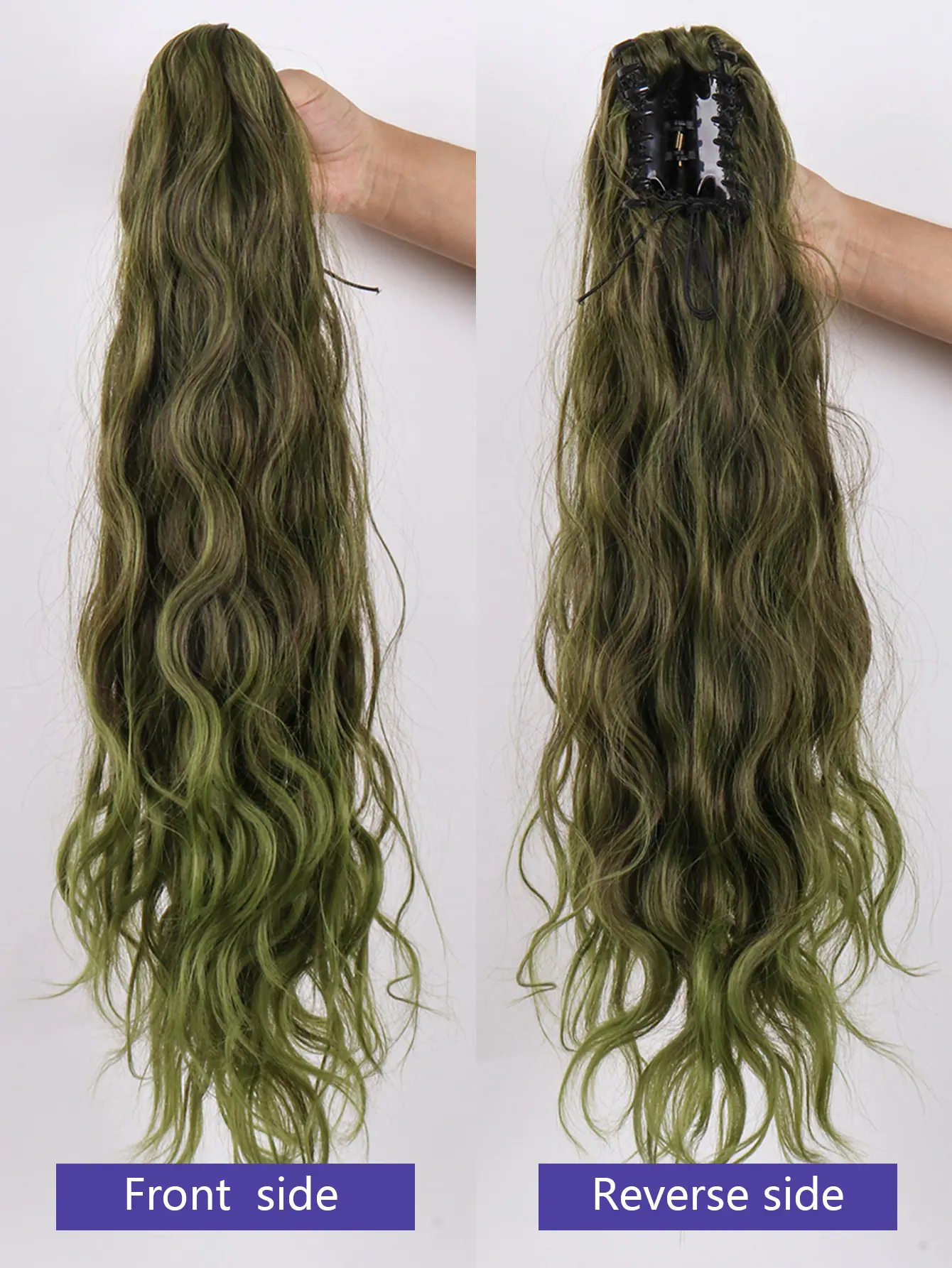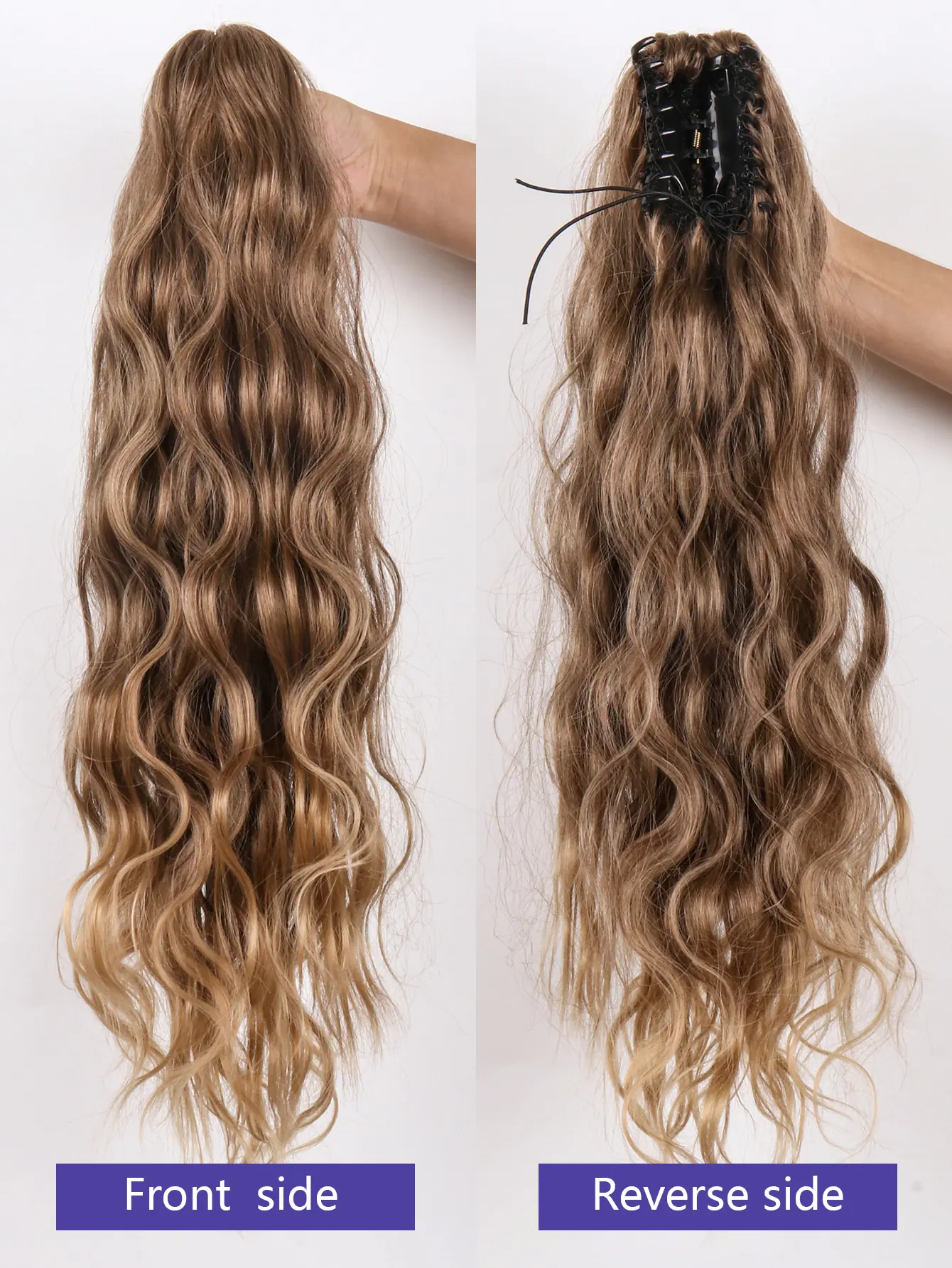 Fabricante Venta al por Mayor Peluca Cola de Caballo Perm de Maíz Multicolor Pinza de Garra Cola de Caballo Alta Esponjosa Fibra de Alta Temperatura Cola de Caballo de Cabello Largo y Rizado