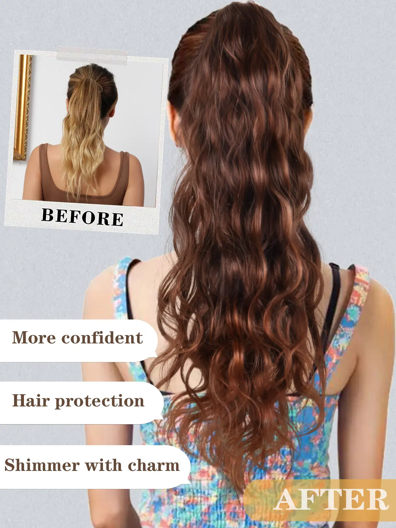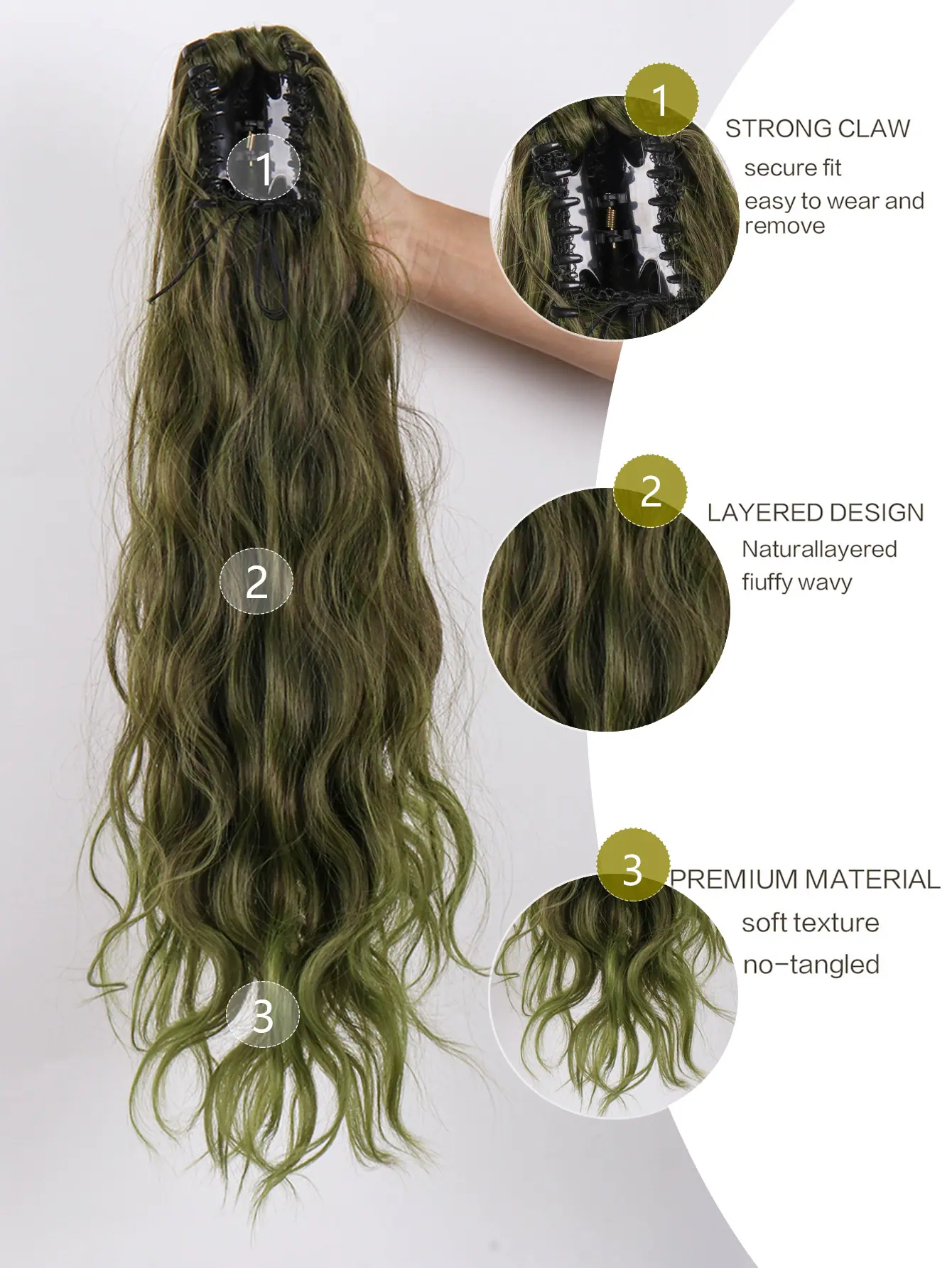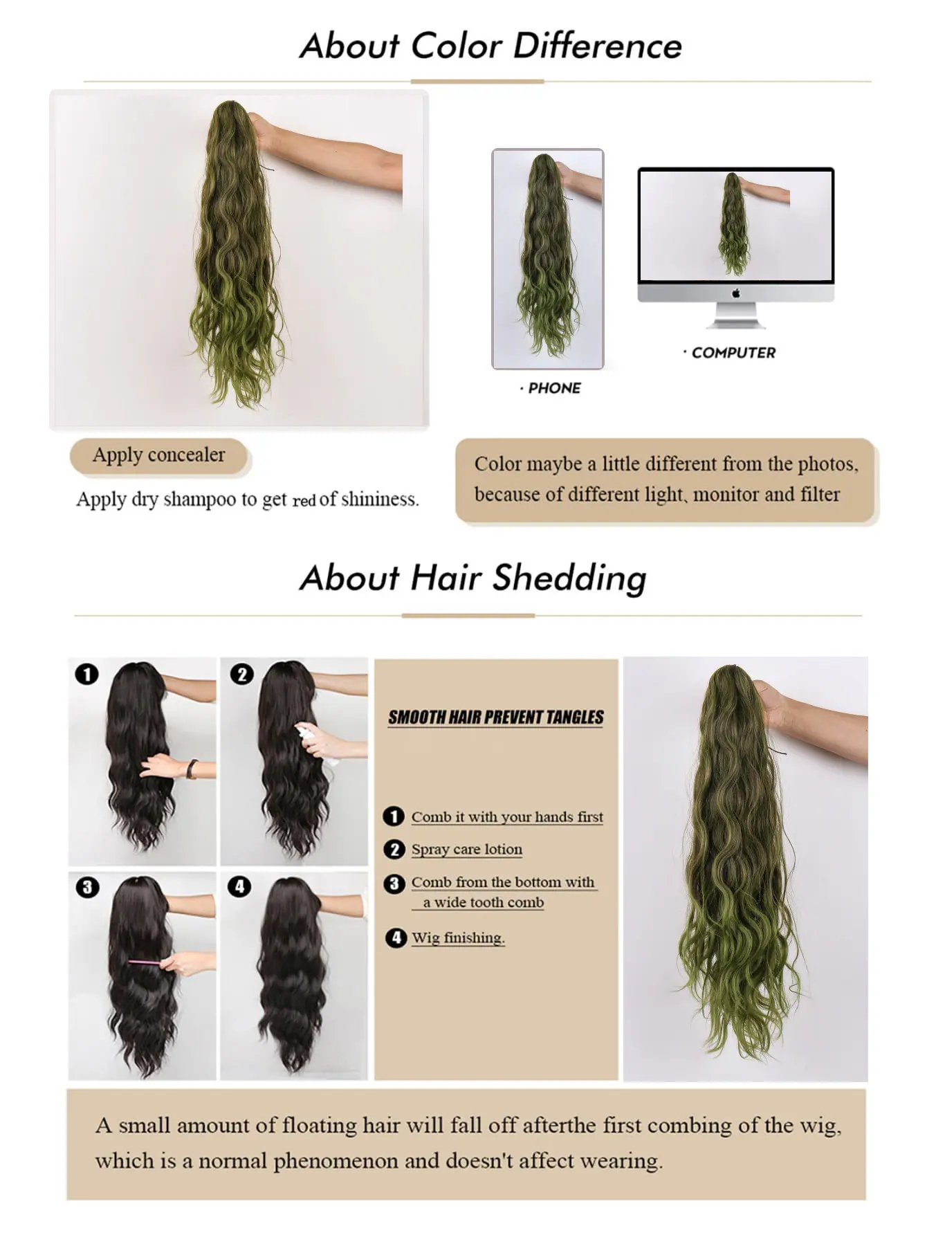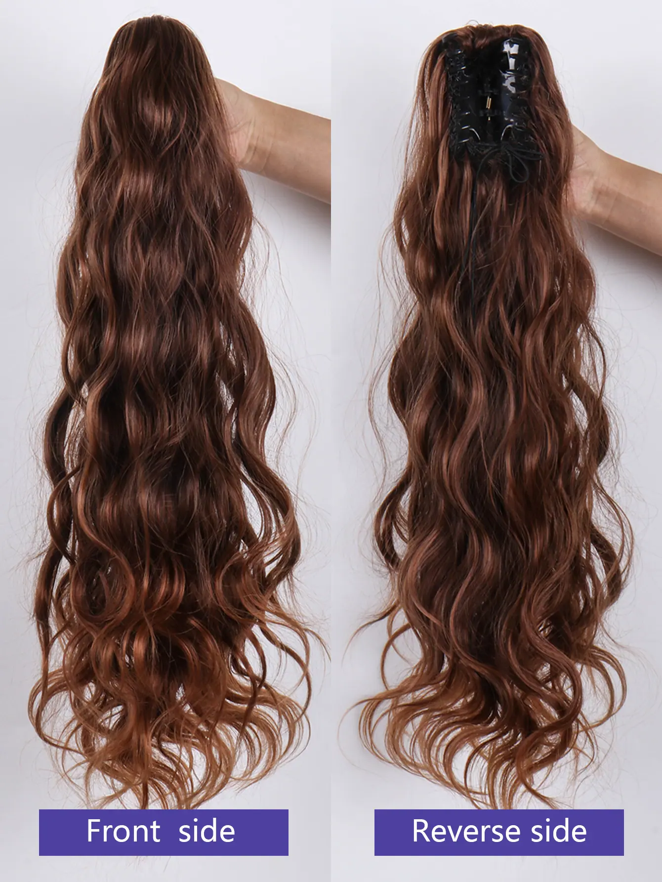 Fabricante Venta al por Mayor Peluca Cola de Caballo Perm de Maíz Multicolor Pinza de Garra Cola de Caballo Alta Esponjosa Fibra de Alta Temperatura Cola de Caballo de Cabello Largo y Rizado