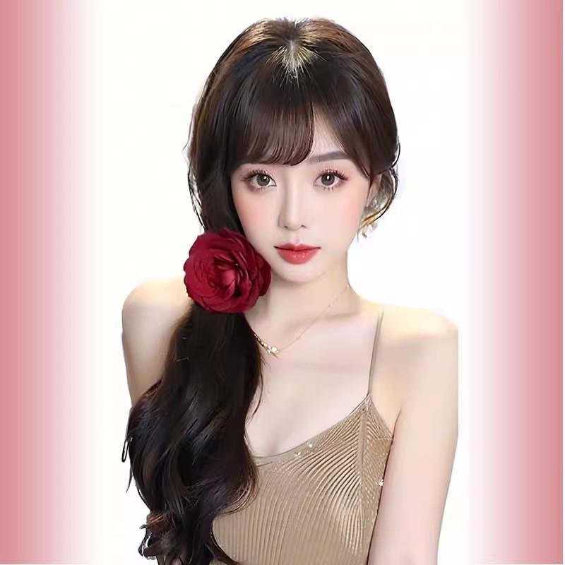 Sweet slightly curly ponytail clip style [dark brown] 45cm