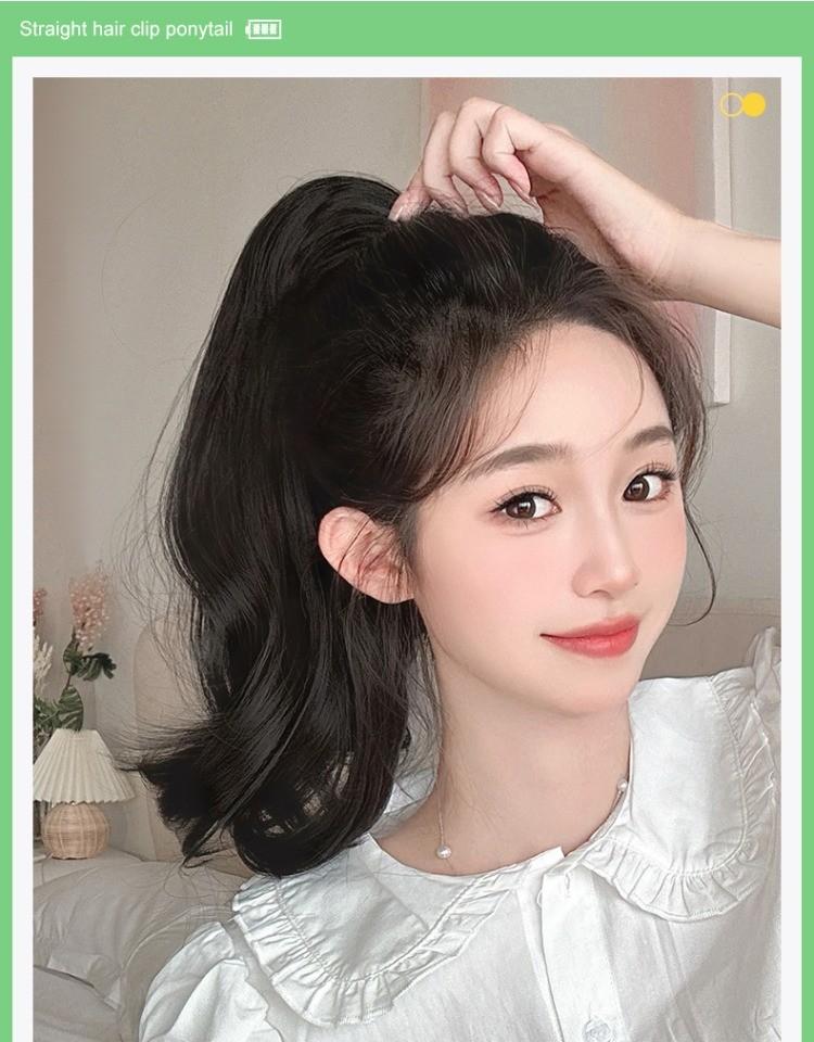 Sweet slightly curly ponytail clip style [brown black] 45cm, Sweet slightly curly ponytail clip style [natural...